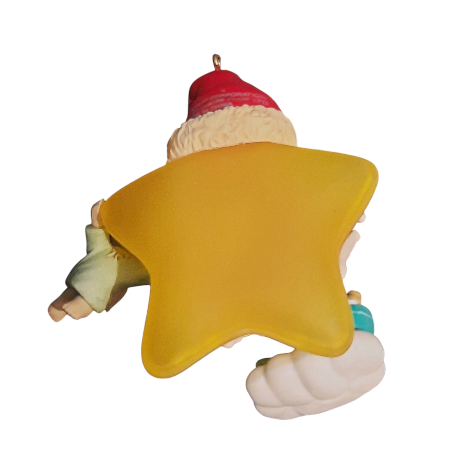 This delightful 1992 ornament, Put on a Happy Face, is the second and final release in Enesco’s Stardust Angel series (part of the Treasury of Christmas line). It features a whimsical angel character wearing a cheerful smile and festive attire—perfectly capturing nostalgic holiday joy. The ornament includes the original red Enesco box (with series branding) and hanging tag, making it collector-ready. There are no batteries, cords, or lights needed—simply hang it and enjoy its vintage charm.