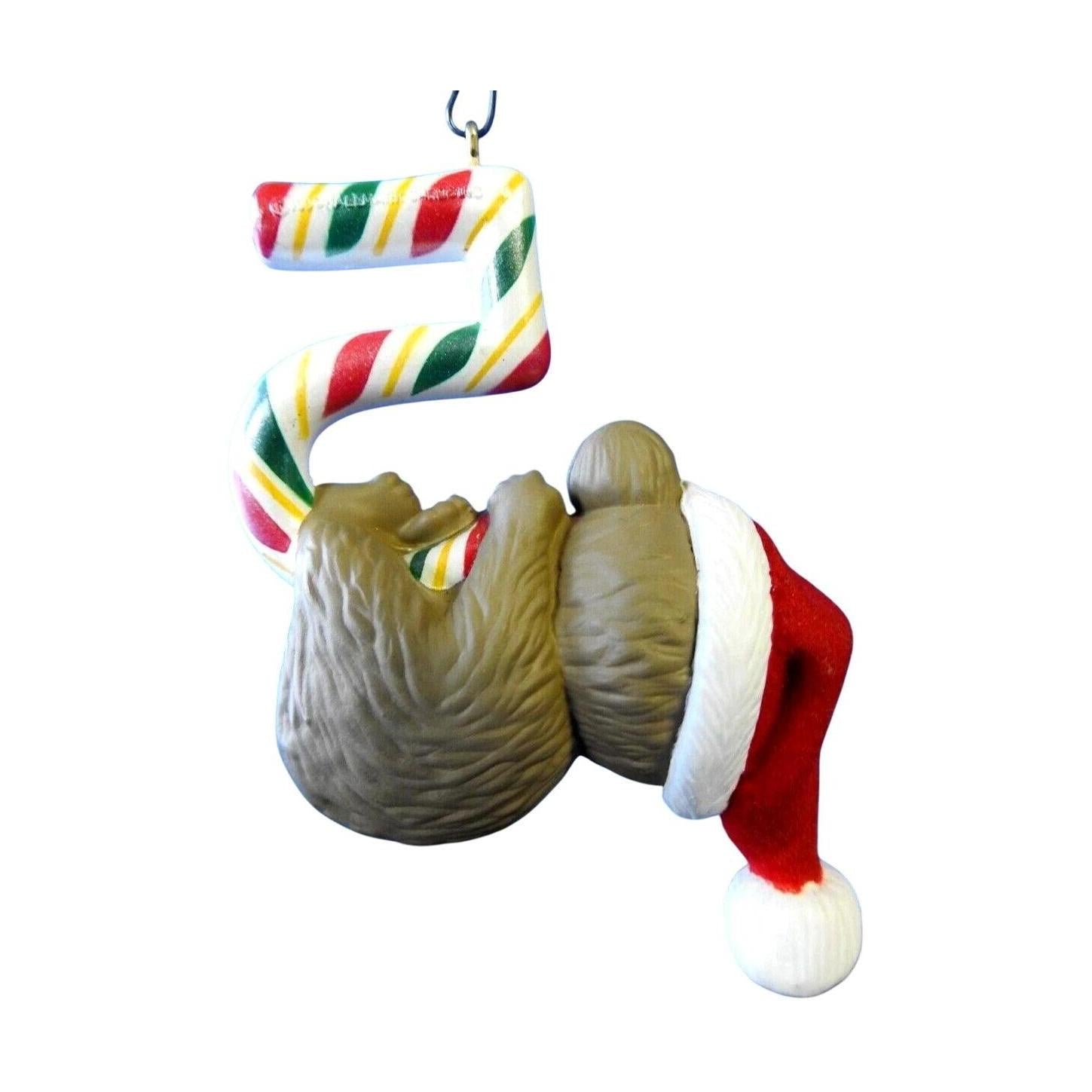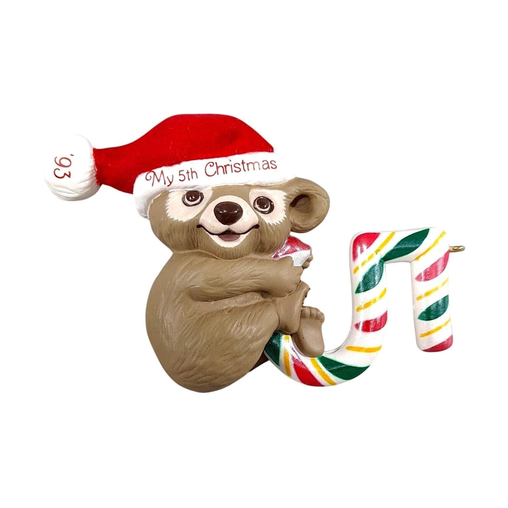 Celebrate that special milestone with the 1993 Child’s Fifth Christmas ornament, a charming bear-themed keepsake (item QX5222) from Hallmark’s Child’s Age series. The bear wears a festive Santa cap and holds a candy cane shaped like the number 5, labeled “My 5th Christmas,” and includes a striped stocking tag reading “’93.” Expertly sculpted by Dill Rhodus, this ornament stands about 3.6″ tall, and arrives mint in its original box with hanging loop and tag—no power or batteries needed. A nostalgic tradition starter for fifth birthdays or a sweet addition to any Child’s Age collection