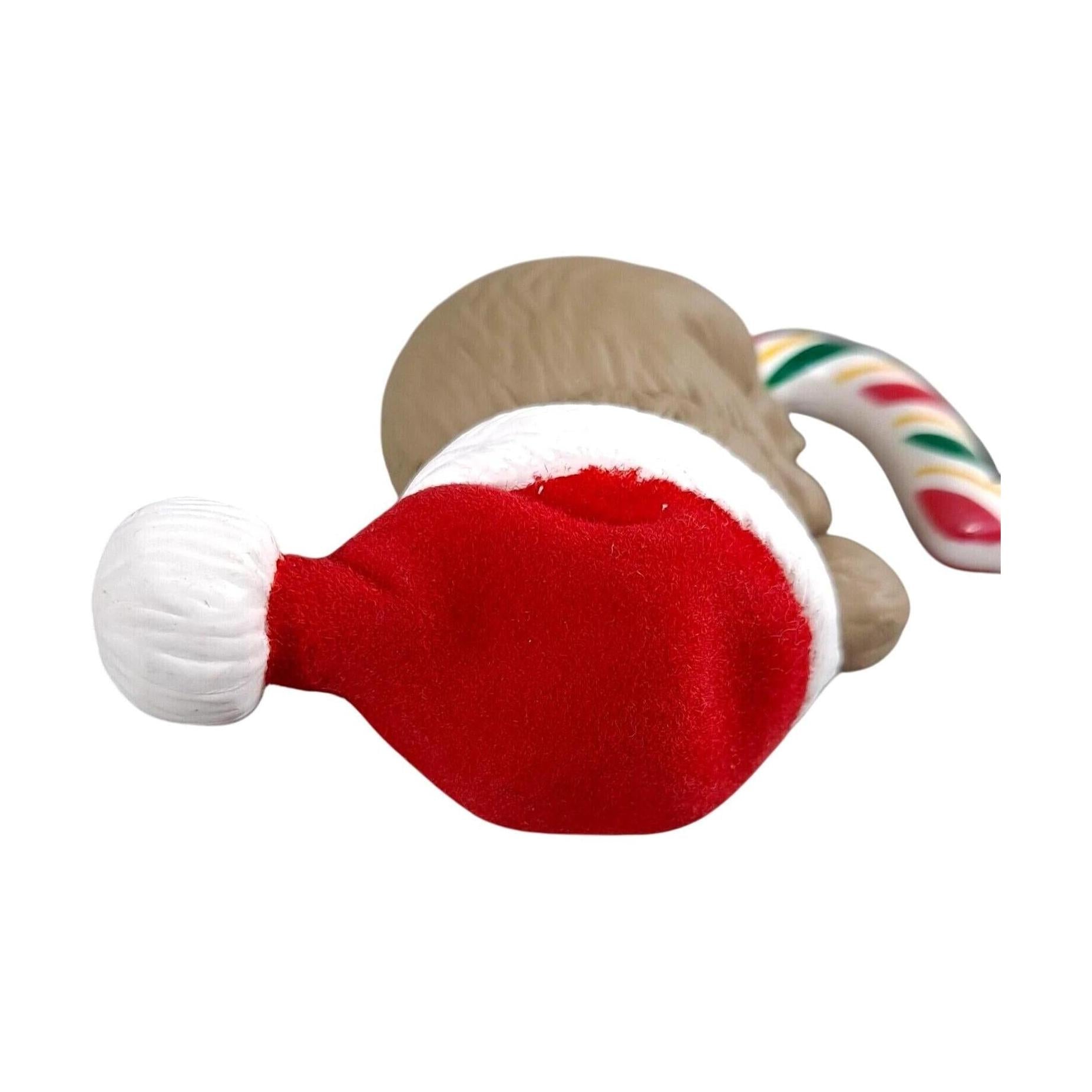 Materials: Painted resin/plastic teddy bear with candy-cane 5 accessory and Santa hat