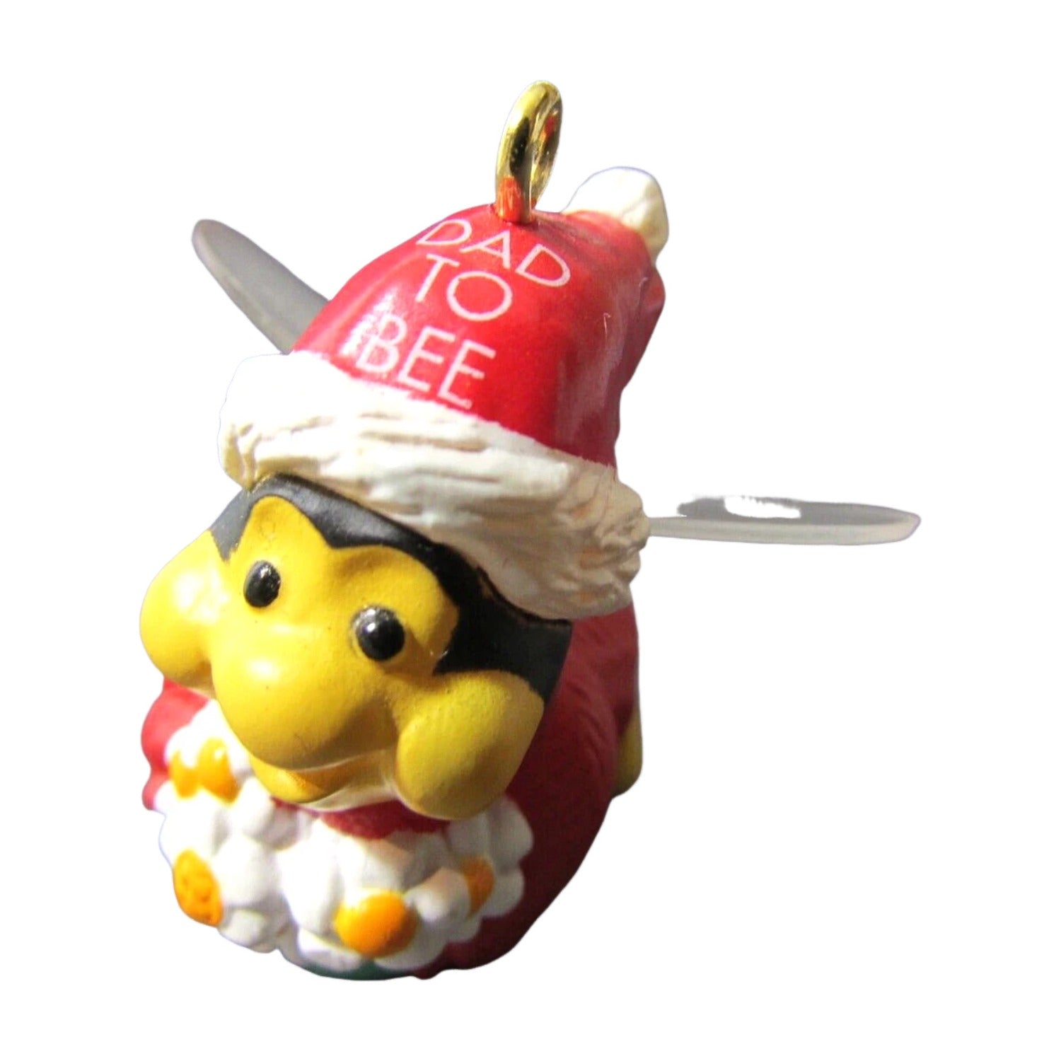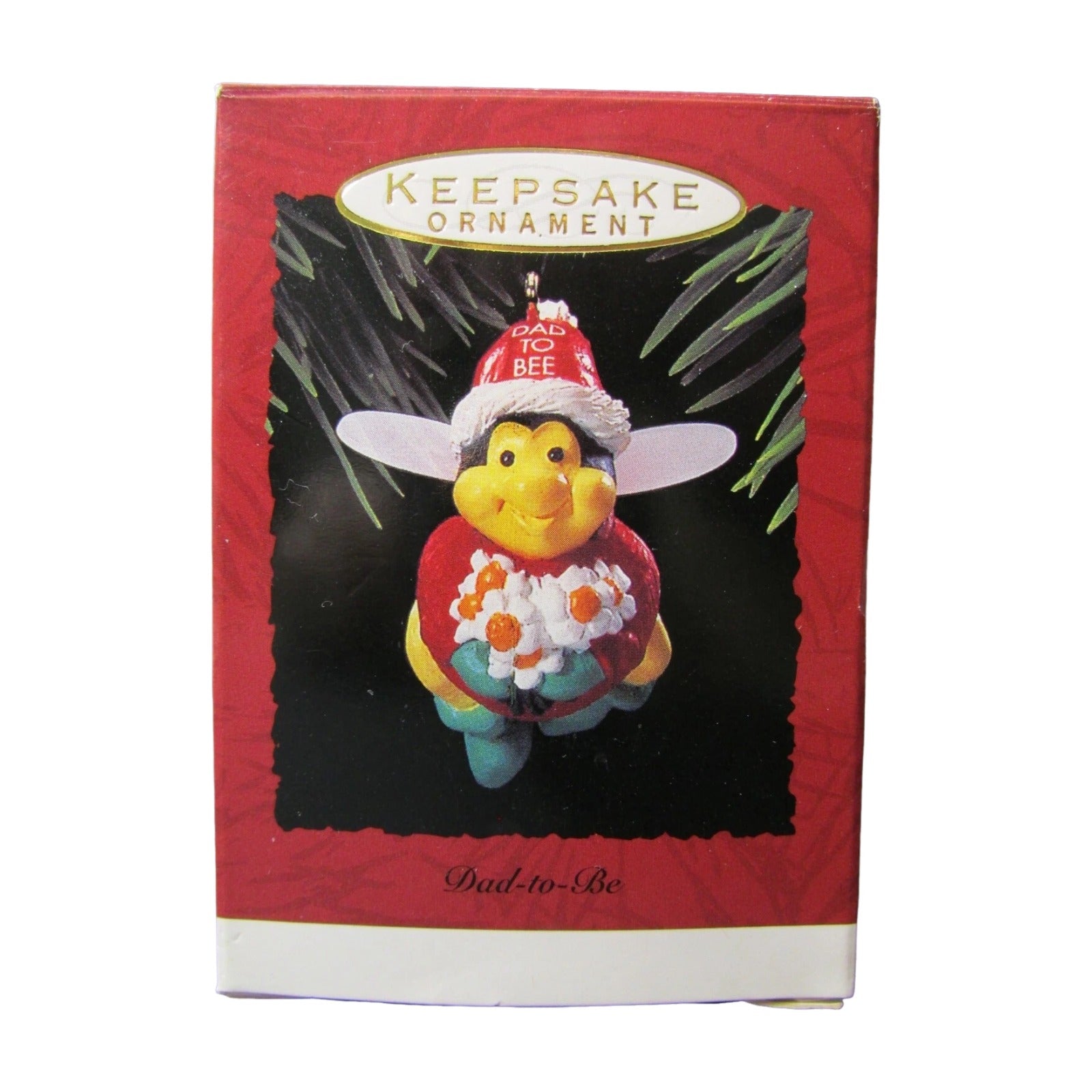 Celebrate expecting joy this holiday with the adorable 1993 Dad‑to‑Be miniature ornament. Depicting a cheerful daddy bumblebee sporting a festive Santa hat labeled “Dad to Bee,” he holds a bouquet of daisies and wears translucent wings—a playful nod to both fatherhood and holiday spirit. This ornament traditionally arrives mint in box, including its collector packaging (and often tag or sleeve). No batteries, lights, or cords are needed—just hang and enjoy.