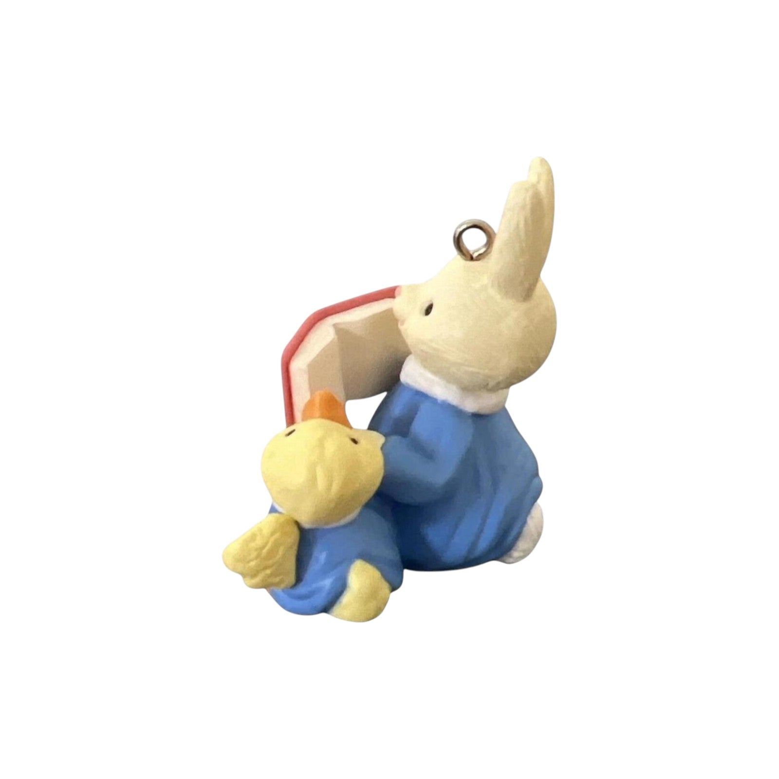 This heartwarming 1993 Divine Duet ornament captures an adorable bunny and duckling singing together from an Easter Hymns book, dressed in choir robes—a charming nod to springtime faith and celebration. Crafted as part of Hallmark’s Easter collection, the ornament typically arrives mint in box, often including the original packaging or collector sleeve. No batteries, cords, or light strings are required—just hang for instant display and seasonal inspiration.