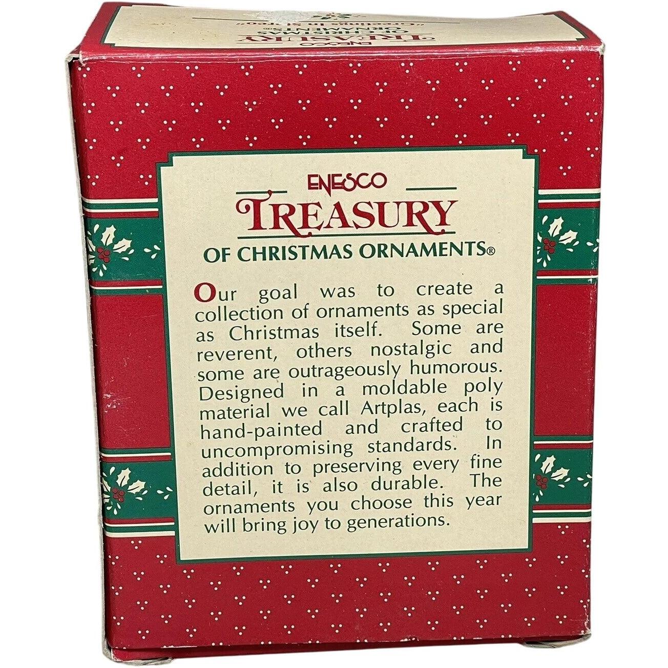 Celebrate family and festive tunes with the 1993 Enesco “Greetings in Stereo – Son” ornament. This heartwarming collectible features a cheerful young boy wearing headphones and enjoying his favorite holiday music, capturing the fun and energy of a child at Christmas. Hand-painted in bright, joyful colors with Enesco’s signature detail, it beautifully blends nostalgia, family love, and 1990s holiday charm. A perfect gift for parents or collectors, this ornament symbolizes the simple joy of sharing music and memories together during the season.