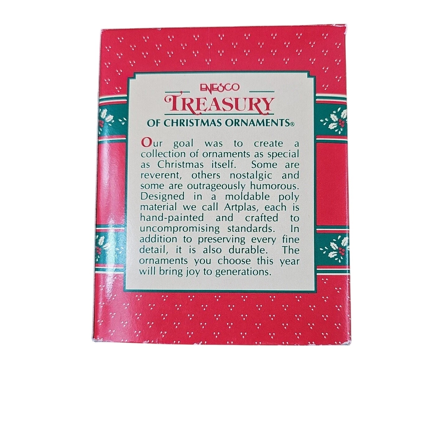 Add a touch of North Pole humor to your holidays with the 1993 Enesco “I’m Dreaming of a White-Out Christmas” ornament. This playful collectible features a mischievous Christmas elf covered in snow and clutching a snow shovel, looking both proud and frosty from a day of festive cleanup. Hand-painted in cheerful reds, greens, and winter whites, it perfectly captures Enesco’s signature mix of whimsy, charm, and holiday storytelling. A must-have for collectors of elf-themed ornaments or vintage Enesco series, this piece brings laughter and light-hearted fun to every Christmas tree.