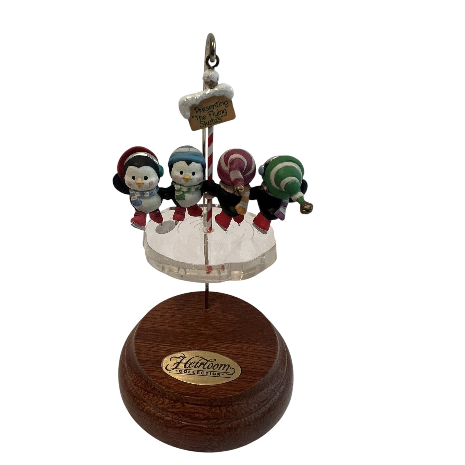 Celebrate the magic of a winter parade with the “North Pole Parade (Penguins)” ornament, SKU 126011-1, from Carlton Cards’ popular Heirloom line. This 1993 piece features a cheerful penguin character (or penguin troupe) dressed in holiday garb, perhaps carrying a banner or participating in the North Pole parade motif—molded in plastic/resin with rich holiday-paint detail and a hanging loop for easy display. With nostalgic appeal and charming design, it’s perfect for penguin-theme trees, collector’s displays, or anyone seeking a merry keepsake from the early 1990s.