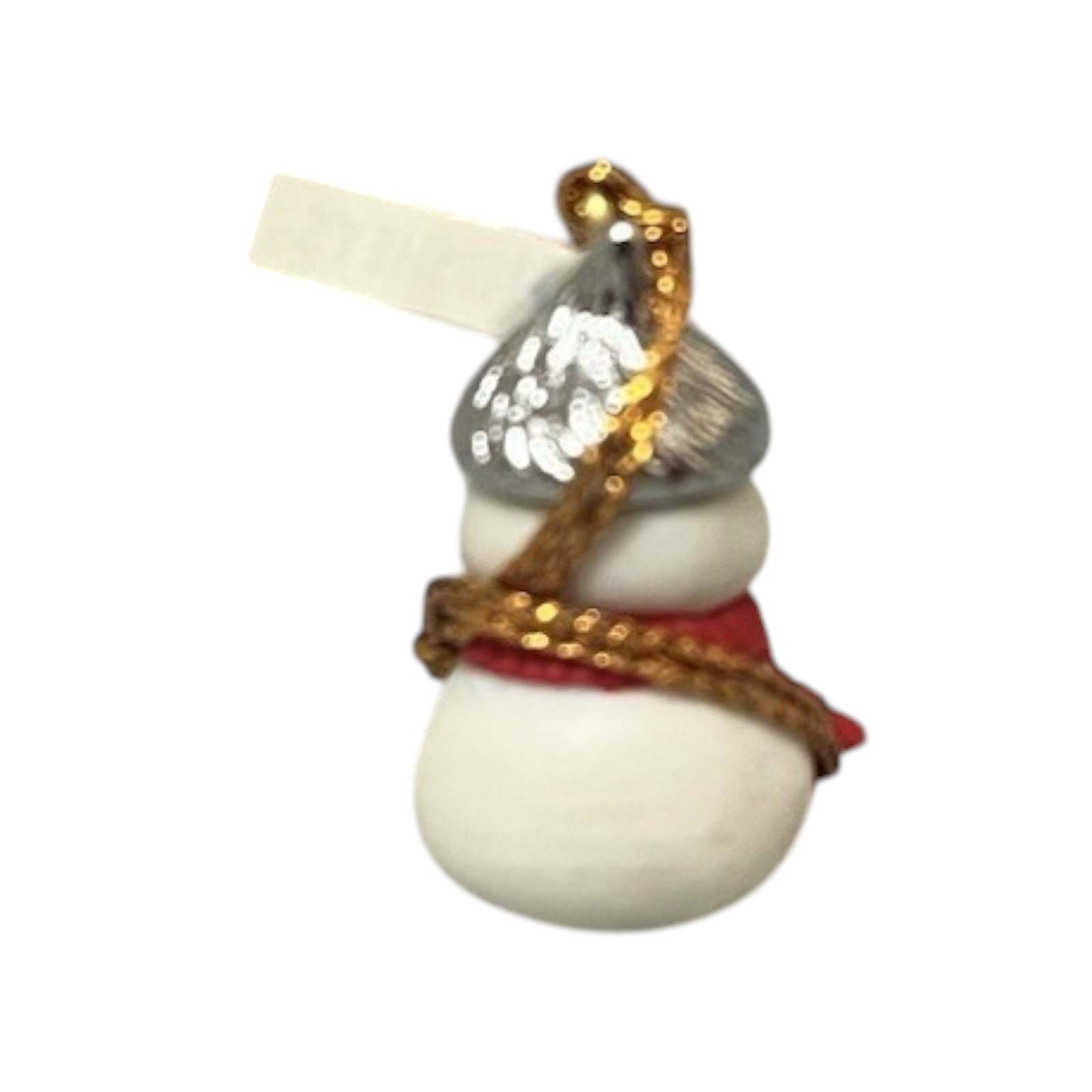 Celebrate the season with this miniature delight featuring a snowman with a whimsical Hershey’s Kiss as his hat—the perfect blend of sweet nostalgia and holiday charm. Designed as part of Enesco’s Hershey’s-licensed “Small Wonders” line, the ornament is crafted in molded plastic with a hand-painted finish, and stands approximately 1″ tall. Its compact size makes it ideal for tree accents, candy-themed décor, or as part of a vintage brand-ornament collection.