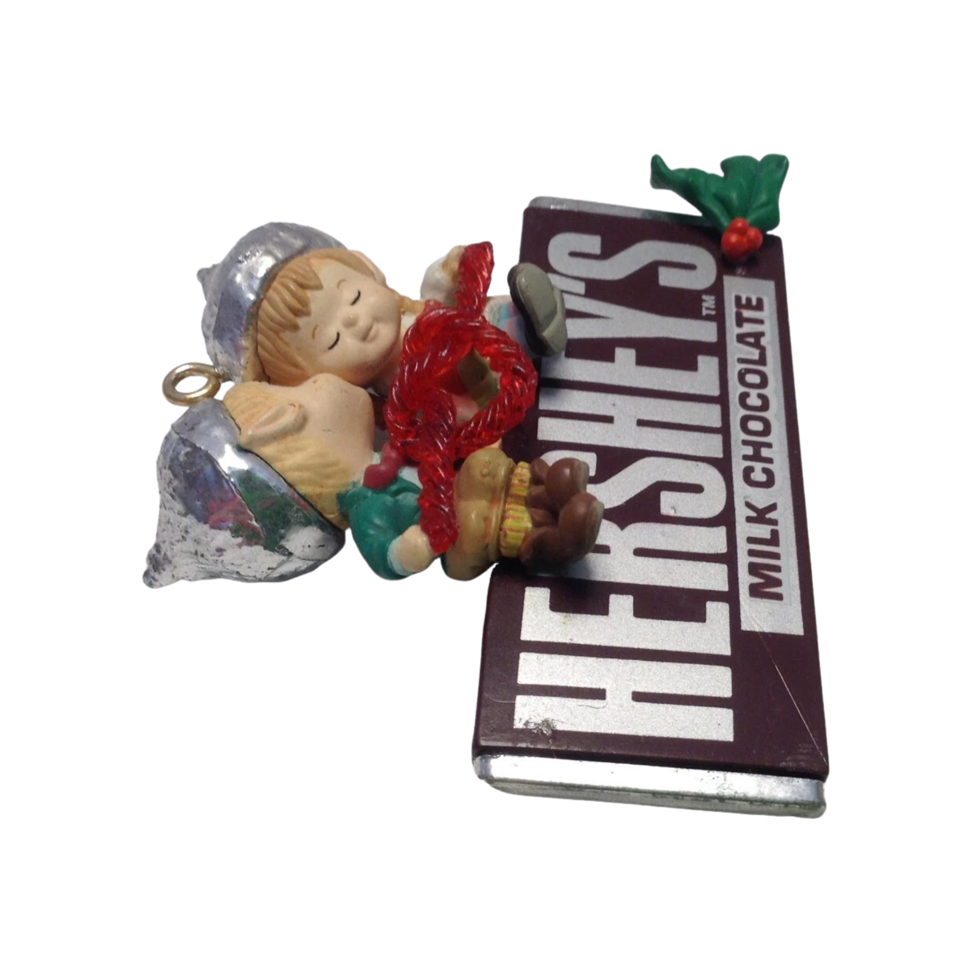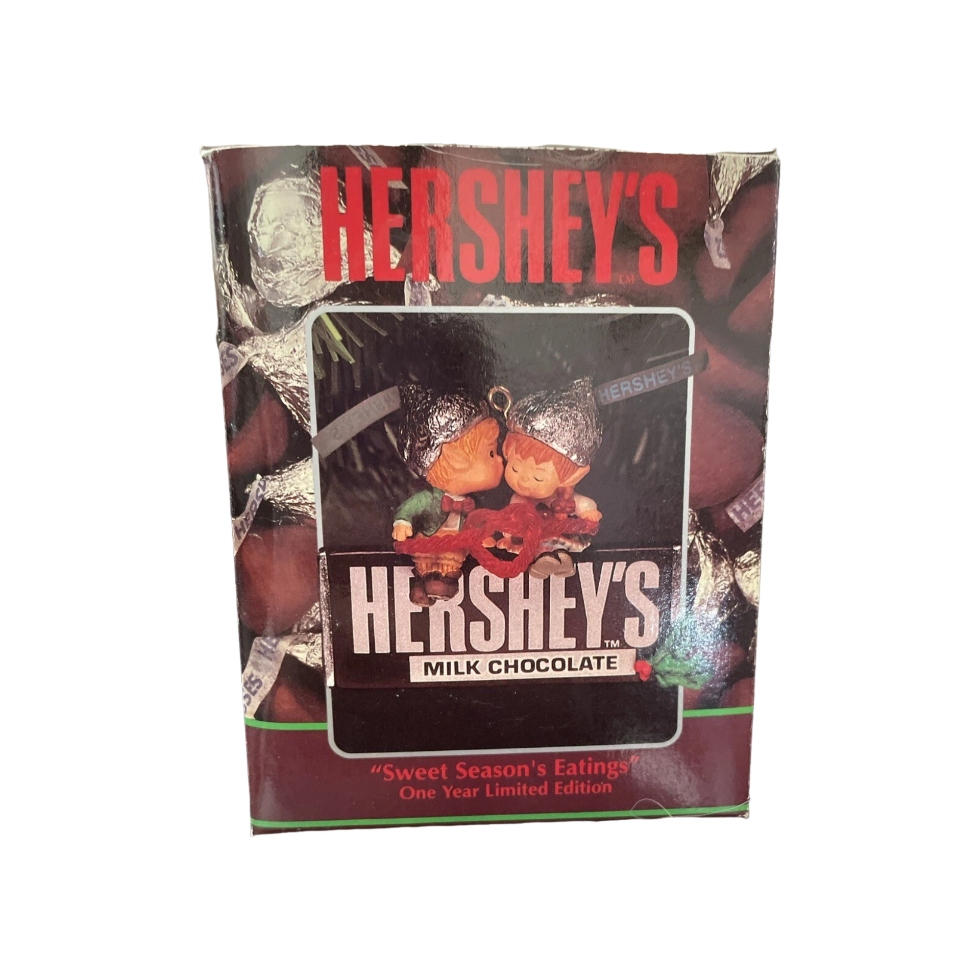 Satisfy your sweet tooth with the 1993 Enesco “Sweet Season’s Eatings” ornament — a festive collectible celebrating the classic Hershey’s brand. This charming design features Santa Claus surrounded by delicious Hershey’s treats, joyfully sharing the sweetness of the holiday season. Expertly hand-painted in warm Christmas tones with delightful detail, this ornament captures Enesco’s nostalgic artistry and the comforting charm of a classic chocolate Christmas. A perfect addition for candy lovers, Enesco fans, and collectors of branded holiday ornaments.