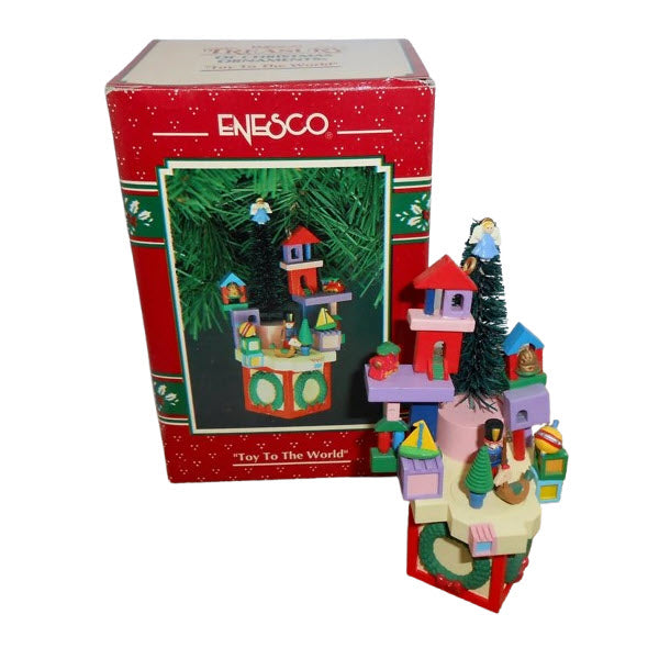 This charming 1993 Enesco ornament captures the magic of childhood and holiday joy by depicting a whimsical toy-themed scene under the banner “Toy to the World”. With playful elements, bright seasonal colors and a design that evokes both festive decor and nostalgic toy-box imagery, it makes a standout collectible. Crafted by Enesco in their Treasury of Christmas line, the piece offers rich mixed-media finish and detail that collectors appreciate. Ideal for fans of the movie Toy Story or toy-themed holiday decorations, this ornament blends nostalgic charm and craftsmanship into one keepsake.
