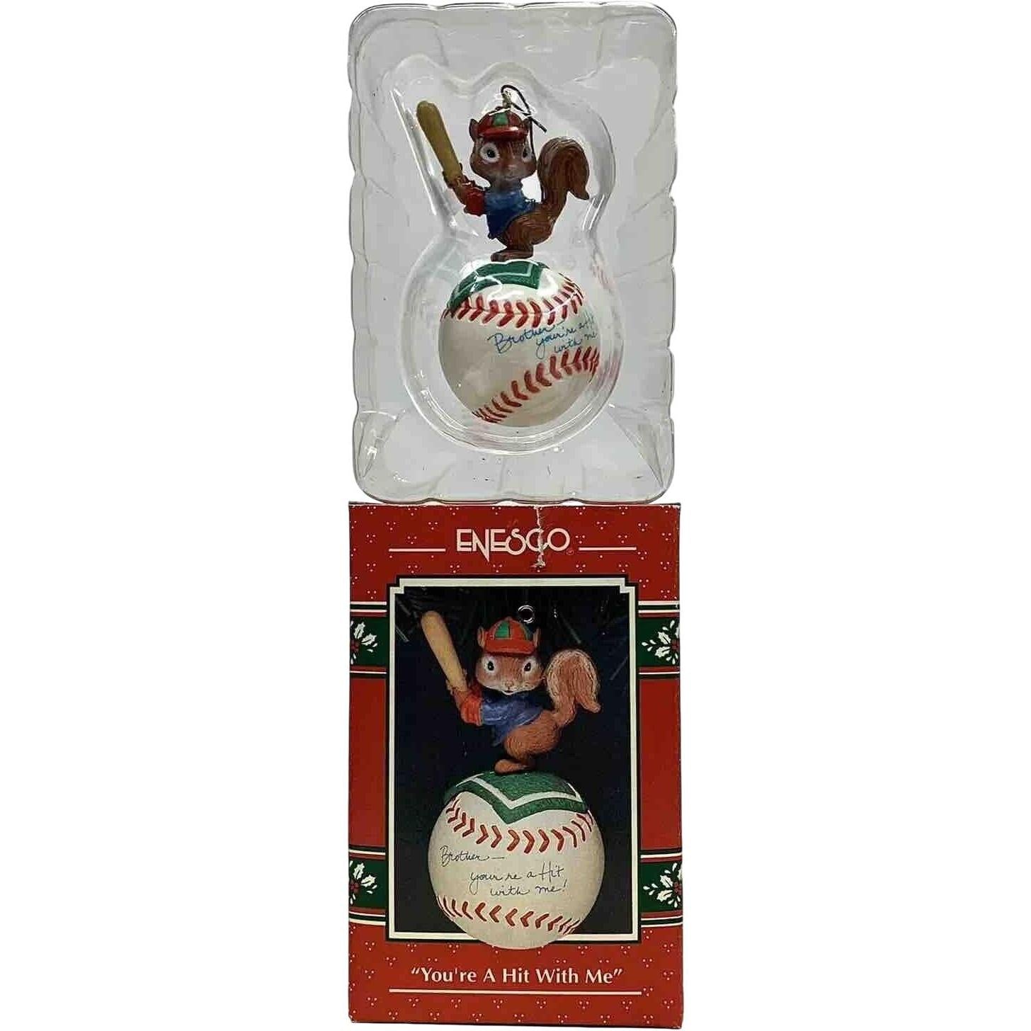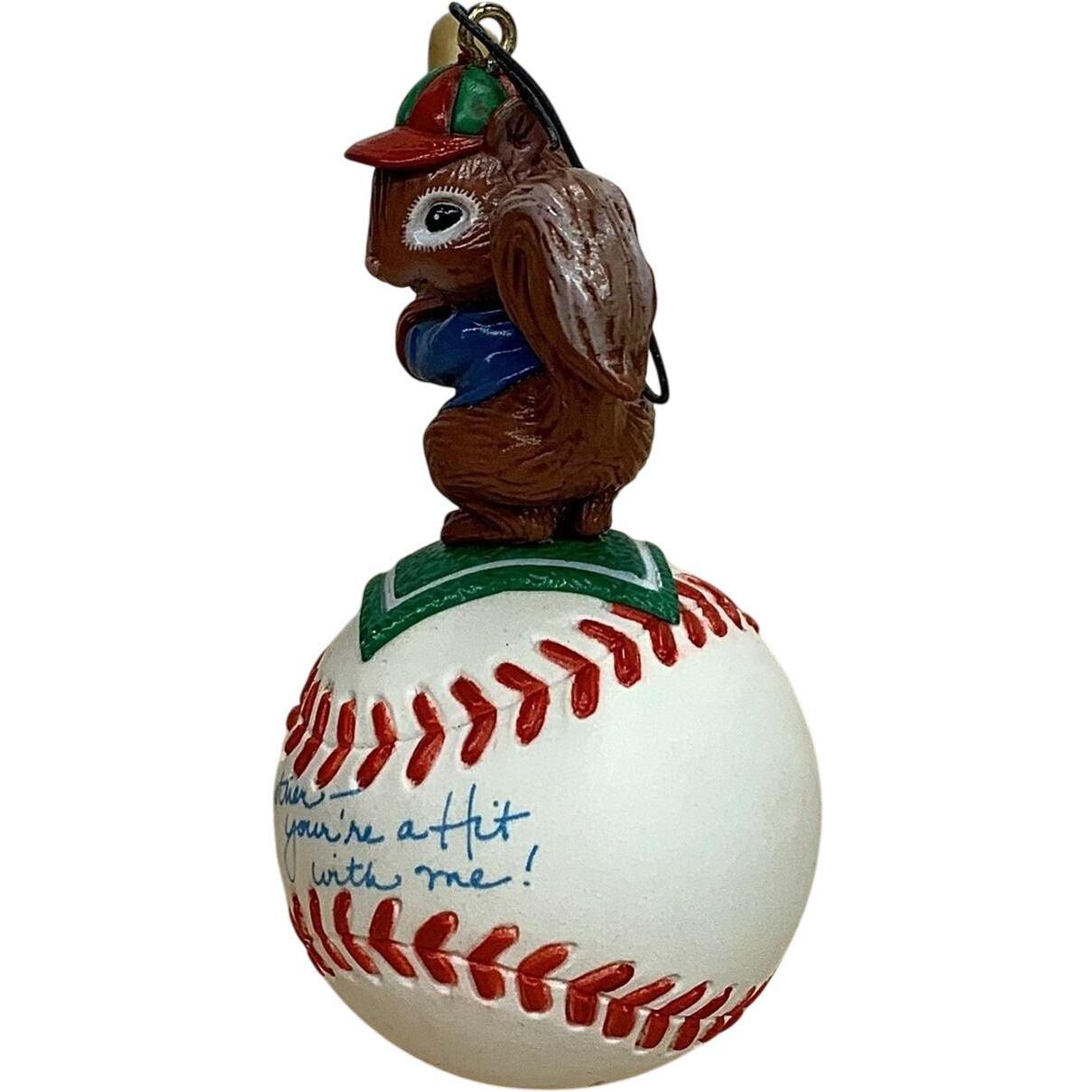 This 1993 “You’re A Hit With Me” ornament celebrates the love of the game with a baseball-themed design, featuring a glove catching a ball and a cheerful message of appreciation. The hand-painted resin piece uses classic sporting-palette accents of white, red and blue, bringing playful energy to a holiday tree or sports-fan display. It’s part of Enesco’s Sports & Activities series, making it an ideal collectible for both holiday décor and athletic-enthusiast collectors. With its charming sentiment and sporty motif, it offers a thoughtful gift for those who deserve “you’re a hit” recognition.