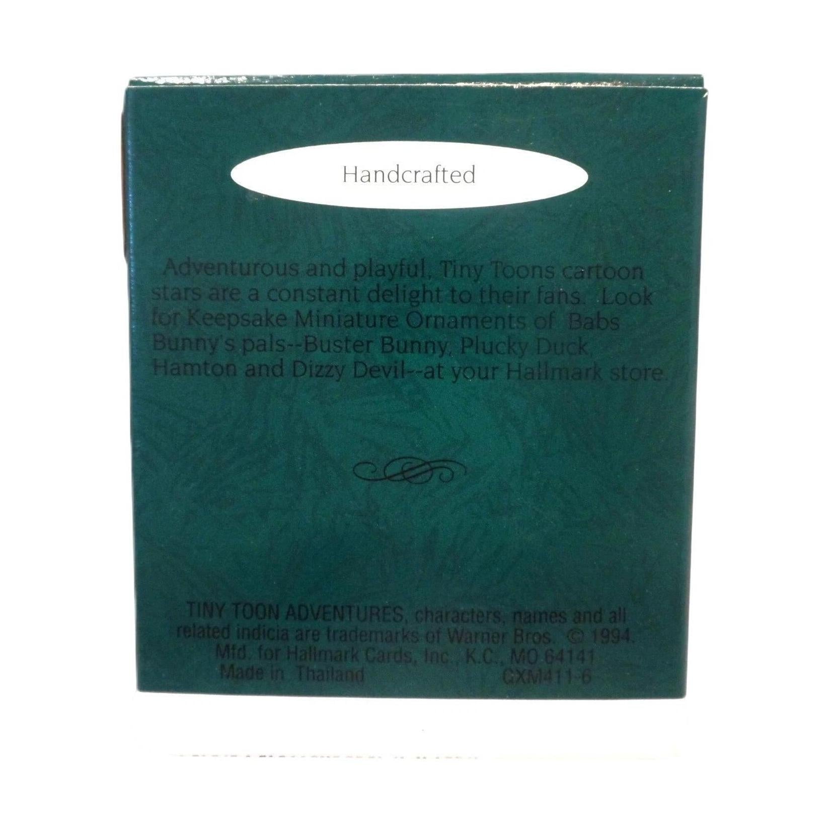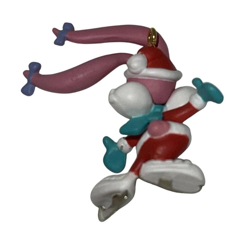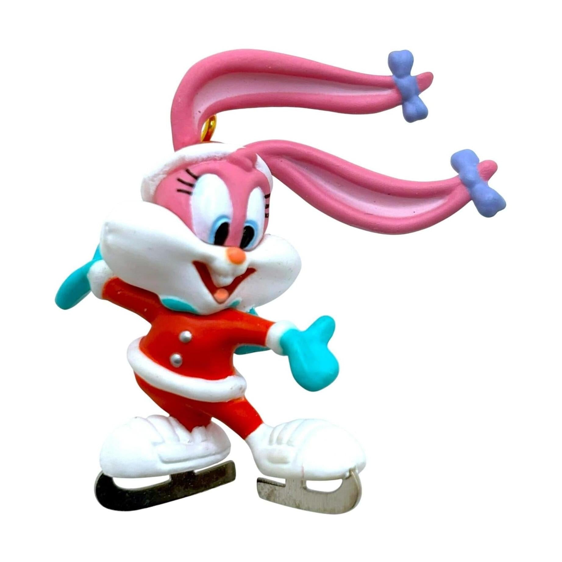Glide into festive nostalgia with this delightful 1994 Hallmark miniature ornament, featuring Babs Bunny from Tiny Toon Adventures gracefully ice-skating in a charming holiday sweater and ice skates. Sculpted with joyful expression by artist Don Palmiter, this petite keepsake stands about 1.25″ tall and arrives in its original box—ready to hang with no batteries or cords required.