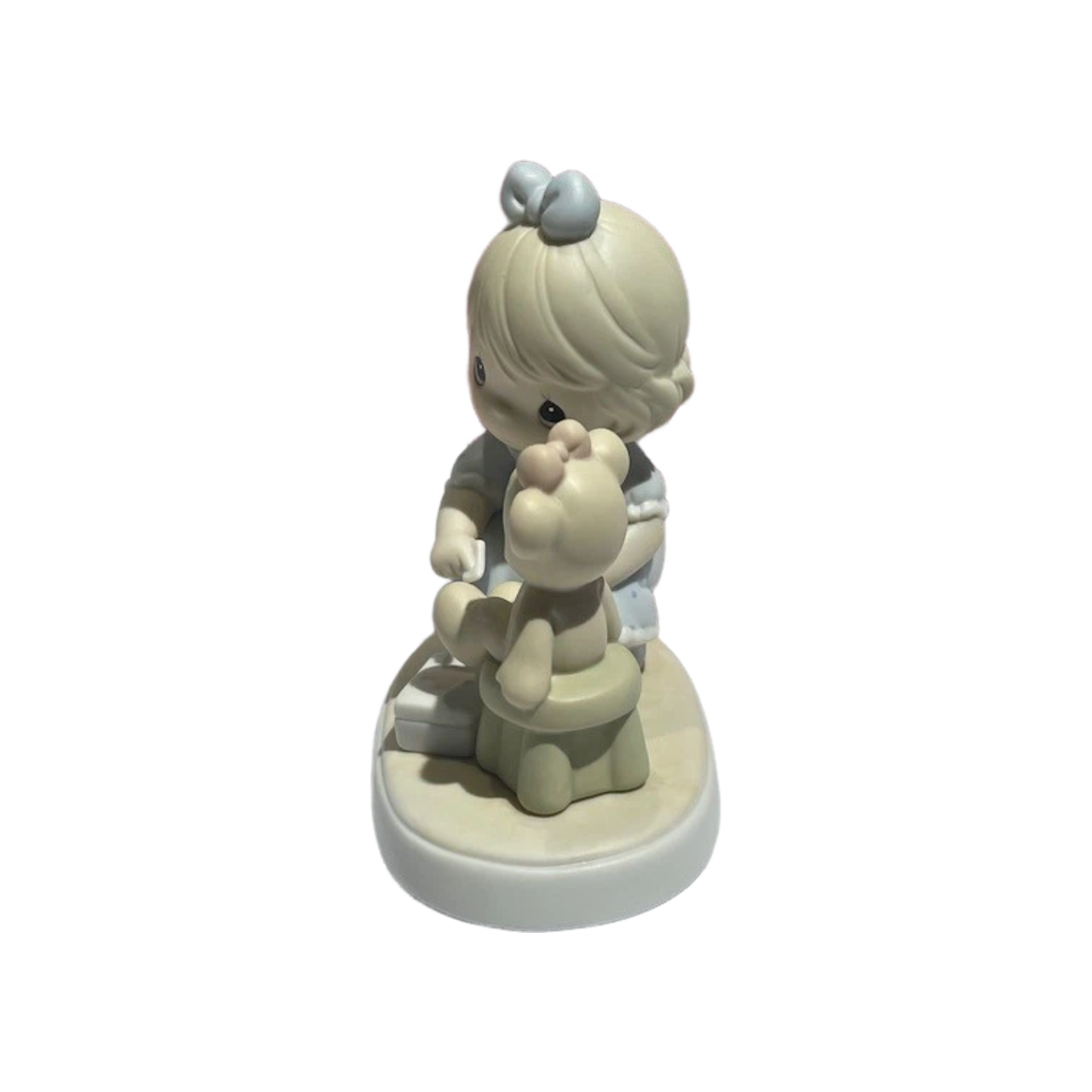 The 1994 Caring figurine is a Precious Moments Members’ Only exclusive released by Enesco for club members, featuring a tender scene of a young girl carefully tending to her teddy bear — often interpreted as bandaging or comforting it. The porcelain figurine has a soft matte finish and pastel tones typical of Precious Moments pieces, conveying warmth and compassion, and makes a meaningful collectible for fans of Precious Moments or figurine collectors alike