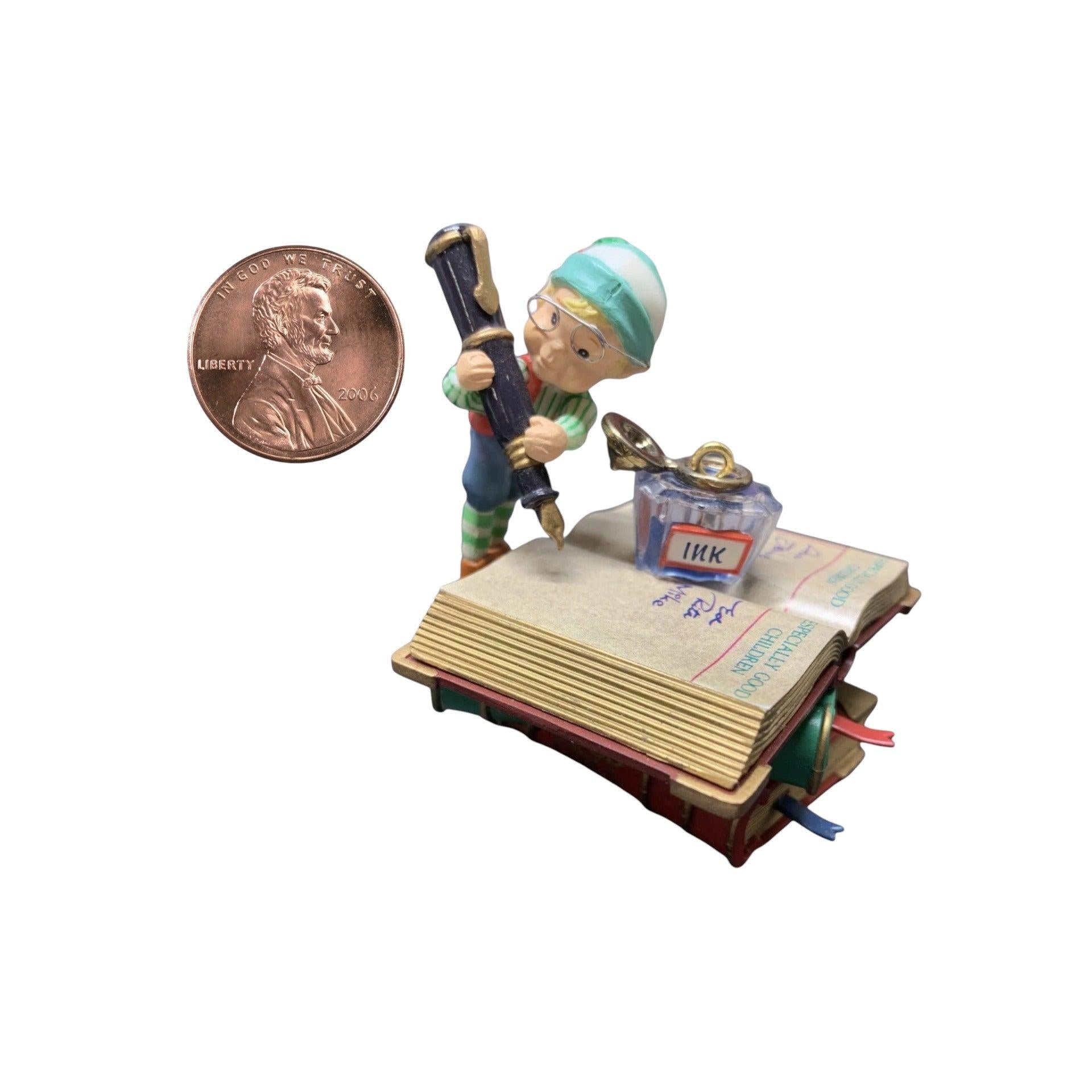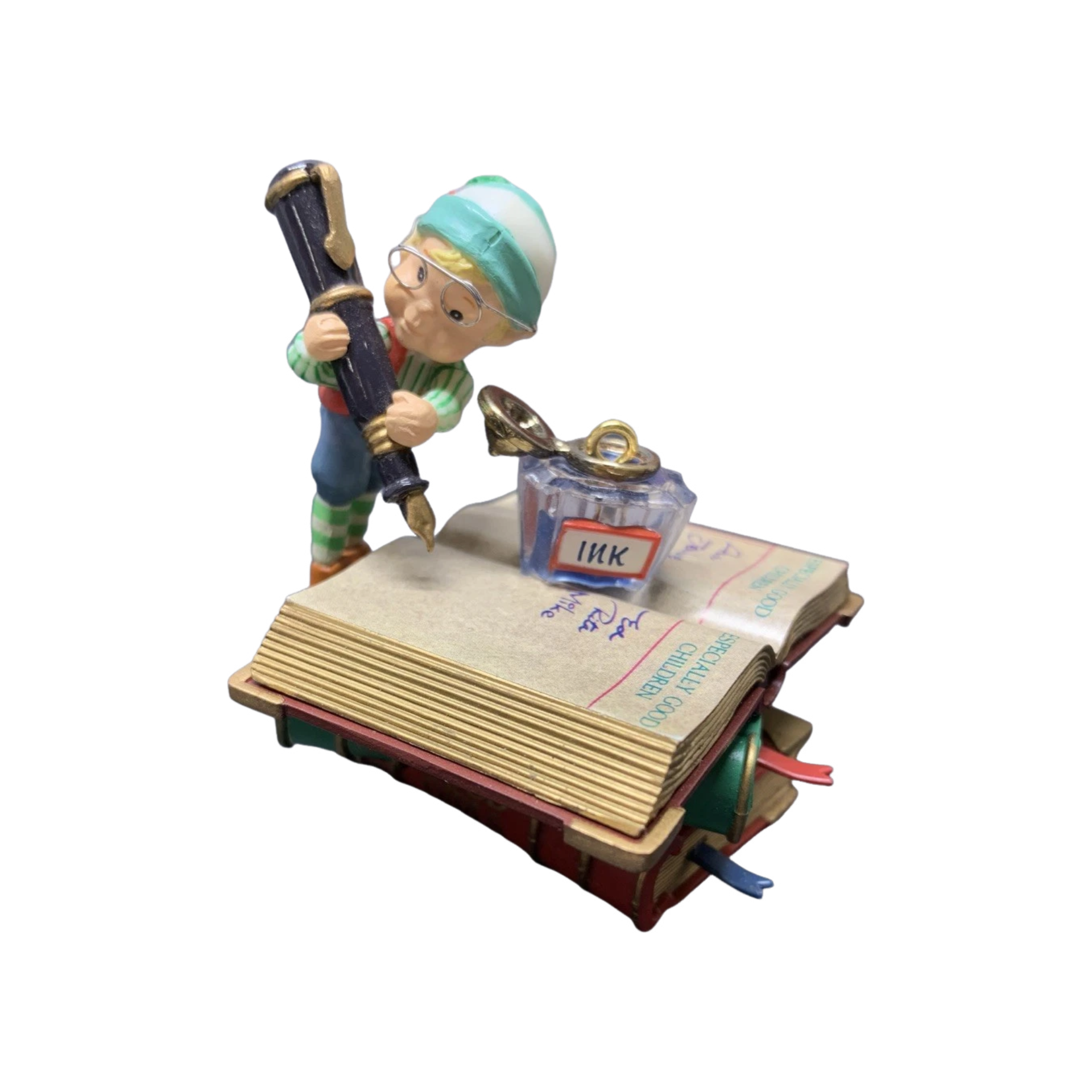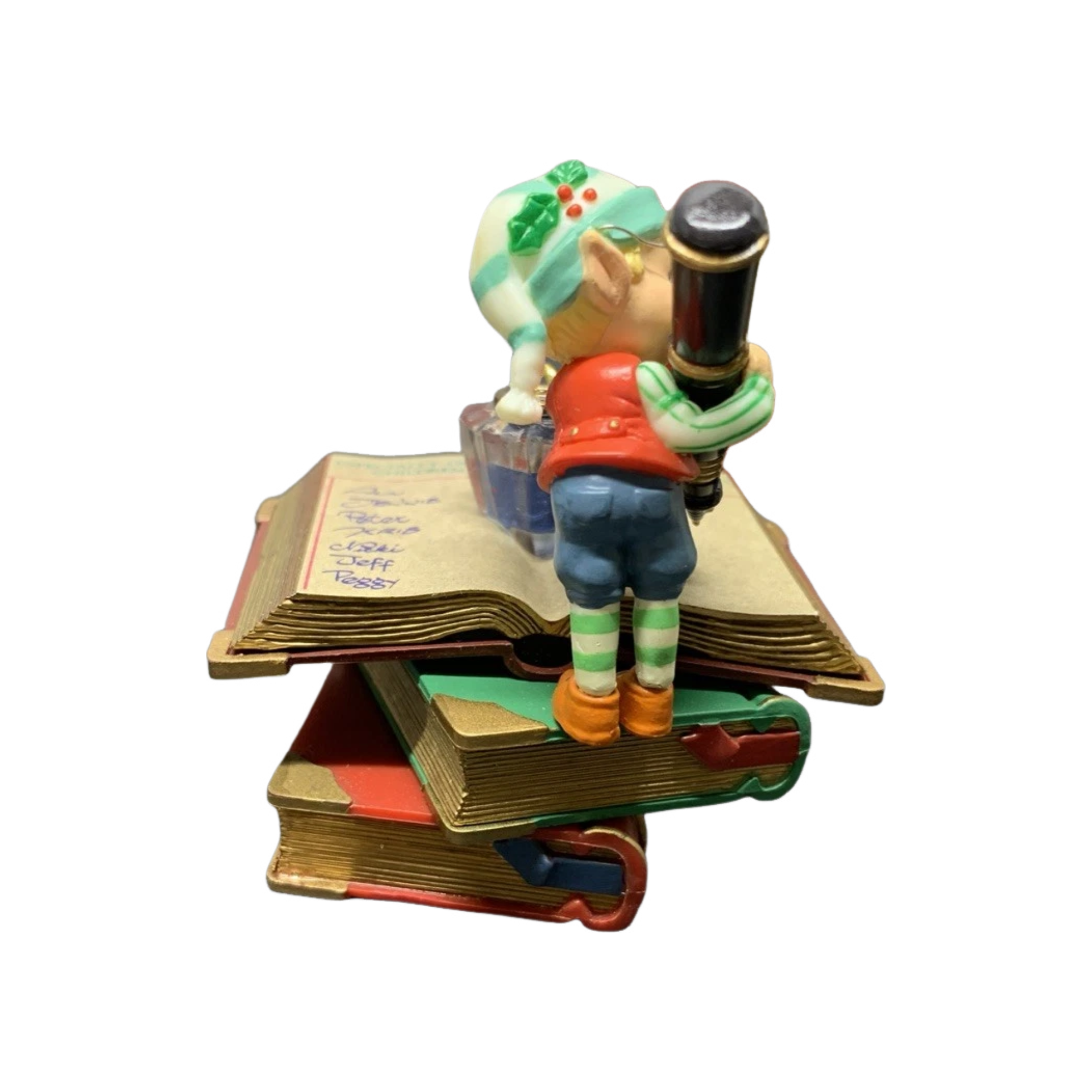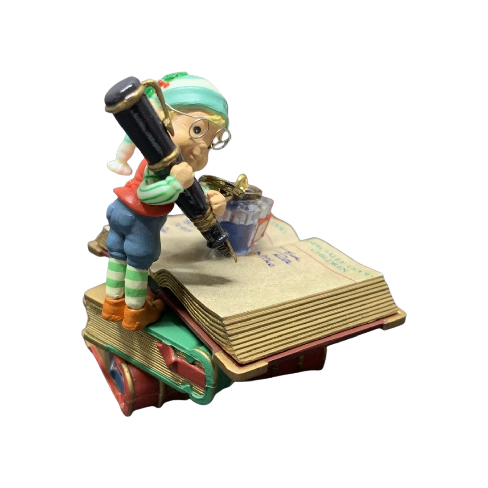 Share a bit of North Pole cheer with the 1994 Enesco “Especially For You” ornament. This adorable collectible features a cheerful Christmas elf holding a wrapped present, ready to deliver holiday joy straight from Santa’s workshop. Hand-painted in classic red, green, and gold tones, this piece highlights Enesco’s signature craftsmanship and festive personality. Perfect for collectors of whimsical holiday ornaments, this elf brings charm, color, and heartwarming spirit to any Christmas tree.