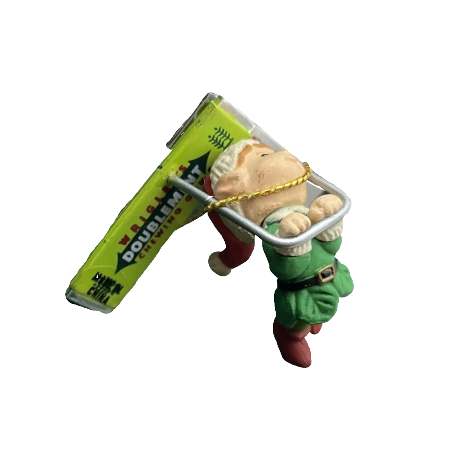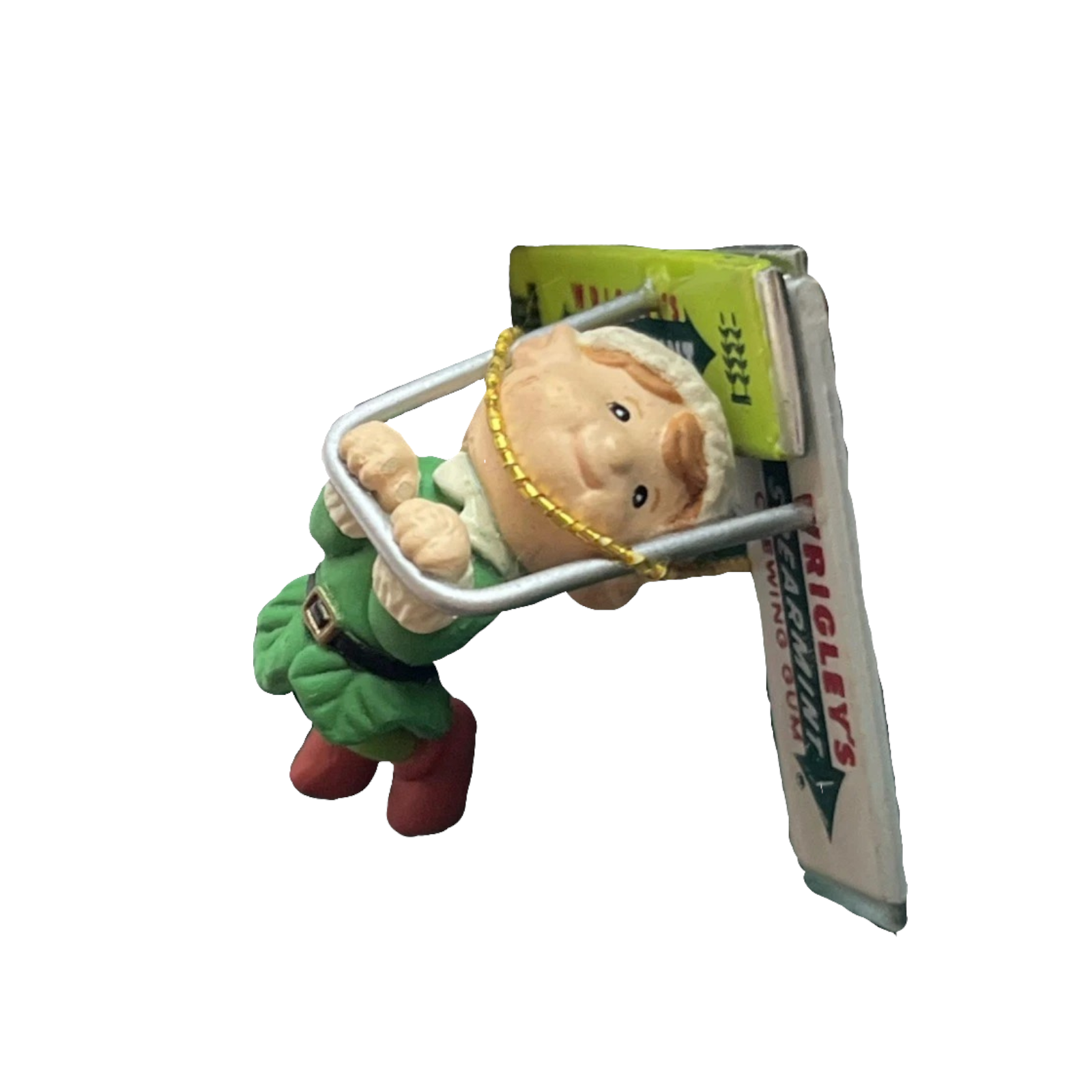 Celebrate holiday whimsy with the 1994 “Festive Flyer” ornament, officially licensed by Wrigley’s and produced by Enesco. This miniature delight from the “Small Wonders” series features a charming flyer/elf motif themed around Wrigley’s gum — detailed in hand-painted molded plastic with vibrant colors and holiday flair. Compact yet full of character, it’s an ideal addition for those collecting brand-themed ornaments, 1990s holiday décor, or candy-lover memorabilia. For tree decor or nostalgic display, this piece brings a pop of fun and vintage charm.