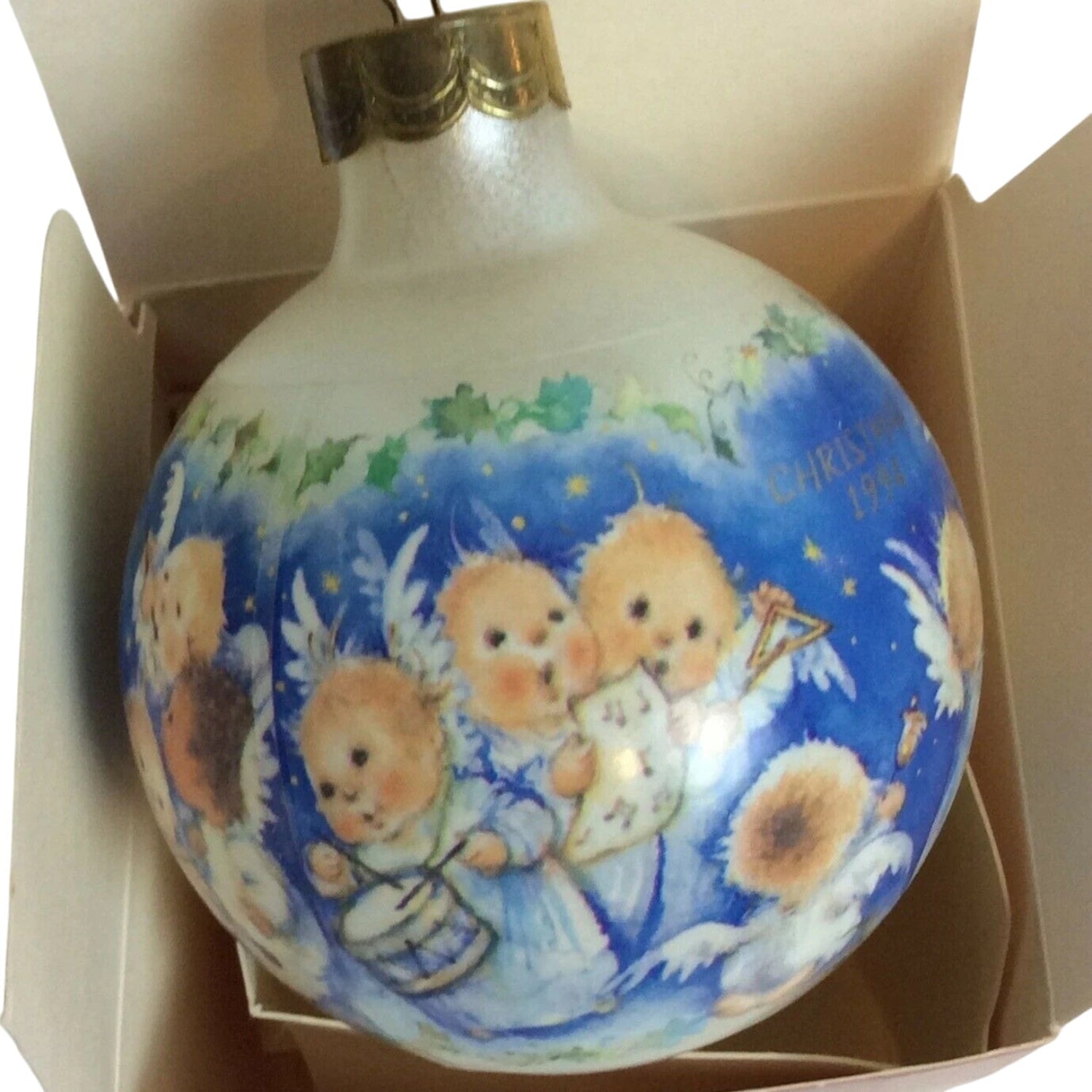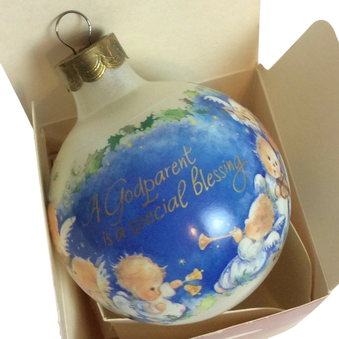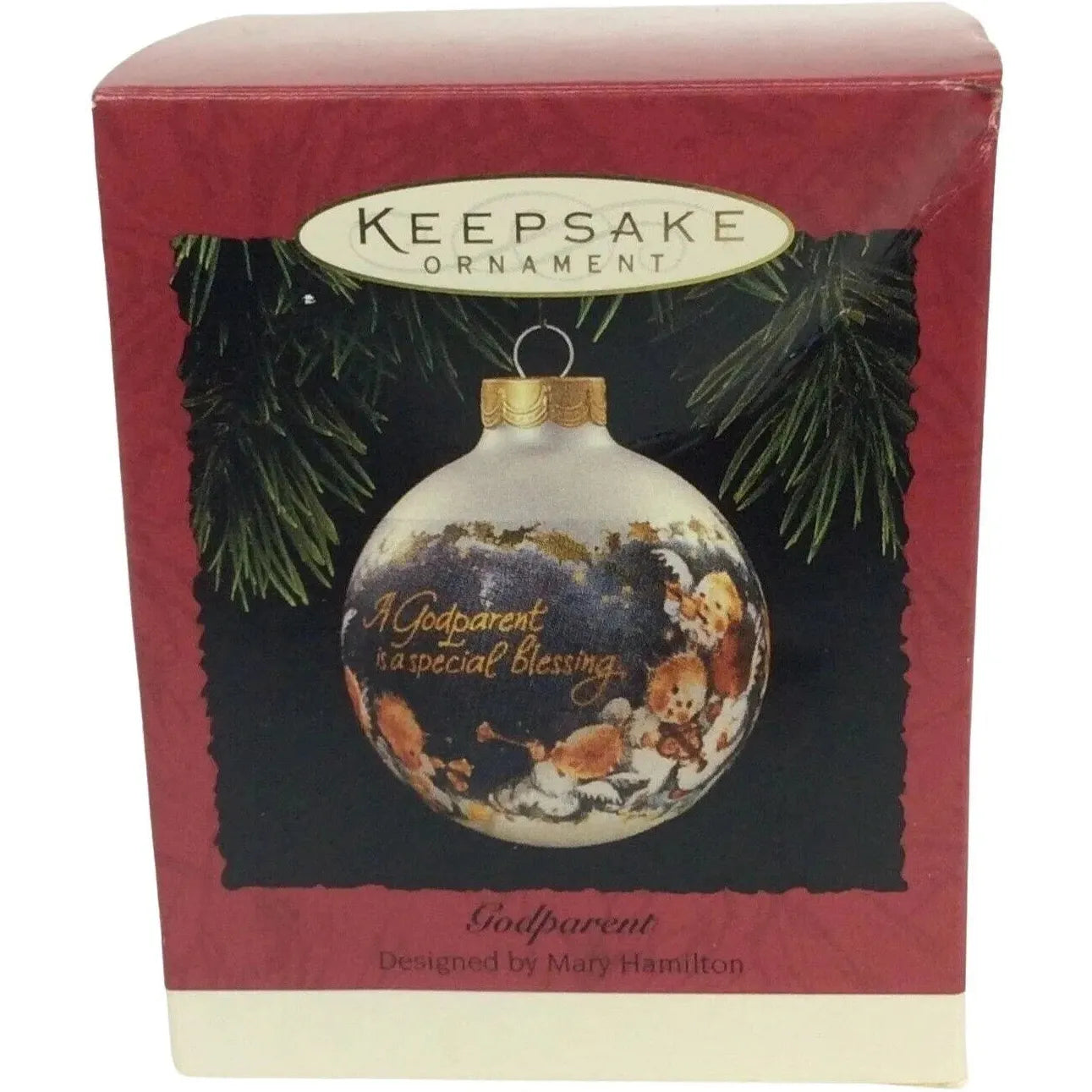 Honor the special role of godparents with the 1994 Godparent ornament, a timeless keepsake from Hallmark’s collection. This delicate blown-glass ball features a serene snowy scene of angelic cherubs, gently accented by the inscription A Godparent is a special blessing. Designed by Mary Hamilton, this heartfelt ornament arrives in its original "Keepsake Ornament" box, ready to hang and treasure—no power, cords, or accessories needed.