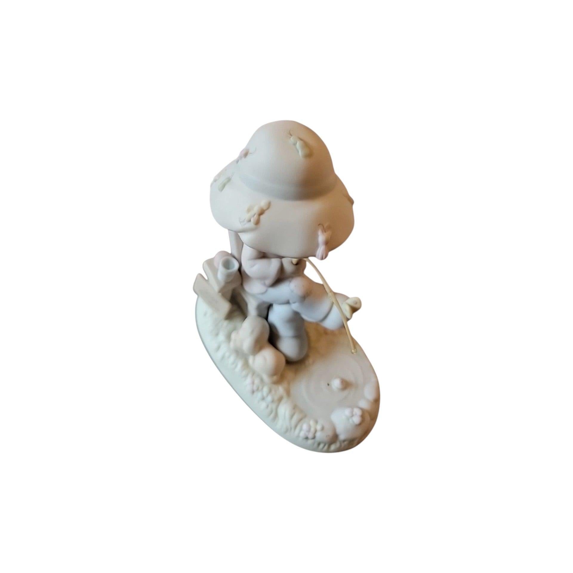 Just a Line to Say You're Special is a warm and nostalgic 1994 Precious Moments figurine (item #522864) that portrays a relaxed fisherman — often shown with his fishing line cast and a loyal dog companion close by — capturing a heartfelt scene of leisure, reflection, and friendship. Rendered in the classic soft pastel and matte porcelain bisque finish characteristic of Precious Moments collectibles, this piece carries a sentimental message perfect for celebrating friendship, retirement, or simply letting someone know they’re valued.