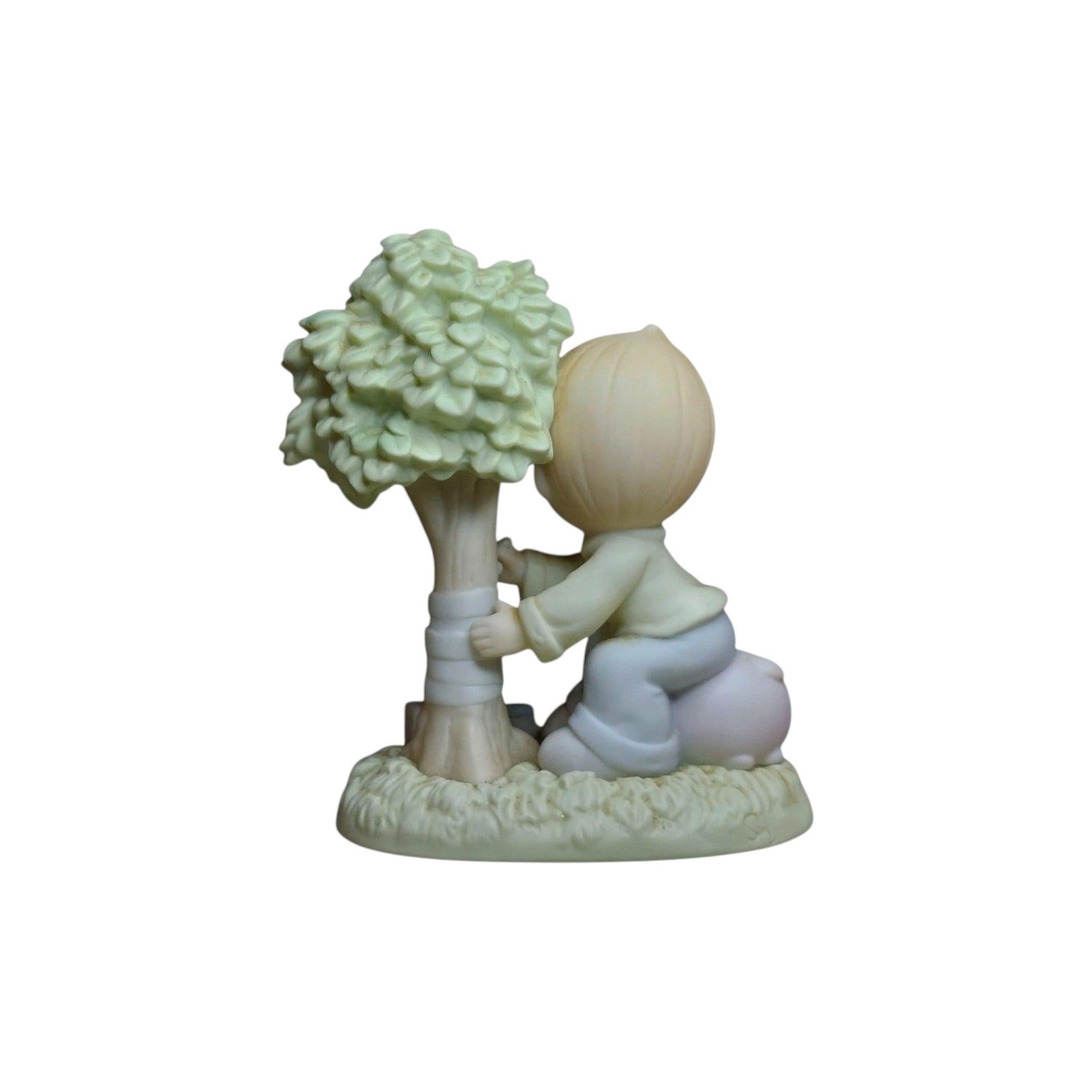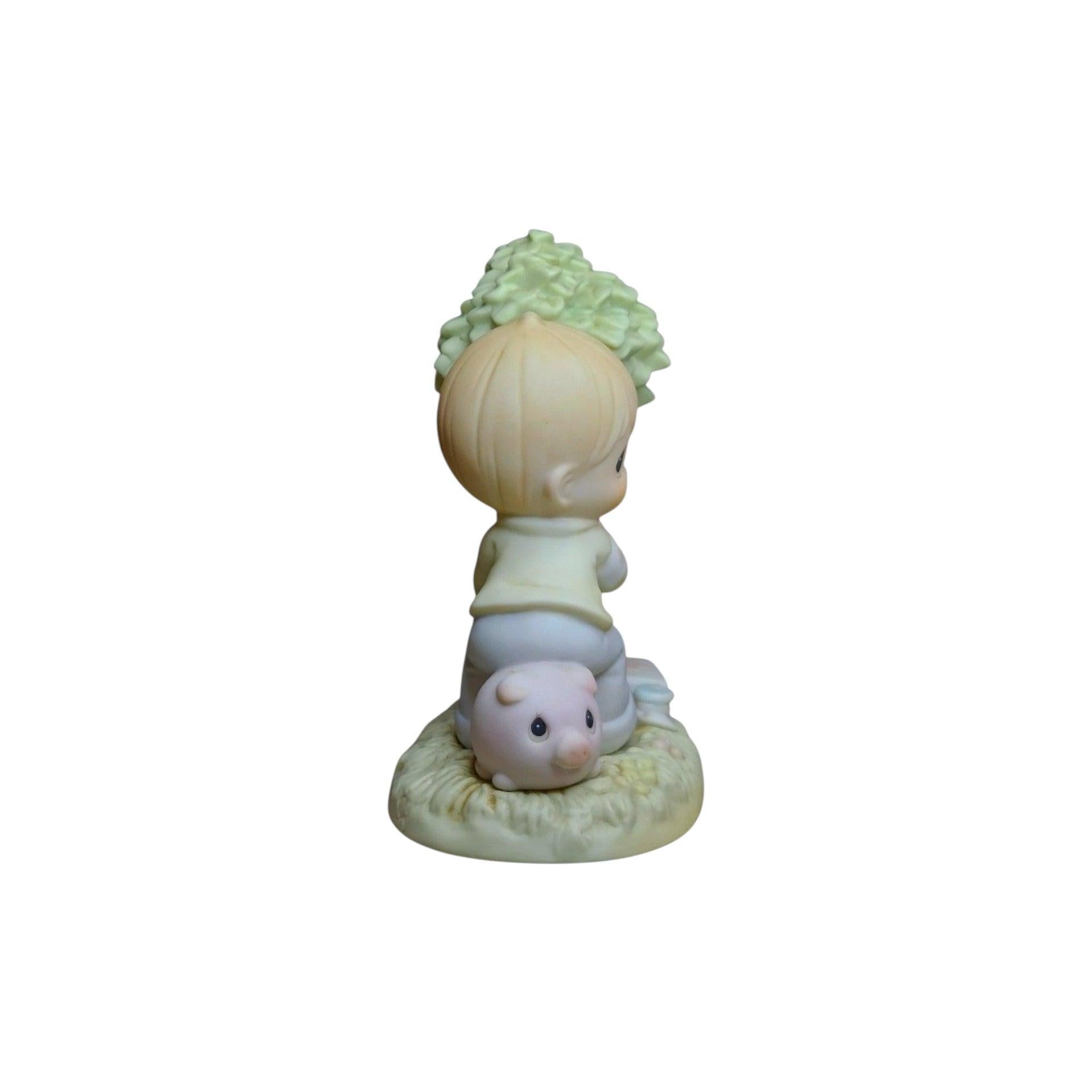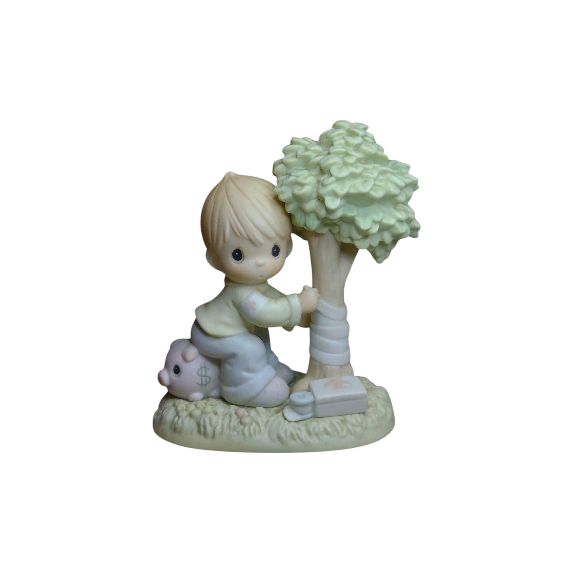 Money’s Not the Only Green Thing Worth Saving is a charming 1994 Precious Moments porcelain figurine that conveys a whimsical yet thoughtful sentiment about valuing more than just money. The piece depicts a little boy tending to or “saving” a tree, often shown with a piggy bank and bandages as he cares for the sapling — a visual reminder that nature and friends are worth preserving. Finished in soft pastels and classic matte bisque typical of Precious Moments collectibles, it’s a delightful addition to any collection or a meaningful gift for someone special.
