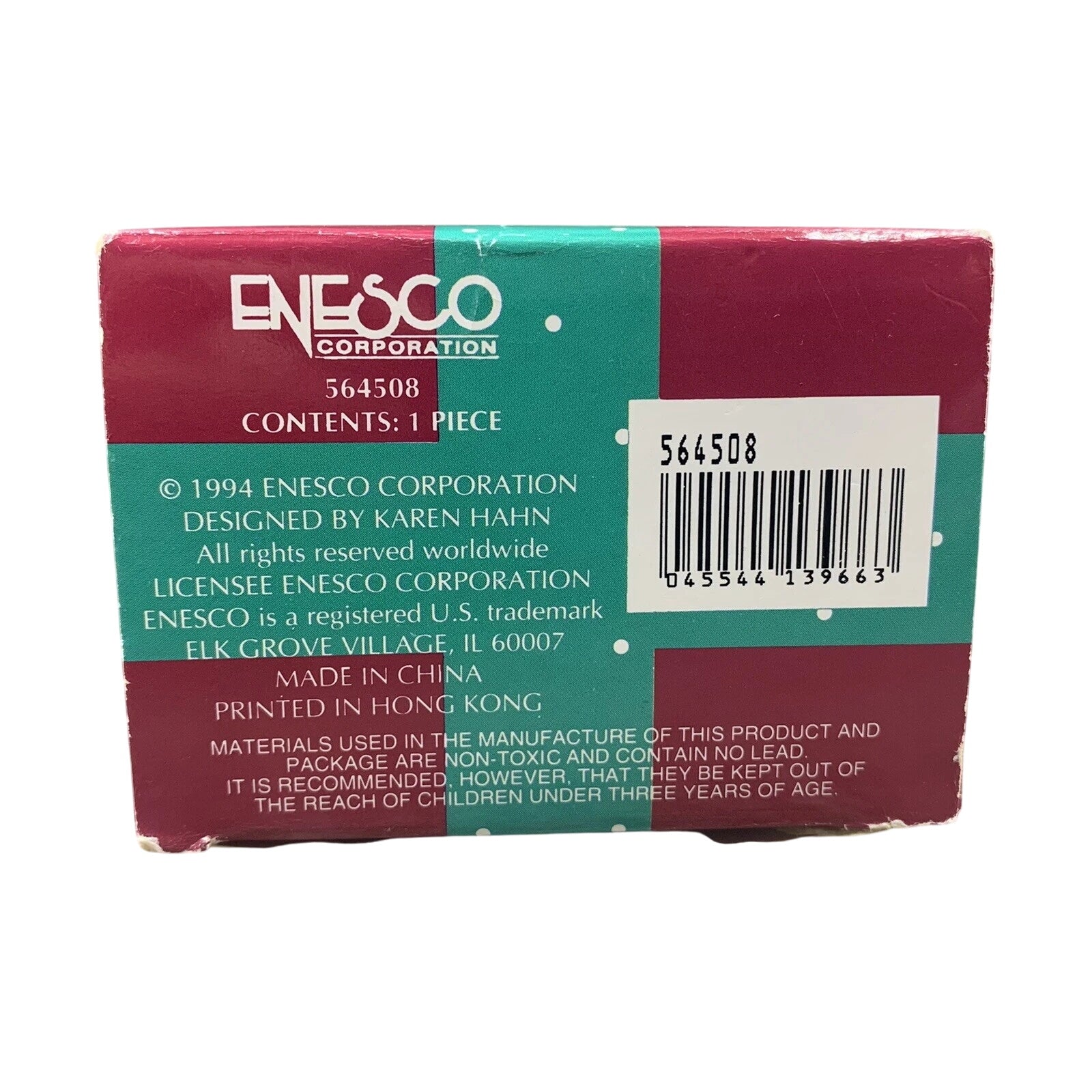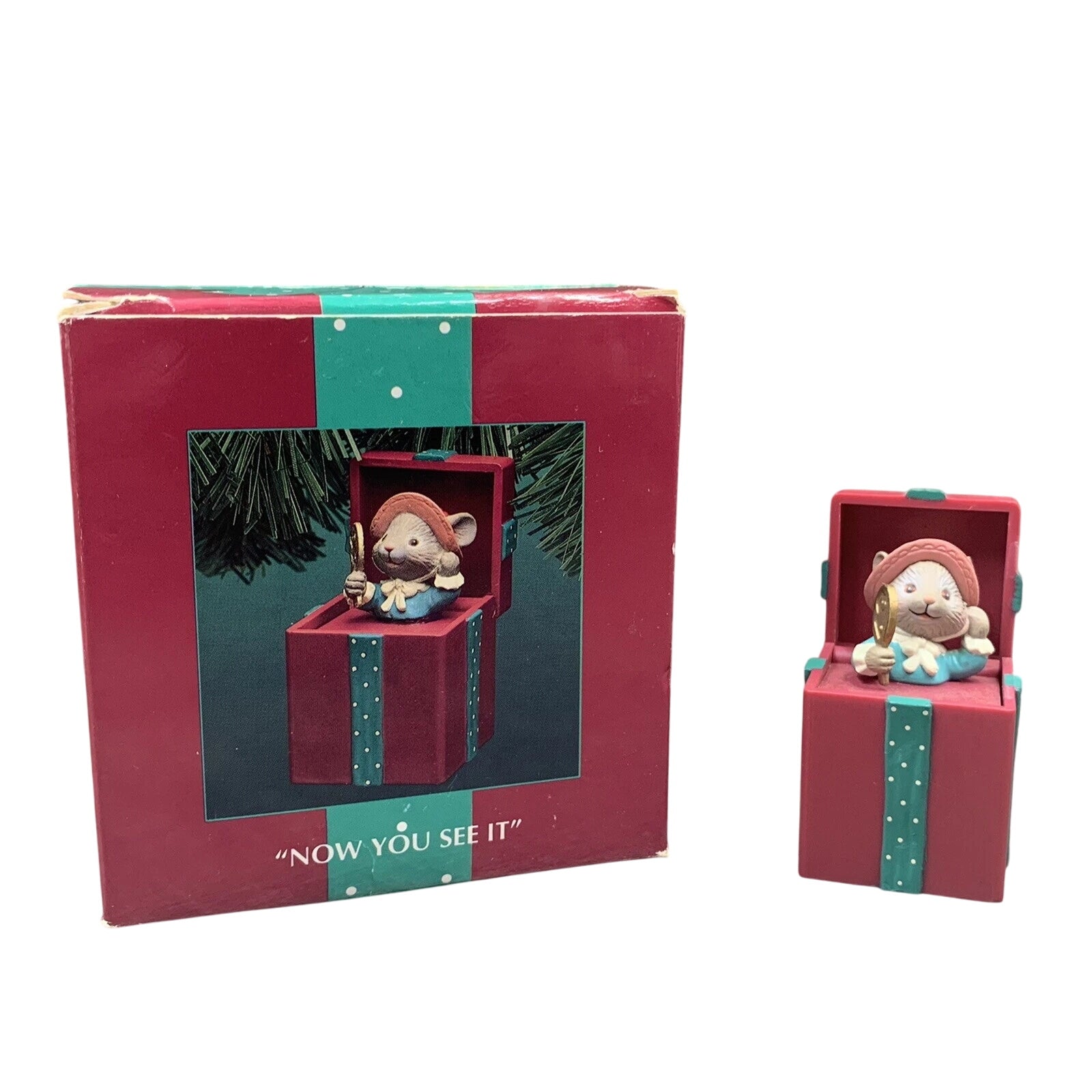 Add a touch of playful magic to your tree with the 1994 Enesco “Now You See It” ornament. This adorable collectible features a mischievous little mouse performing a holiday magic trick, complete with a tiny hat and festive backdrop. Hand-painted in bright seasonal colors with Enesco’s signature attention to detail, it captures both whimsy and warmth in a single charming scene. Perfect for animal lovers and vintage Enesco collectors, this ornament brings lighthearted fun and nostalgic cheer to your Christmas décor.