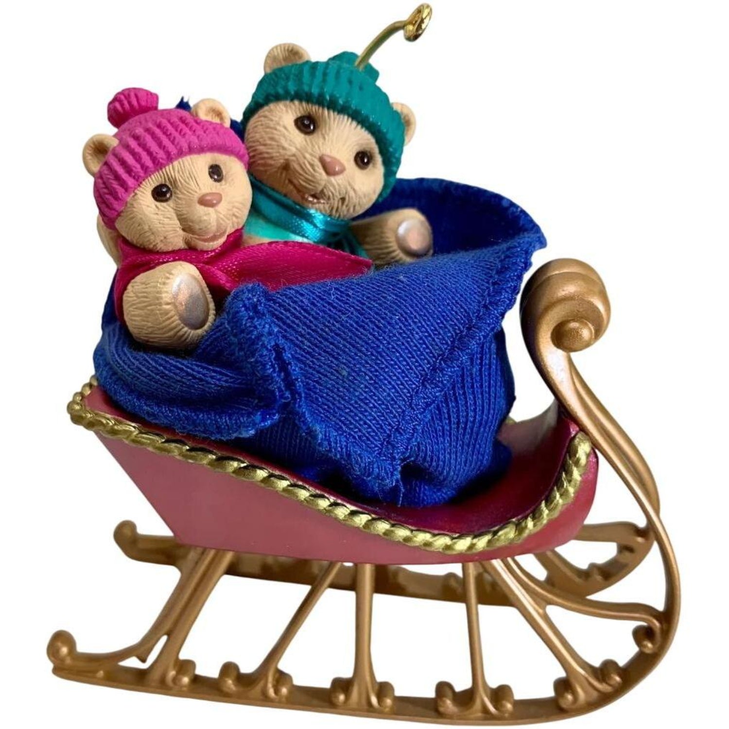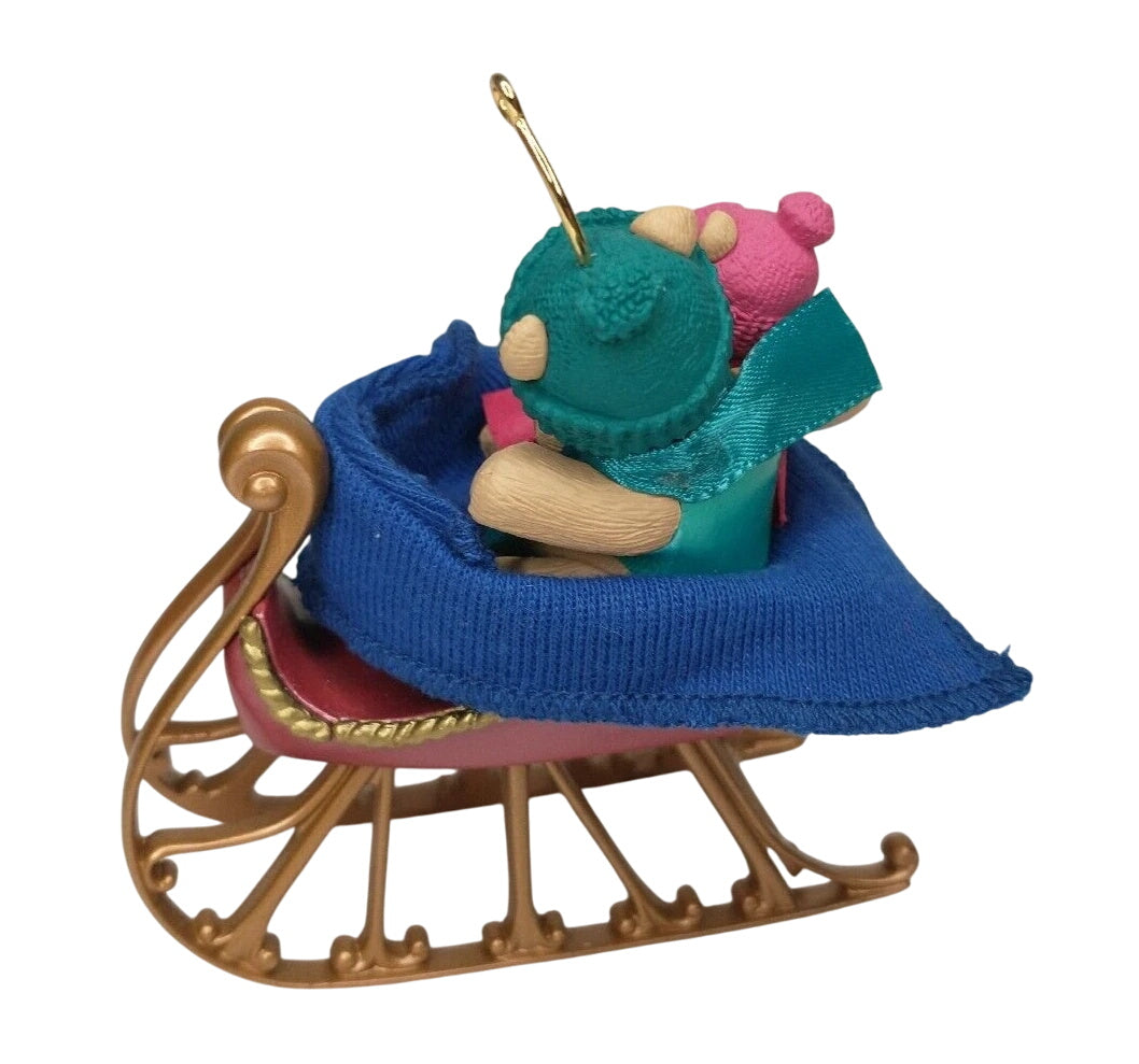 Capture the warmth of a shared first holiday with this heartwarming 1994 Our First Christmas Together ornament. Featuring two adorable teddy bears bundled under a blanket in a sleigh, it beautifully embodies the joy of togetherness. Designed by Patricia Andrews, this classic Keepsake piece is handcrafted with brass sleigh runners for a dash of elegance. It arrives ready to hang in its original box—with zero power or extras needed.