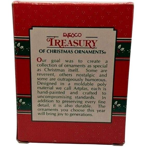 Hit the slopes with style this holiday season! This 1994 “Ski-Son’s Greetings” ornament by Enesco features a cheerful little mouse decked out in ski gear — bright yellow sunglasses, skis across a snowy slope, and a festive holiday sign that reads “Ski-Son’s Greetings.” Crafted in durable ArtPlas-style molded plastic and hand-painted in vivid holiday colours, it offers both playful fun and collector appeal. It’s an ideal piece for sports-theme tree décor, skiing enthusiasts, or vintage ornament collectors. The wide shape (approximately 4.5″ wide) makes it a standout in any display.