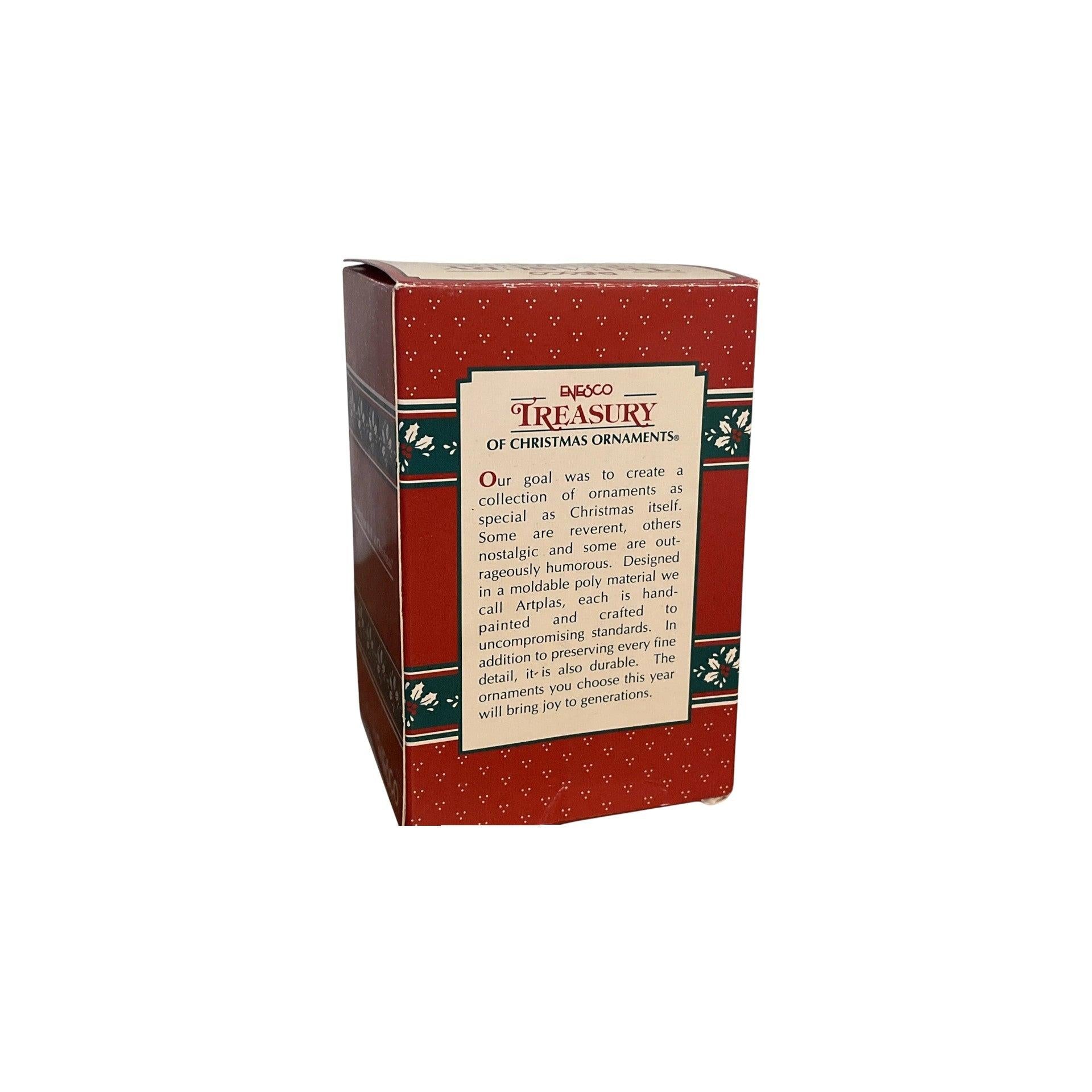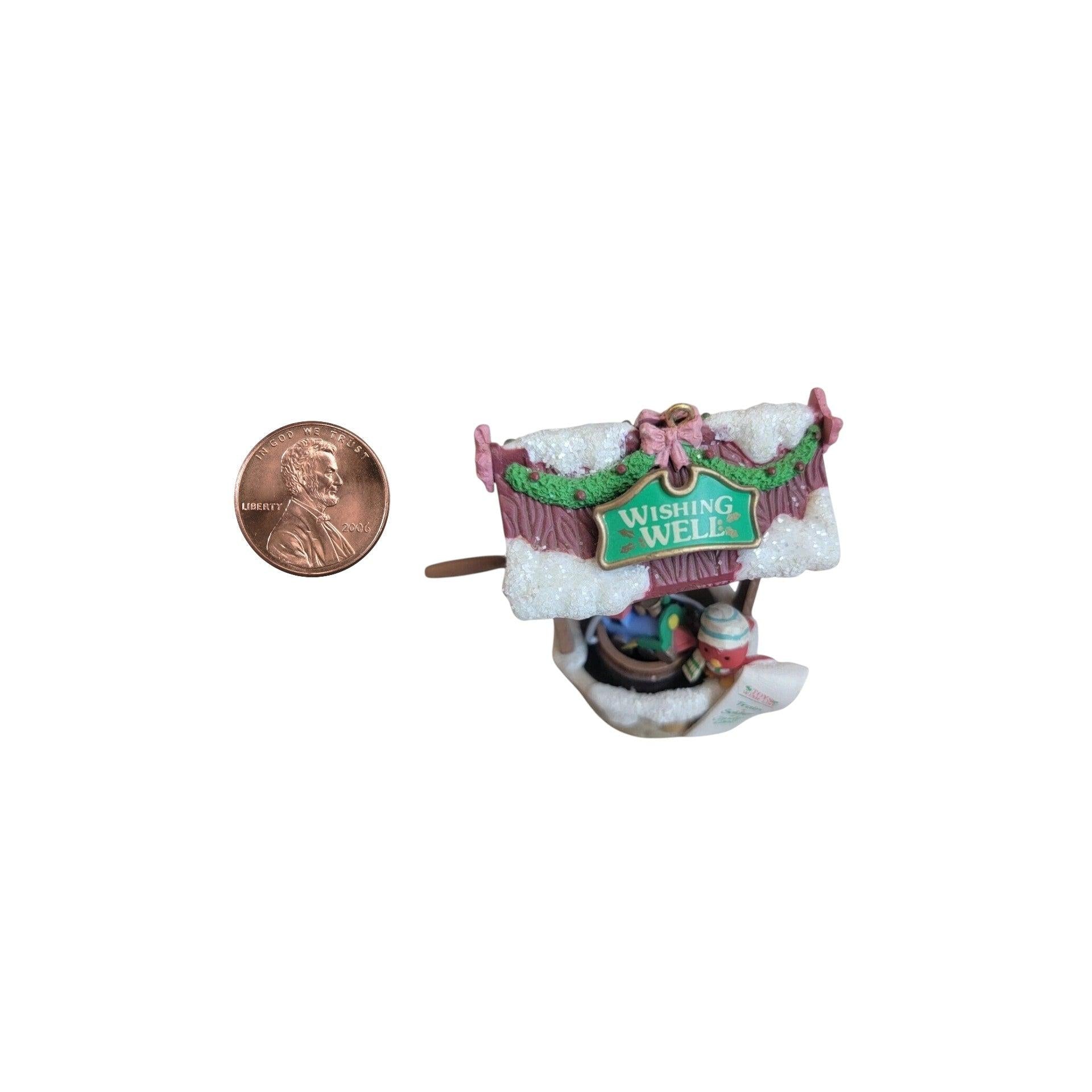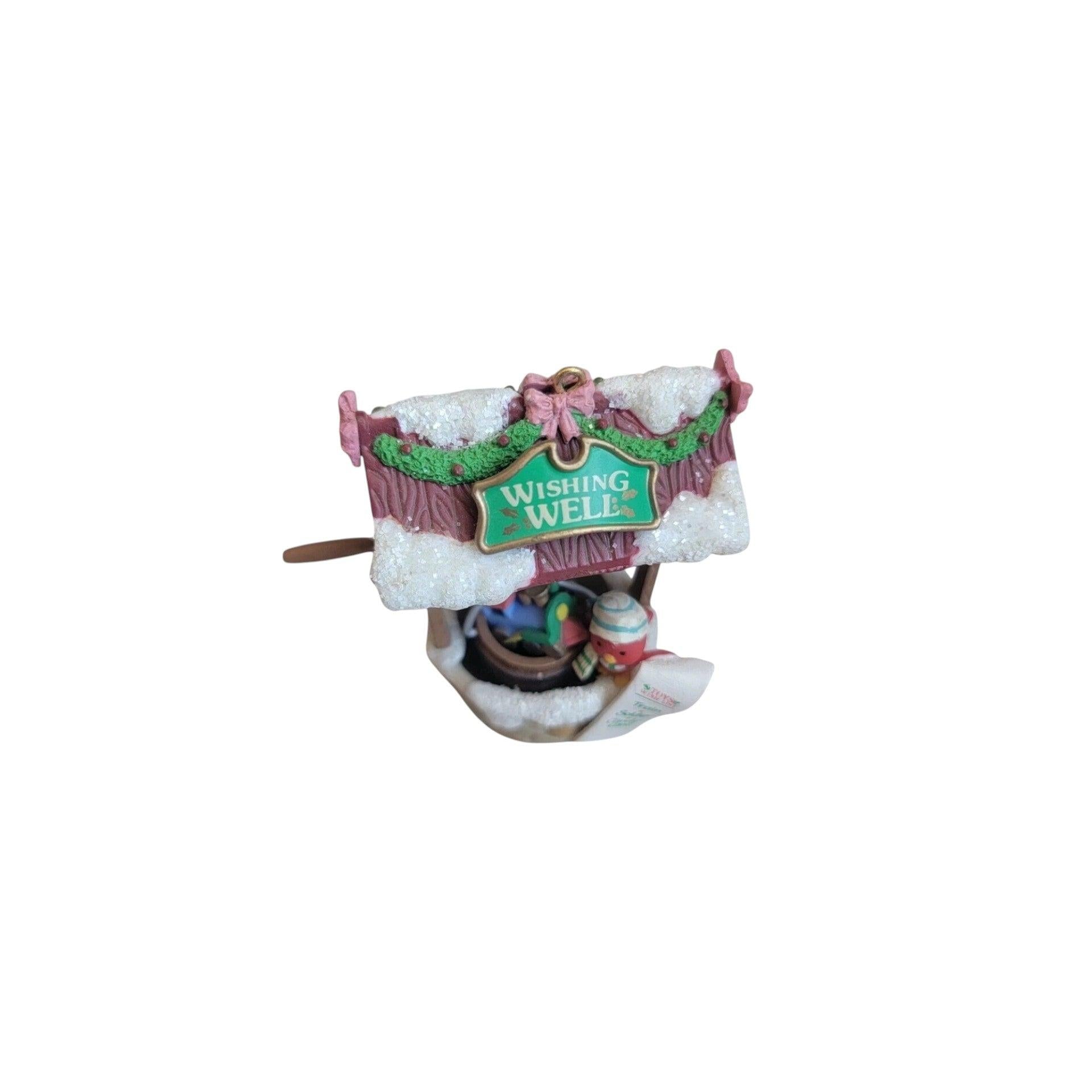 Send warm holiday wishes with the 1994 Enesco “Wishing You Well at Christmas” ornament. This charming collectible features an adorable bird perched on a festive wishing well decorated with holly, ribbon, and a touch of snow. Hand-painted in cheerful reds, greens, and winter whites, it captures Enesco’s signature balance of whimsy and warmth. A perfect piece for bird lovers and vintage Enesco collectors, this ornament embodies the heartfelt sentiment and nostalgic artistry of Christmas.