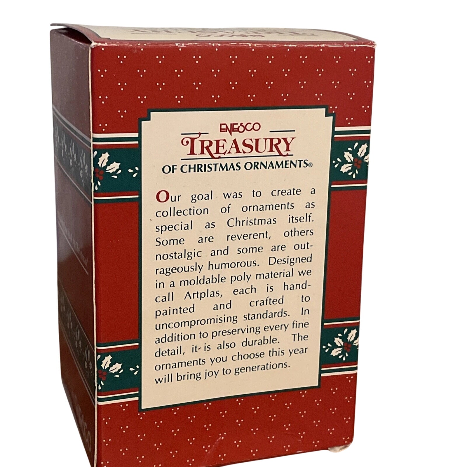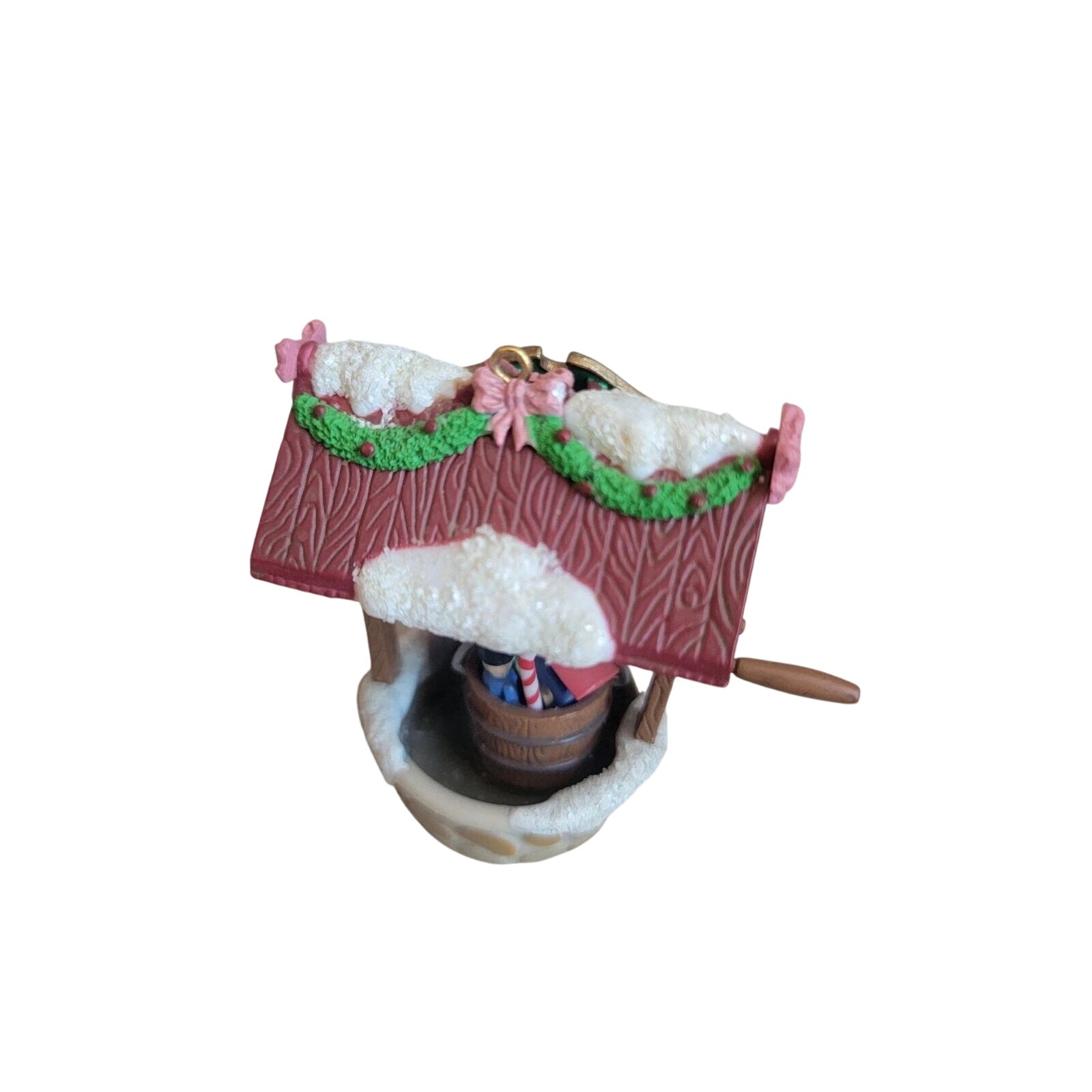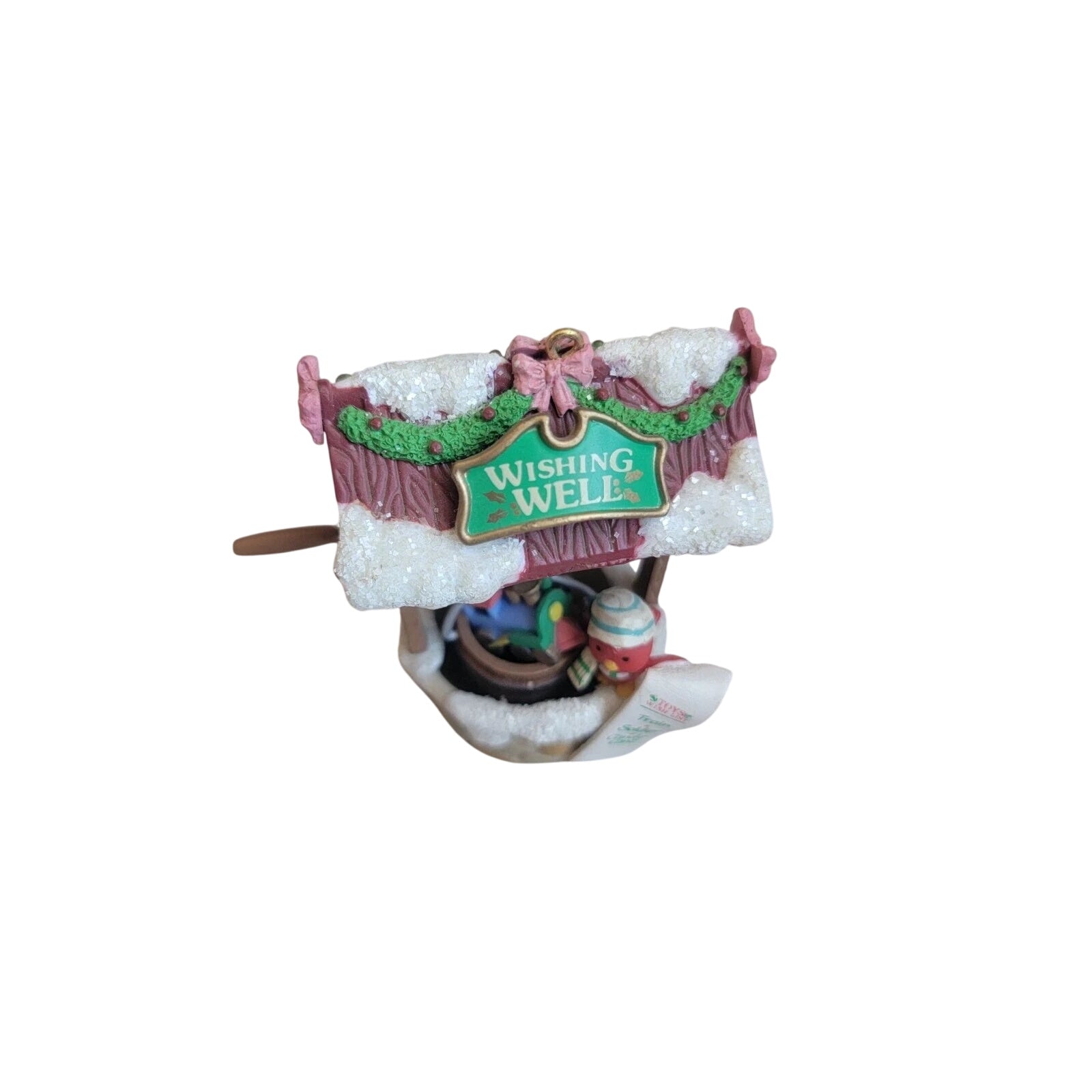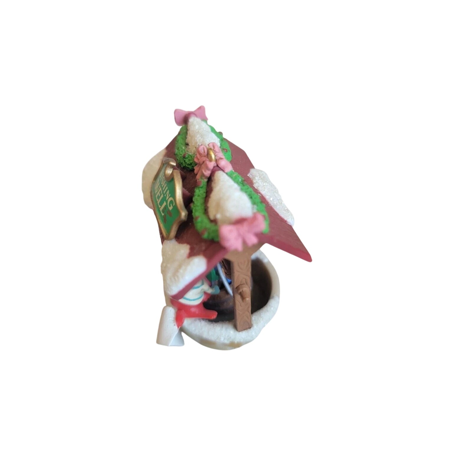 Send warm holiday wishes with the 1994 Enesco “Wishing You Well at Christmas” ornament. This charming collectible features an adorable bird perched on a festive wishing well decorated with holly, ribbon, and a touch of snow. Hand-painted in cheerful reds, greens, and winter whites, it captures Enesco’s signature balance of whimsy and warmth. A perfect piece for bird lovers and vintage Enesco collectors, this ornament embodies the heartfelt sentiment and nostalgic artistry of Christmas.