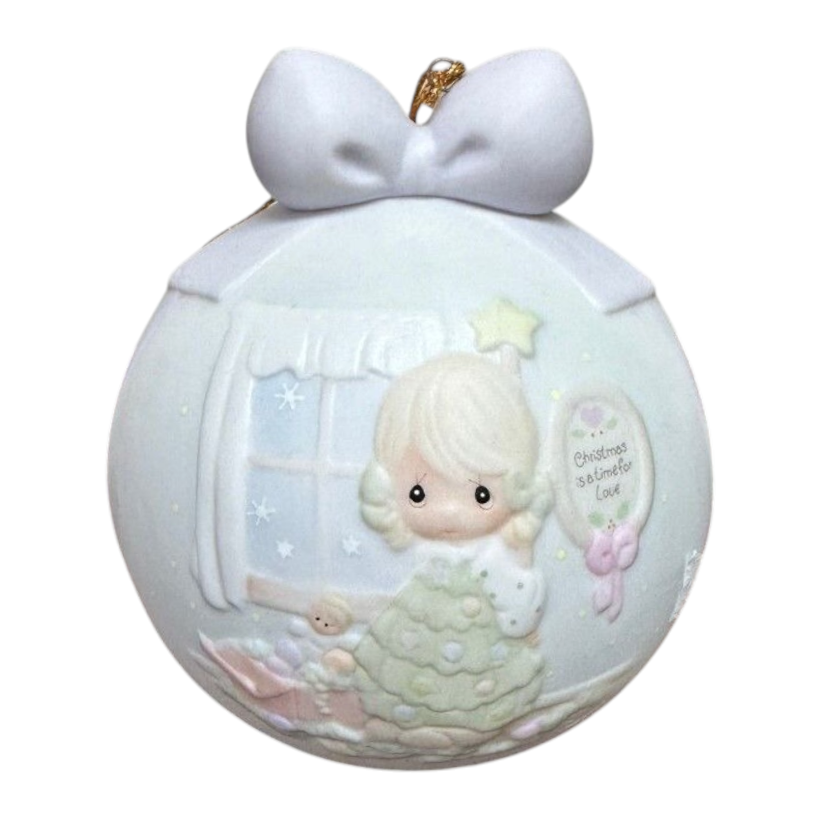 This enchanting porcelain ornament captures a delicate Precious Moments child draped in Christmas-tree décor, radiating sweet holiday charm and vintage appeal. The design features pastel tones, classic Precious Moments styling (wide-eyed, tender expression), and fine detailing in the tree garland, star topper and holly accents — embodying both elegance and festive cheer. Released in 1994, this dated annual piece holds collectible value for fans of Precious Moments and those building a nostalgic ornament collection. Whether displayed on the tree, shelf or as part of a collector case, it’s a graceful keepsake ideal for gifting or personal display.