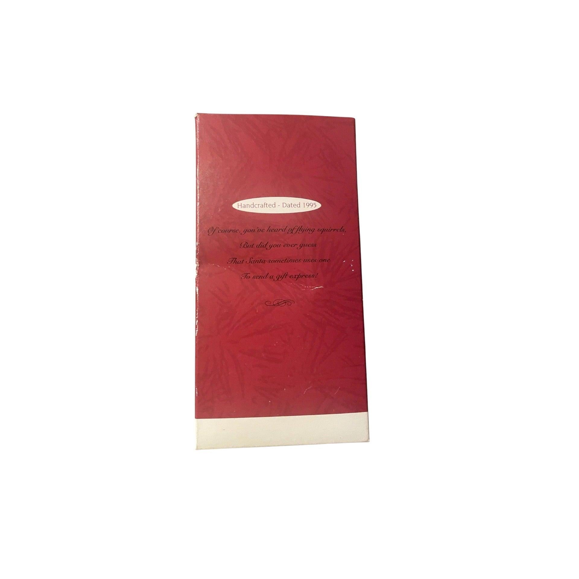 Take flight into festive nostalgia with this 1995 Hallmark Keepsake ornament featuring a daring flying squirrel carrying the mail in full “Air Express” service. The design showcases a squirrel in mid-soar, wearing a bright blue pilot’s cap and red cape, clutching a mail bag labeled “Air Express” and filled with tiny white envelopes. The ornament comes in its original Hallmark box (box condition may vary) and includes the Hallmark tag. No batteries, cords, or lights are required—this piece is purely decorative and ready to hang.