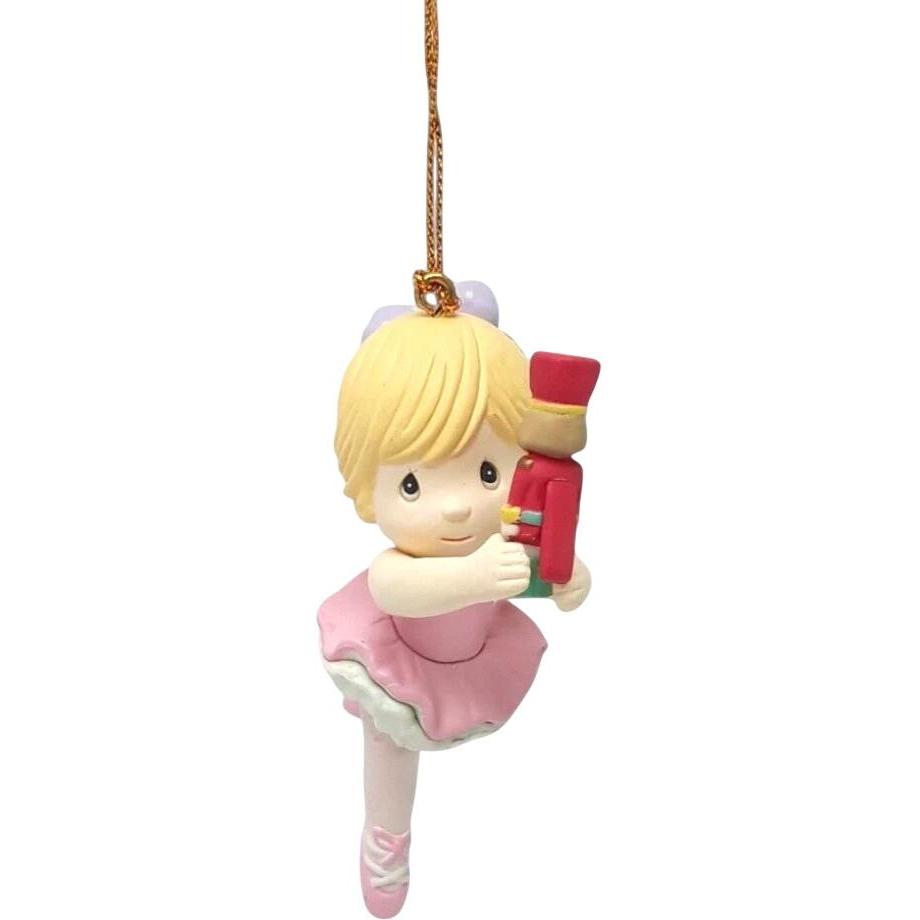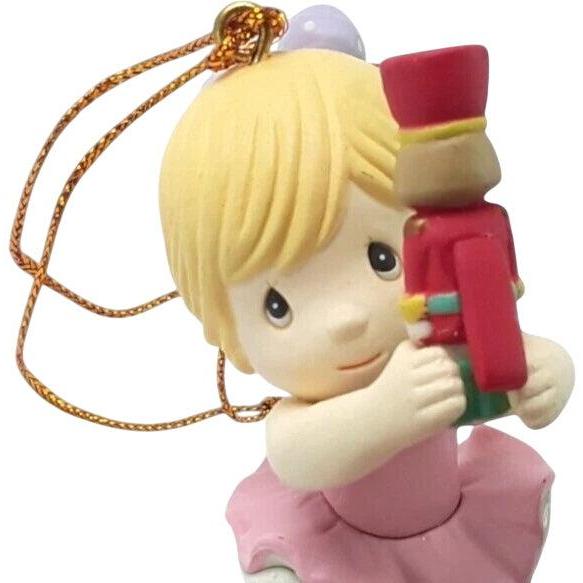 This 1995 piece, “I’m In A Spin Over You”, from Enesco’s Holiday Expressions line is beautifully crafted in the signature Precious Moments style, featuring a graceful ballerina figure in mid-twirl holding a Nutcracker, capturing tender holiday romance and whimsical movement. Hand-painted details in soft pastel hues combined with elegant molding imbue the ornament with charm, while the Precious Moments character styling adds emotional appeal for collectors. The piece appeals to both lovers of dance-themed decor and vintage Christmas collectibles, offering sentimental value and craft quality. Its playful title and unique motif (ballerina + Nutcracker) make it a standout in any holiday display or collection.
