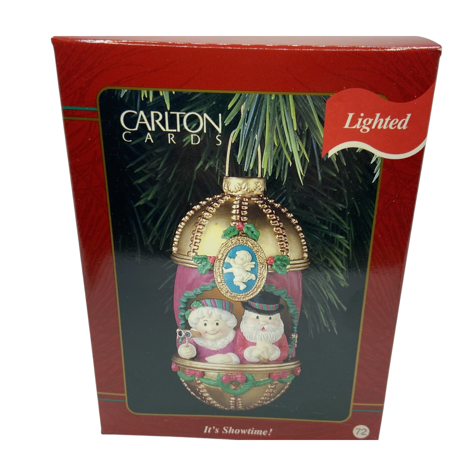 This festive 1995 Heirloom-series ornament from Carlton Cards features Mrs. Claus all dressed up for the spotlight, standing on a theatre stage motif complete with curtain accents and holiday flourishes. Crafted in durable resin/plastic with rich colour detail and a collector-friendly hanging loop, the piece brings a theatrical, joyful flair to your holiday décor. Ideal for vintage ornament collectors, anyone who loves stage-themed décor or Mrs. Claus collectibles.