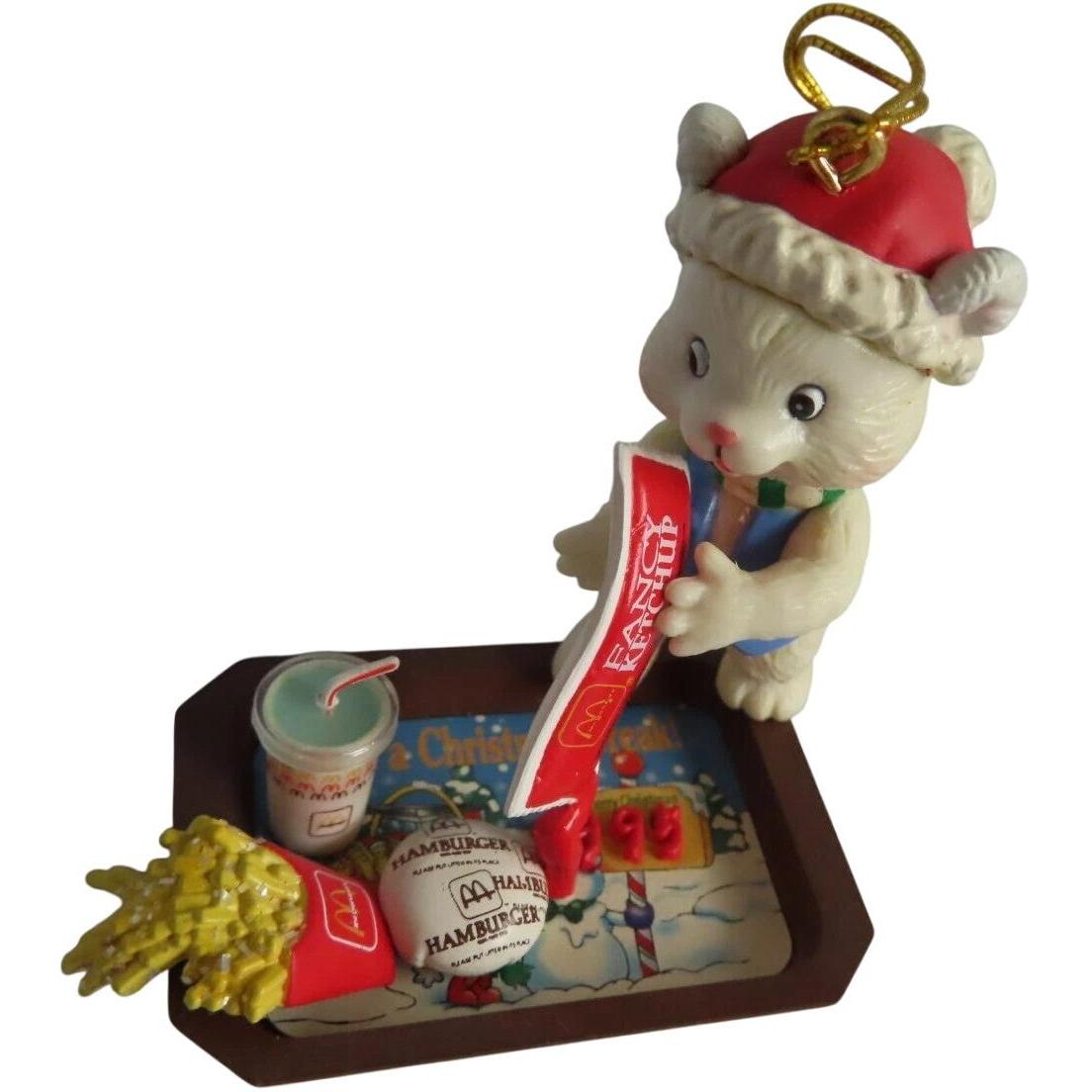 This 1995 Merry McMeal ornament celebrates the beloved McDonald’s holiday nostalgia with a cheerful fast-food themed design—featuring the McDonald’s logo, festive colours and holiday cheer in a playful miniature form. The hand-painted piece is crafted in durable ArtPlas resin, capturing fine detail such as the tray, “1995” year-mark, and McMeal branding to appeal to collectors of advertising memorabilia. As the sixth and final release in Enesco’s McDonald’s dated ornament series, it holds particular appeal for both ornament collectors and brand-enthusiasts alike. With its unique crossover of holiday décor and iconic fast-food branding, it stands out as a quirky, collectible piece that adds character to any display.
