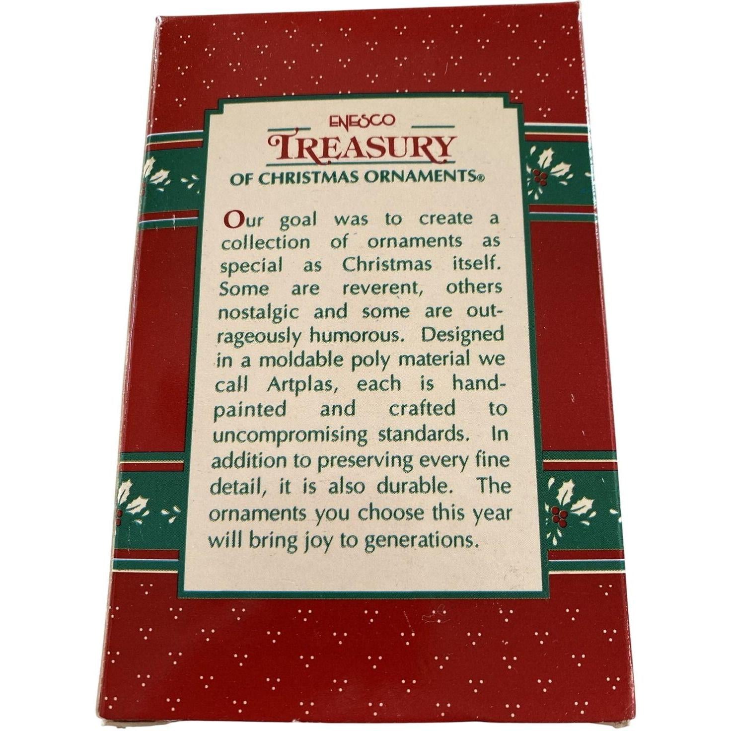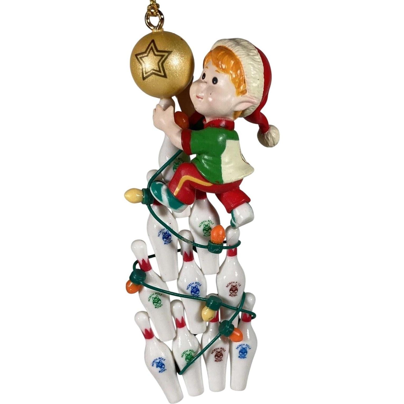 Add a playful spin to your holiday décor with this 1995 Enesco “No Time to Spare at Christmas” ornament. Featuring a festive elf styled as a bowling pin—complete with holiday colors, hand-painted detail and humorous flair—this piece is part of Enesco’s seasonal novelty line. It’s ideally suited for those who love themed décor (especially bowling or sports fans) and collectors of whimsical Christmas ornaments. The lightweight molded plastic construction with intricate detailing gives it both display value and holiday fun.