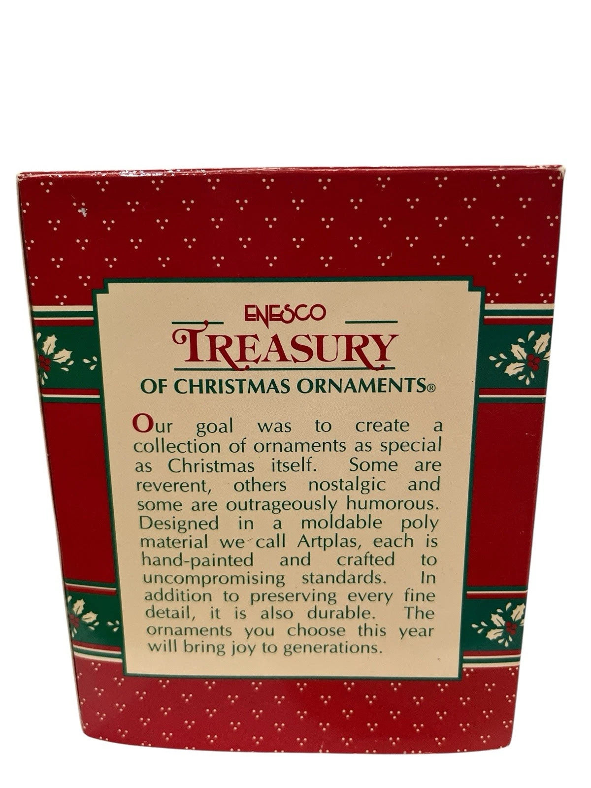 Take flight into festive fun with the 1995 Enesco “Planely Delicious” ornament! This whimsical collectible features Santa Claus piloting a red holiday airplane decorated with candy canes and sweet treats, ready to deliver Christmas cheer across the skies. Hand-painted in vivid holiday colors, this playful piece perfectly captures Enesco’s humor and imaginative craftsmanship. A delightful addition for aviation enthusiasts, Santa collectors, or lovers of vintage ornaments, “Planely Delicious” soars high with charm and Christmas spirit.