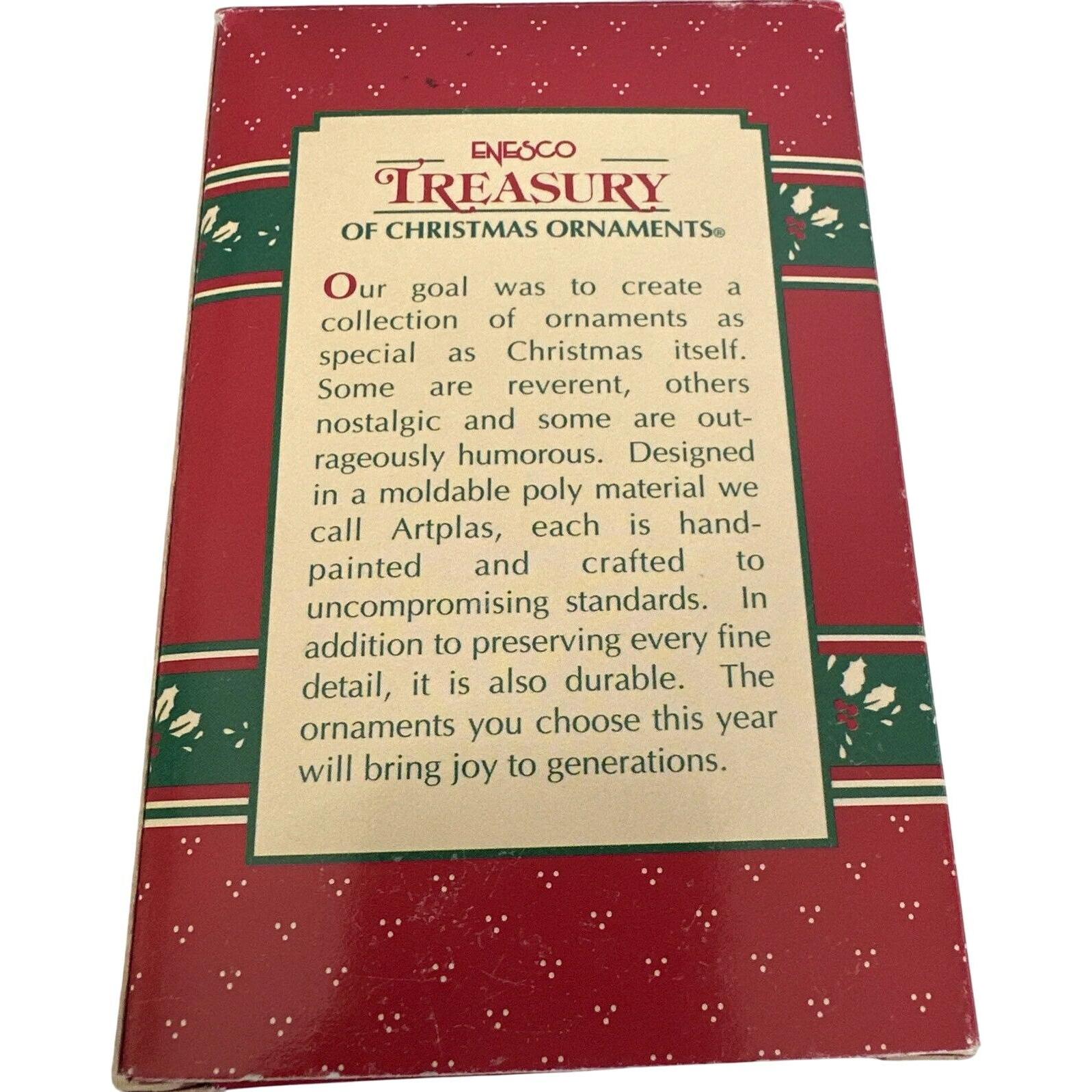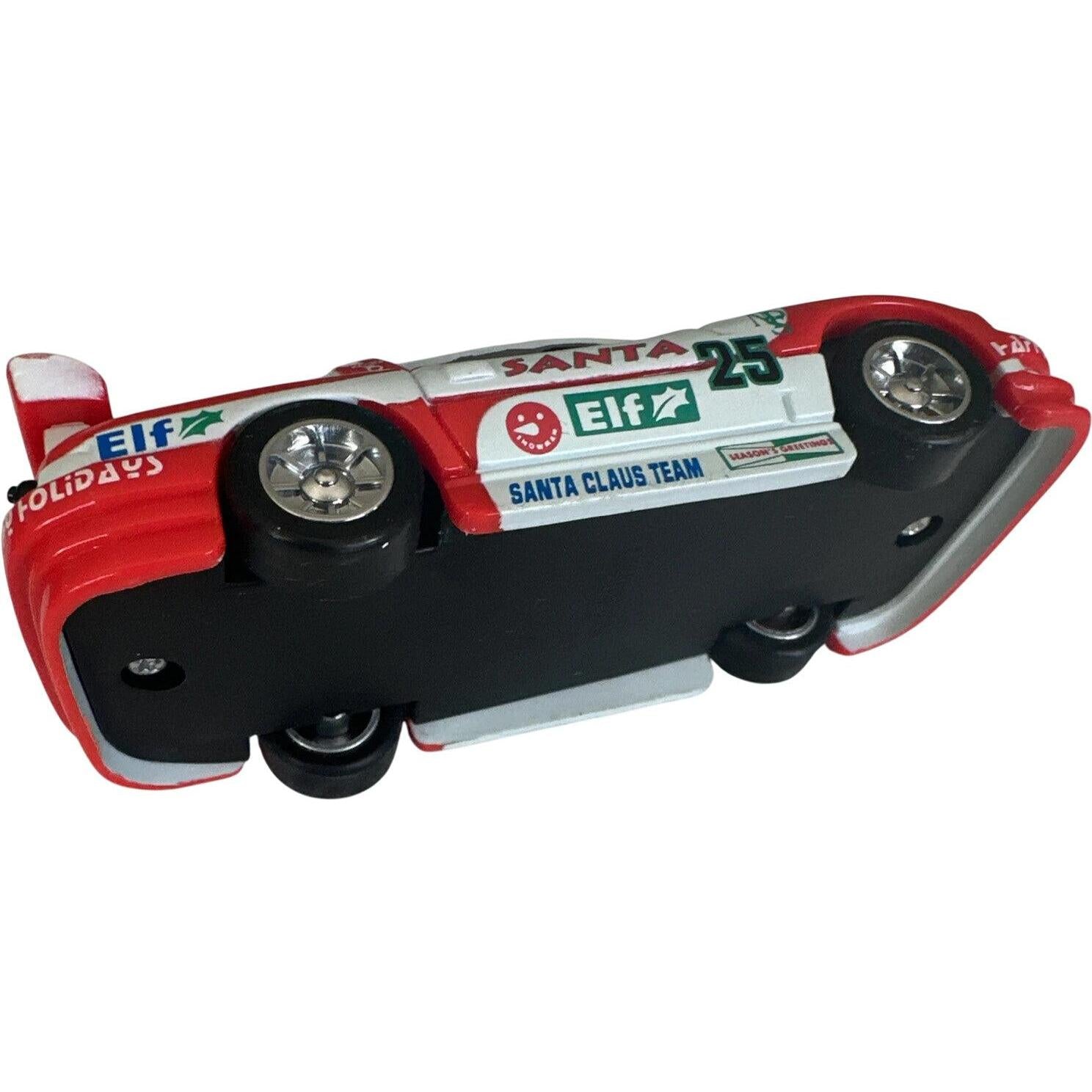 Get ready to rev up the holiday spirit with the 1995 Enesco “Santa’s Speedway” ornament! This lively collectible features Santa Claus racing down the track in a festive red car decorated with holly, gifts, and Christmas lights. With a joyful grin and his beard blowing in the wind, Santa proves he’s fast when it comes to spreading cheer! Hand-painted with Enesco’s signature attention to color and detail, this whimsical piece combines the excitement of racing with classic holiday fun — perfect for collectors, car lovers, and Santa fans alike.