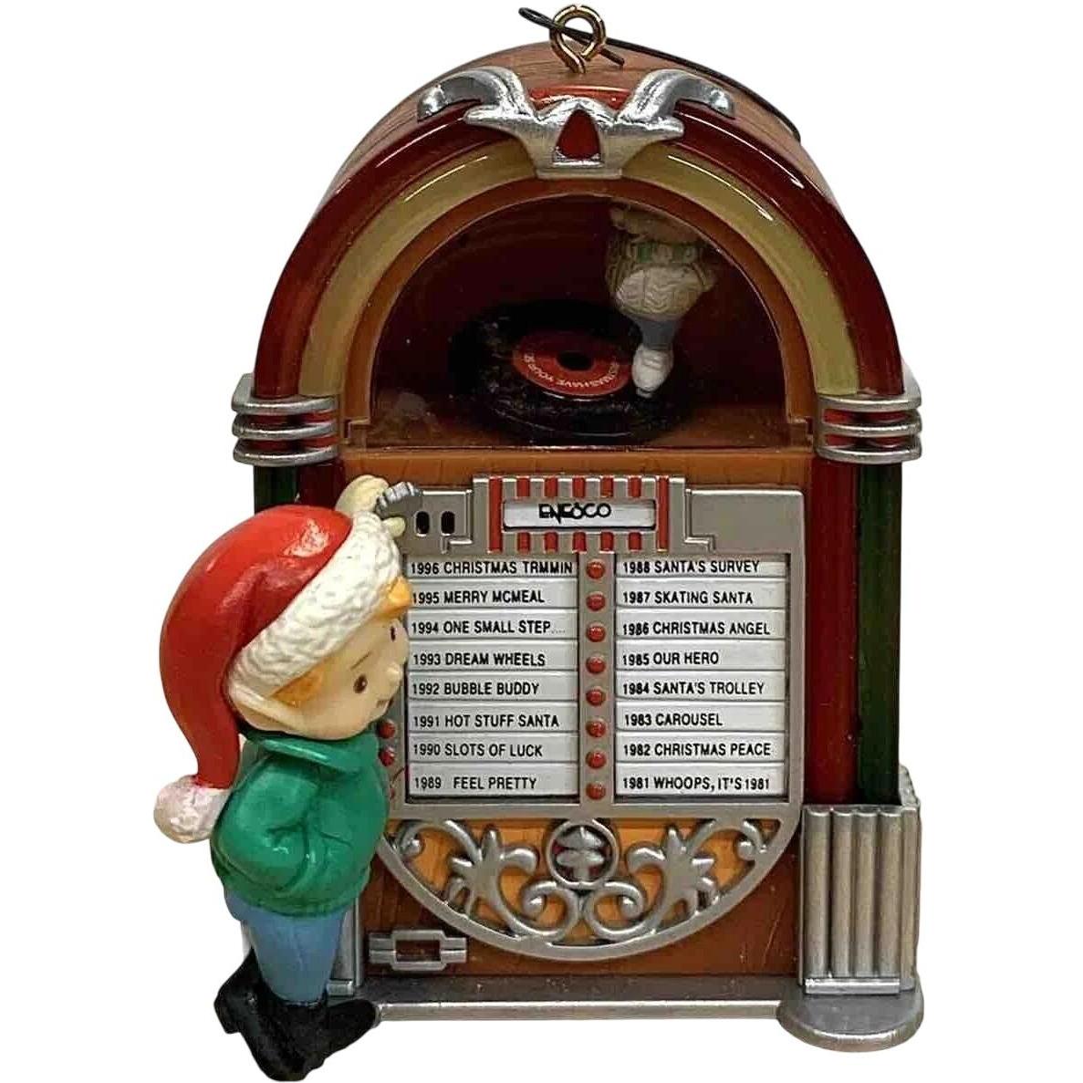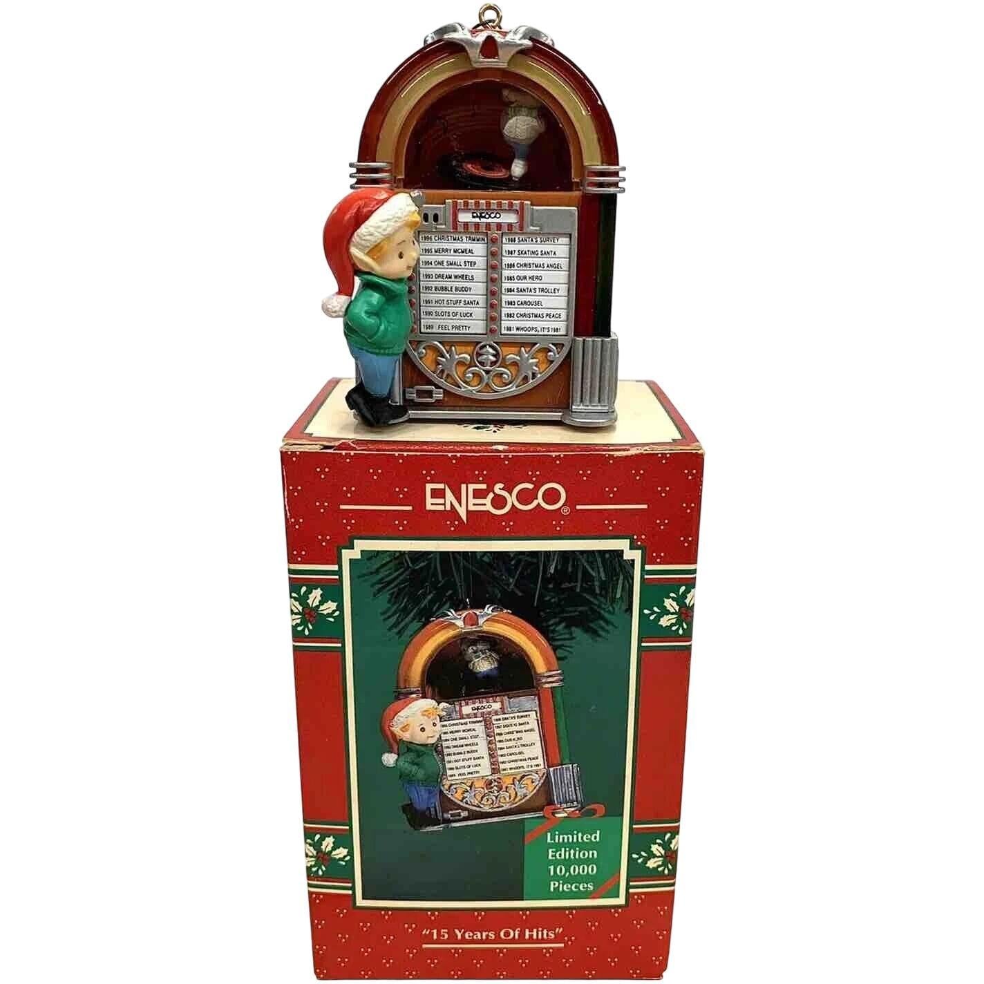 Celebrate 15 years of joyful design with this collectible 1996 ornament from Enesco, crafted by artist Karen Hahn. The set features a colorful vintage jukebox alongside a dancing figure—rendered in finely sculpted molded plastic (ArtPlas style) and hand-painted with multicolor finish. As part of Enesco’s “Treasury of Christmas” line, and marked as a limited edition of 10,000 pieces, this piece brings together music-themed vintage charm, collectible value, and holiday spirit. Ideal for music-lovers, ornament collectors, or those seeking a standout conversation piece for their tree or display.