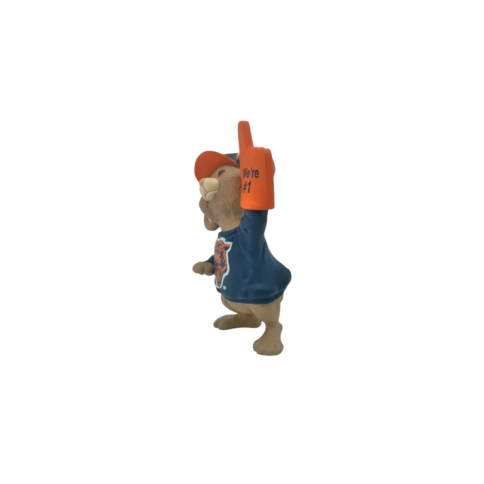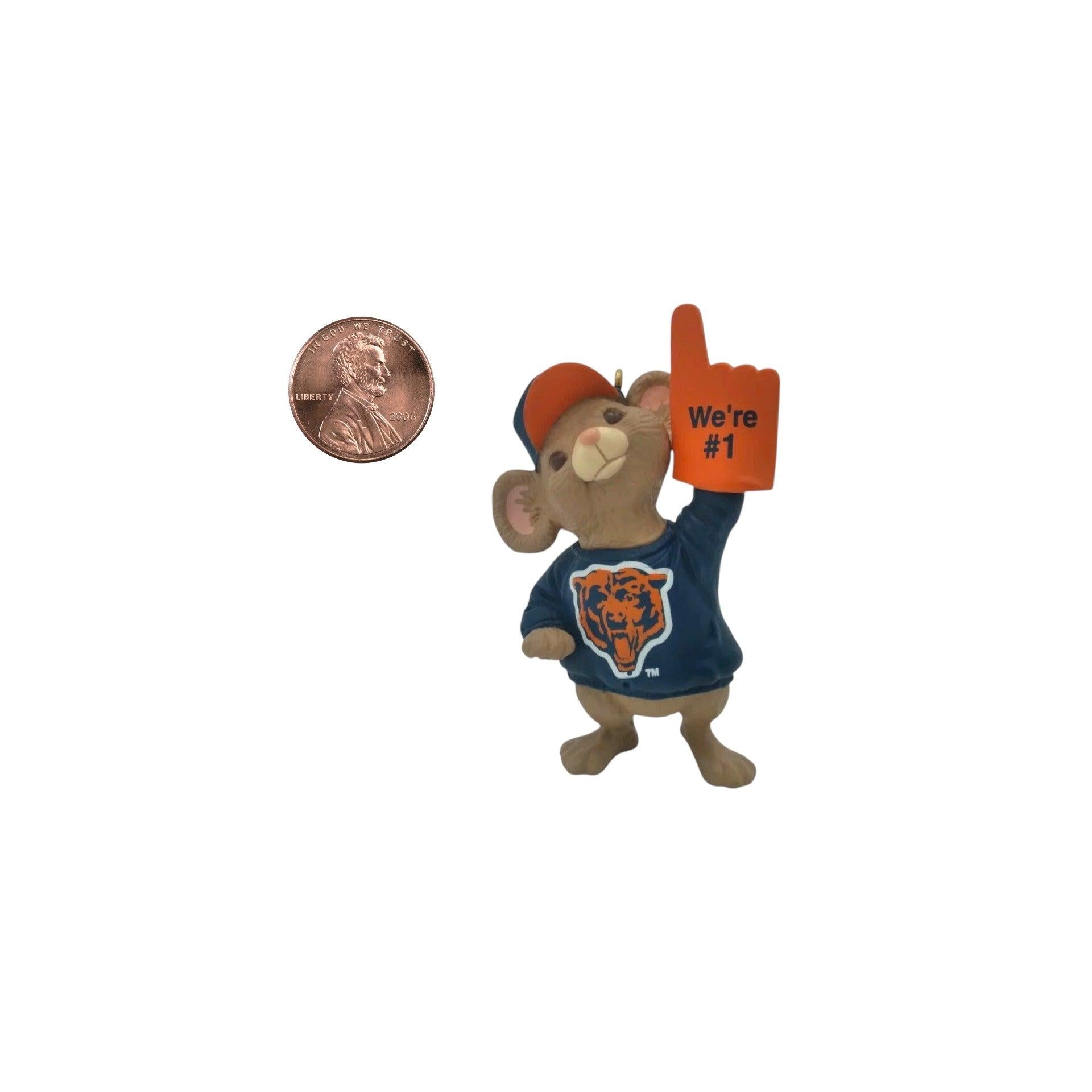 Celebrate your Chicago Bears pride with this charming 1996 Hallmark ornament. Featuring a mouse dressed in a Chicago Bears jersey and cap, holding a foam "#1" hand, this collectible captures the spirit of a dedicated fan. Perfect for adding a touch of team spirit to your holiday decor.