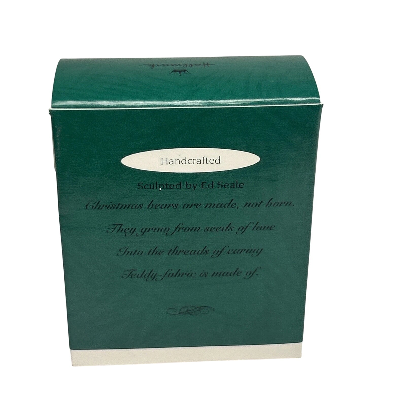 This 1996 miniature keepsake ornament from Hallmark features a teddy bear motif crafted in a charming holiday design. The little bear is depicted clinging to a candy-cane-style accent, in traditional Christmas red and white tones, embodying the festive spirit of the season. Created as part of the miniature series, this compact piece offers both display versatility and collector appeal thanks to its understated size and nostalgic styling. Whether added to a fine ornament collection or hung on a holiday tree where space is limited, it brings a subtle nod to vintage 1990s holiday décor.