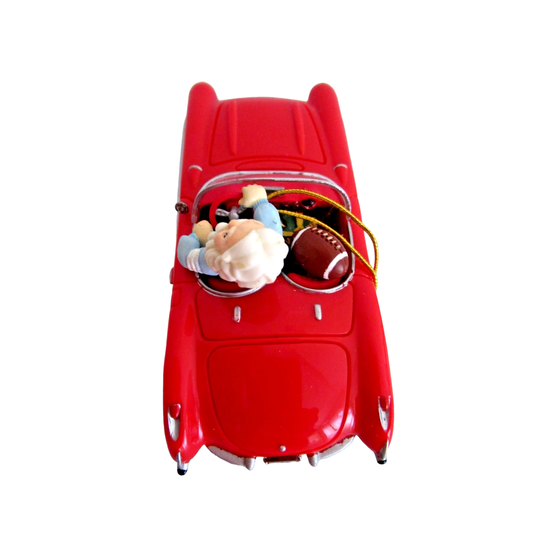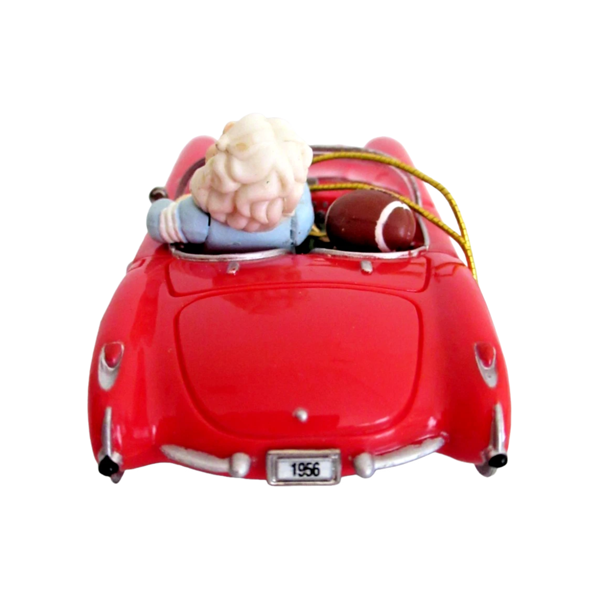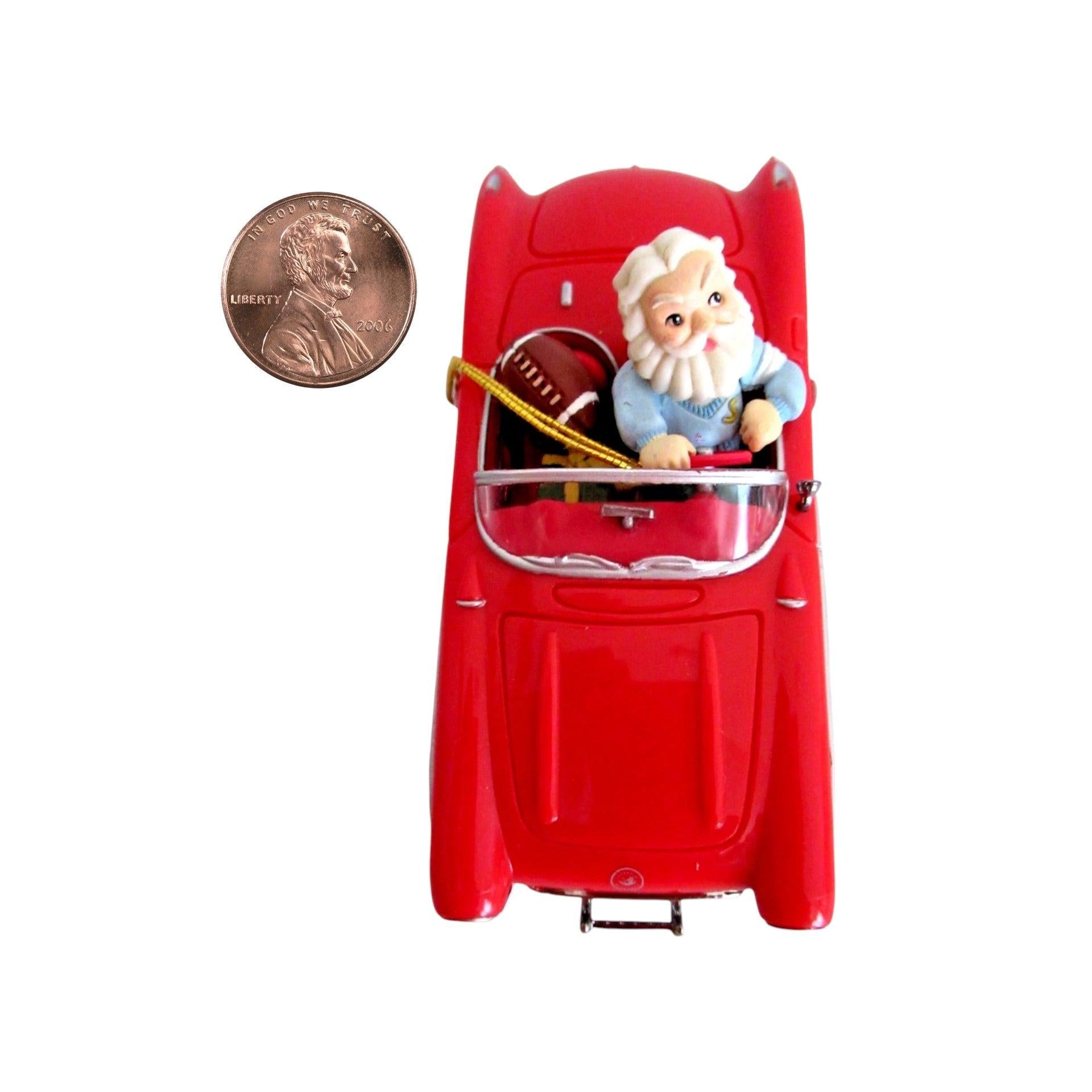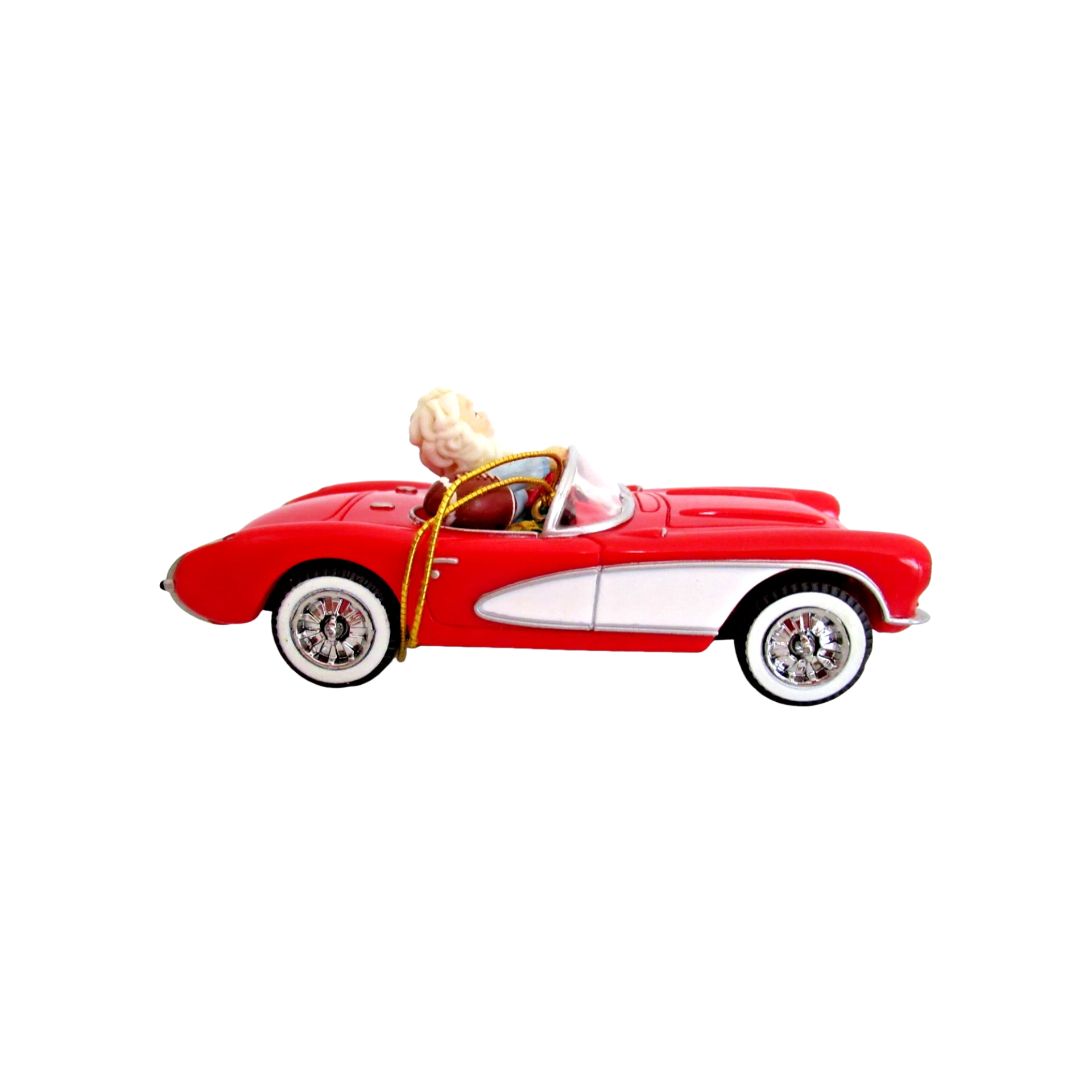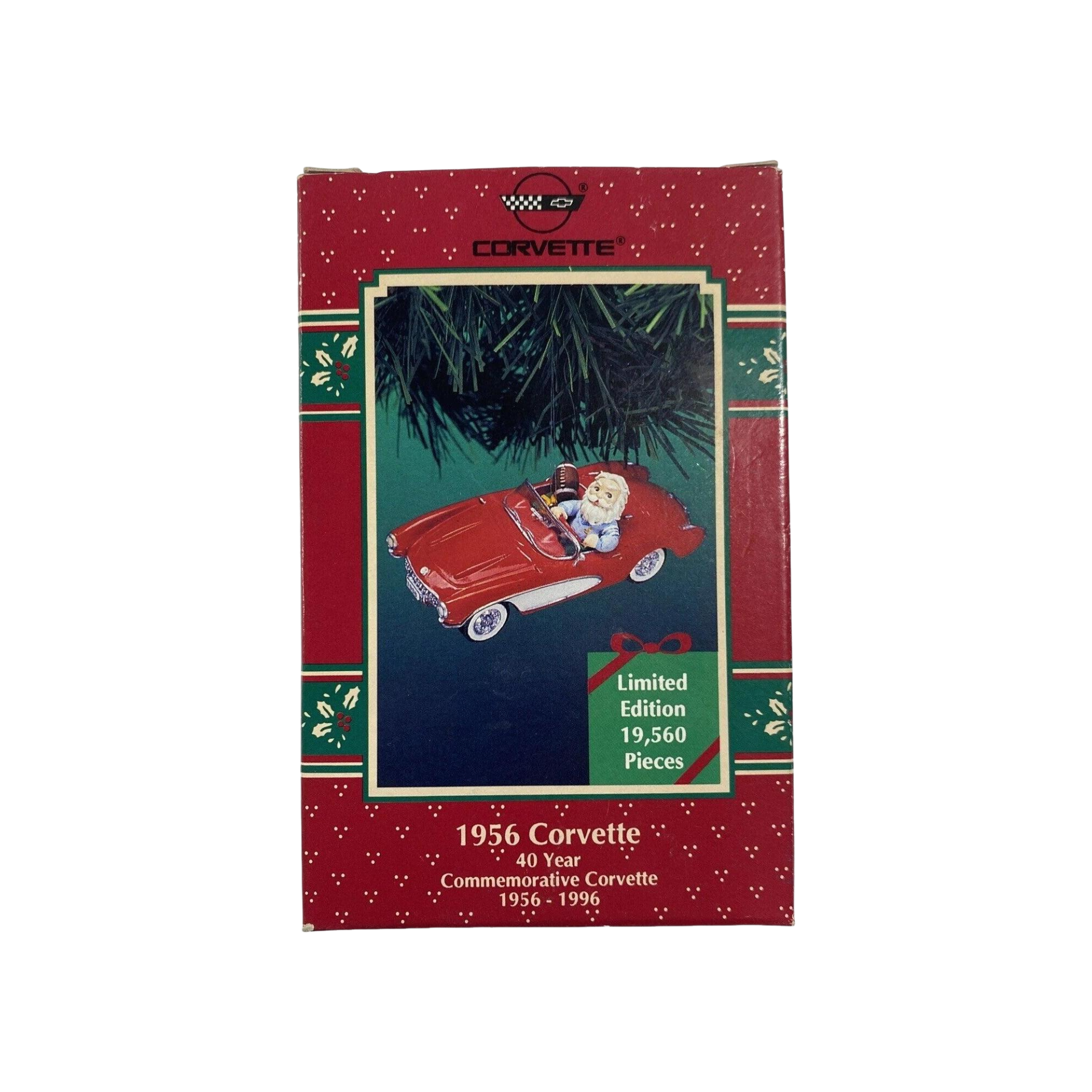 Celebrate one of America’s most iconic automobiles with this limited-edition 1996 Enesco ornament, commemorating the 40th anniversary of the 1956 Corvette (1956 – 1996). The design features Santa Claus at the wheel of a sleek red 1956 Corvette, set in a polished and festive moulded plastic finish with vibrant holiday detailing. This piece blends classic car nostalgia, Santa-theme charm and collectible craftsmanship—making it an excellent addition for car enthusiasts, Corvette collectors and holiday décor lovers alike.