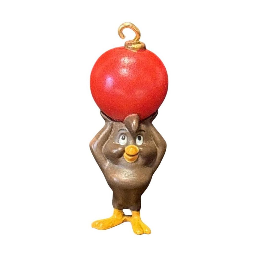 Capturing classic cartoon charm, this 1996 Hallmark Keepsake pair features Foghorn Leghorn wearing a festive wreath around his neck and playing with a green ornament, while the pint-sized Henery Hawk perches nearby with a bright red bauble of his own. Crafted as a dynamic duo, this ornament delivers heartwarming nostalgia and festive spirit—and comes ready to hang straight from the box, no batteries or cords needed.
