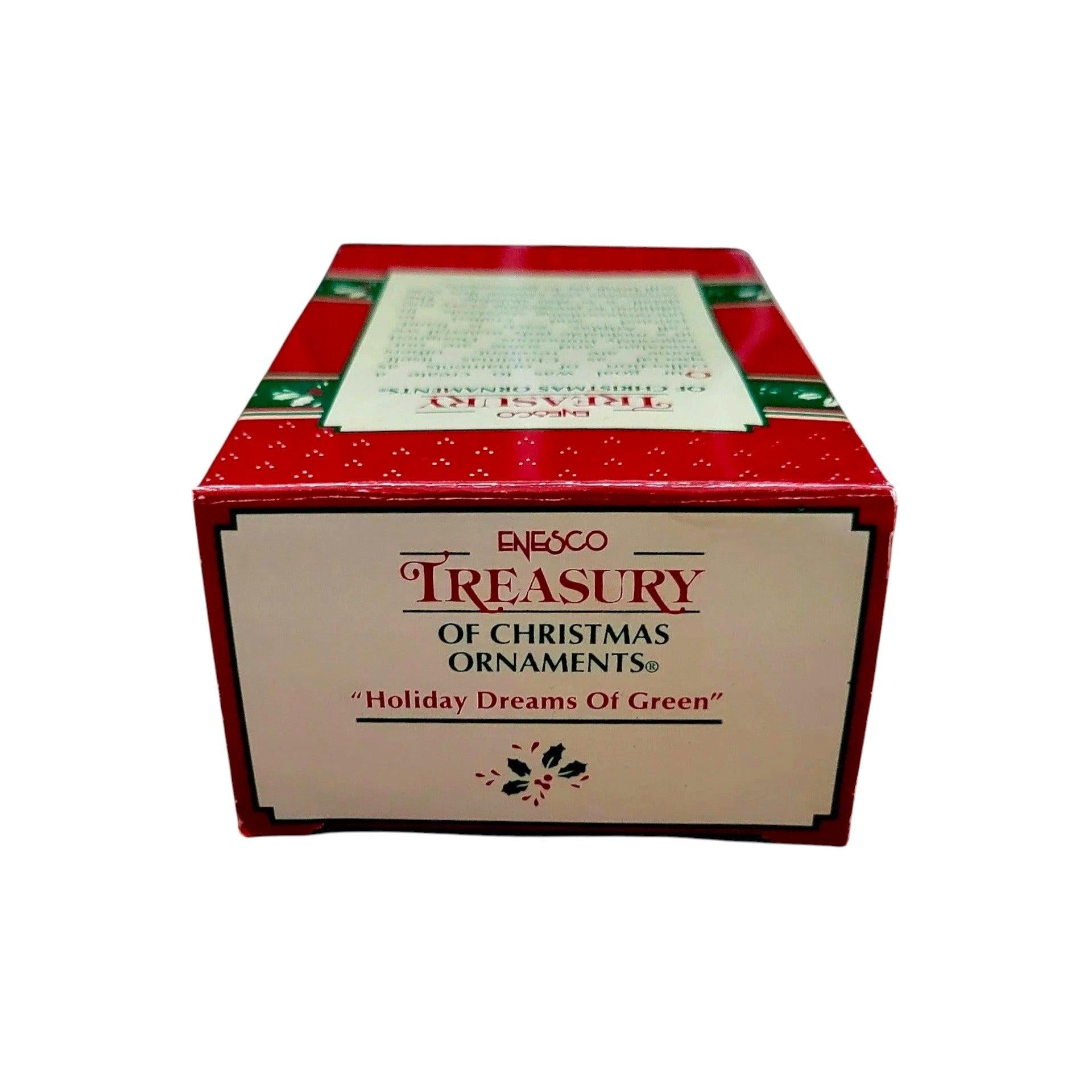 Celebrate the spirit of giving and good fortune with this whimsical 1996 Enesco ornament titled “Holiday Dreams of Green.” Featuring a cheerful elf clutching a lottery scratch-ticket against a festive backdrop, this piece blends holiday warmth with the fun of a “green” dream meaning money, luck, or a fresh start. Crafted in durable molded plastic (ArtPlas style) with rich hand-painted detail and bright holiday colours, it’s ideal for collectors seeking novelty, themed décor, or vintage holiday charm.