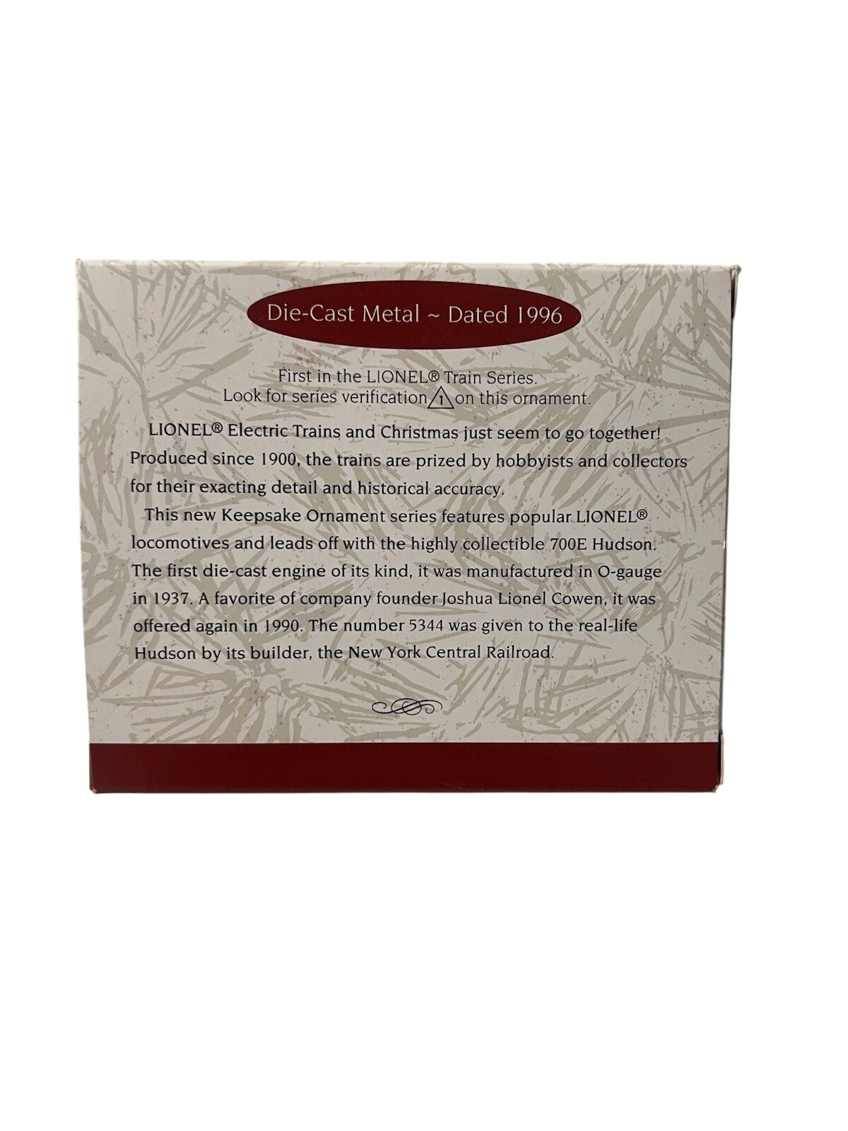 Honor the magic of classic railroading with this finely detailed miniature replica of the 700E Hudson steam locomotive—Hallmark’s inaugural piece in the Lionel Trains Keepsake series. Made from die-cast metal with meticulous craftsmanship, it measures approximately 1.25 inches high by 4 inches long. Packaged in its original box, this nostalgic piece requires no power—simply hang it on your tree to evoke the golden age of trains and miniature collectibles.
