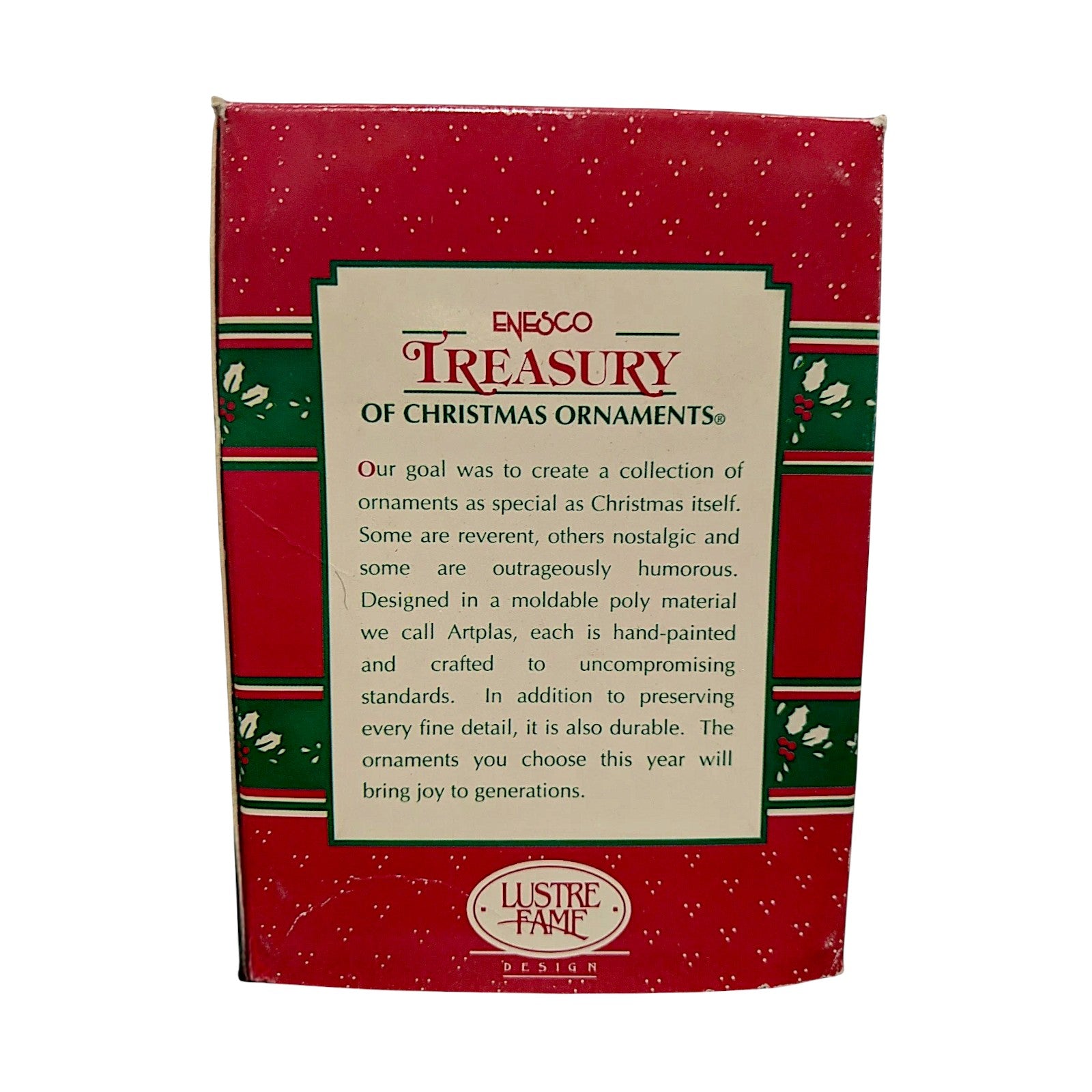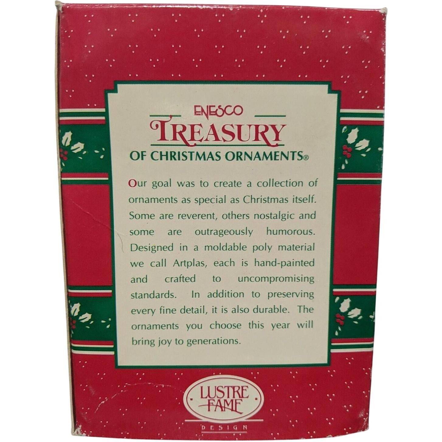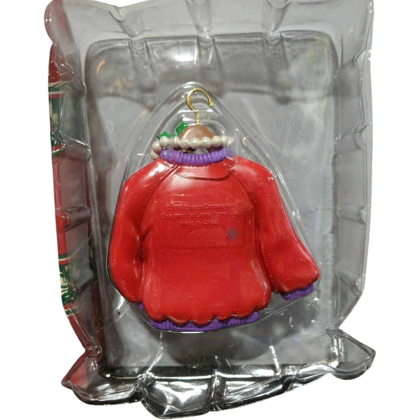 Celebrate the love of motherhood with this 1996 “I Love Mom” holiday sweater ornament from Enesco’s Treasury of Christmas collection. Shaped like a cozy holiday sweater and featuring glitter-accented lettering reading “I Love Mom,” it captures a warm, sentimental vibe perfect for honoring moms at the holidays. The hand-painted finish, textured detailing and vibrant seasonal colours make it a standout keepsake for family-oriented décor and ornament collectors alike. A charming gift or display piece that evokes nostalgia, love and festive warmth.