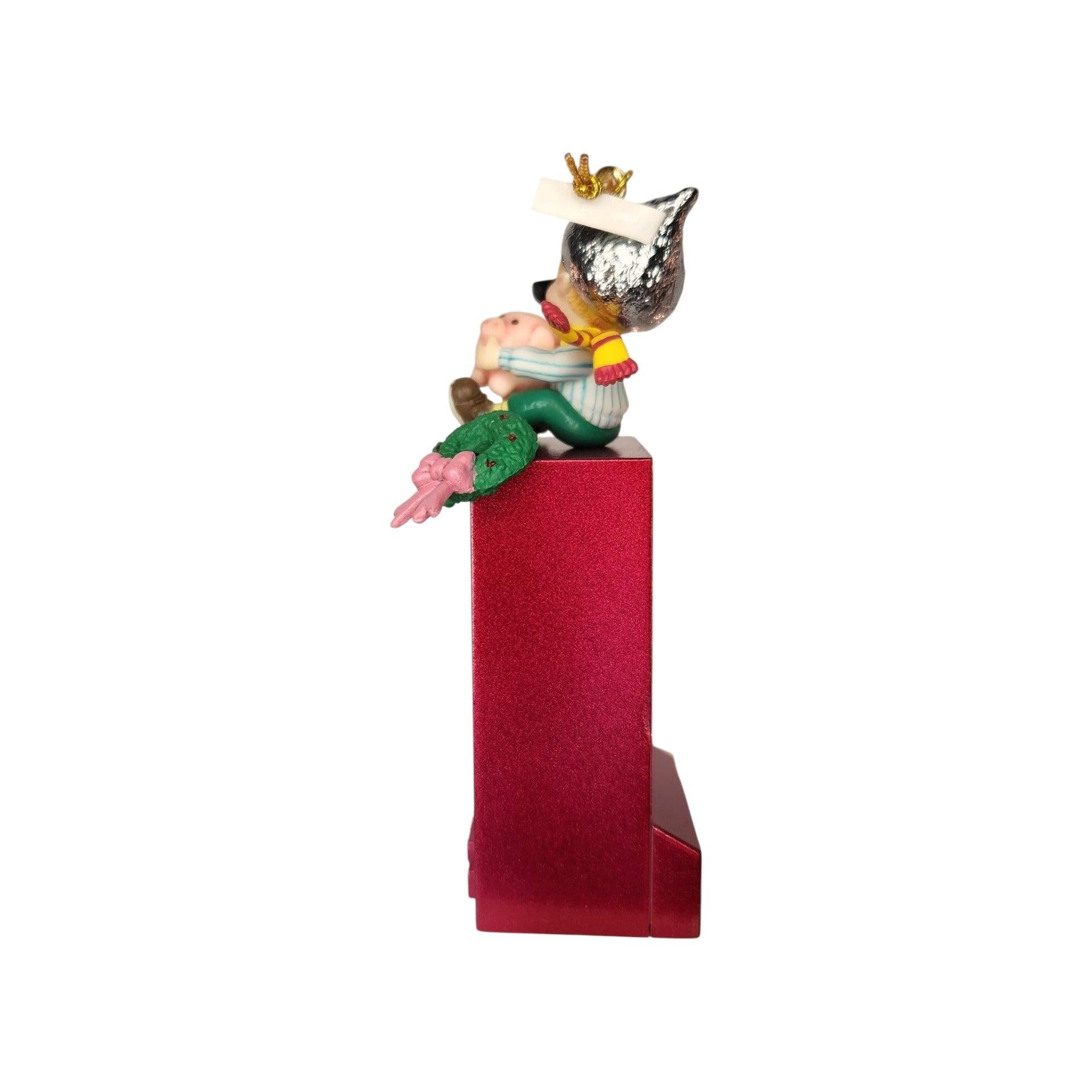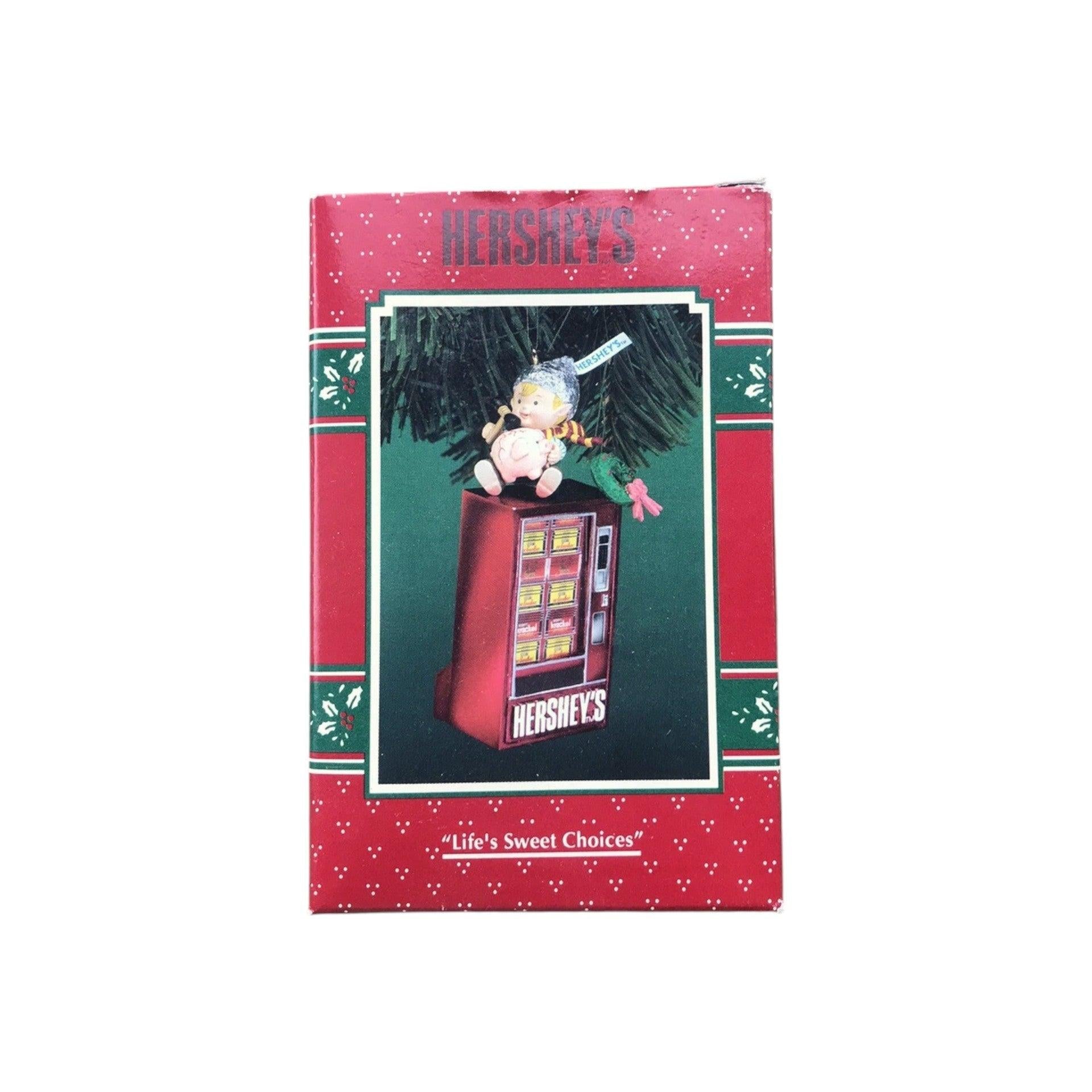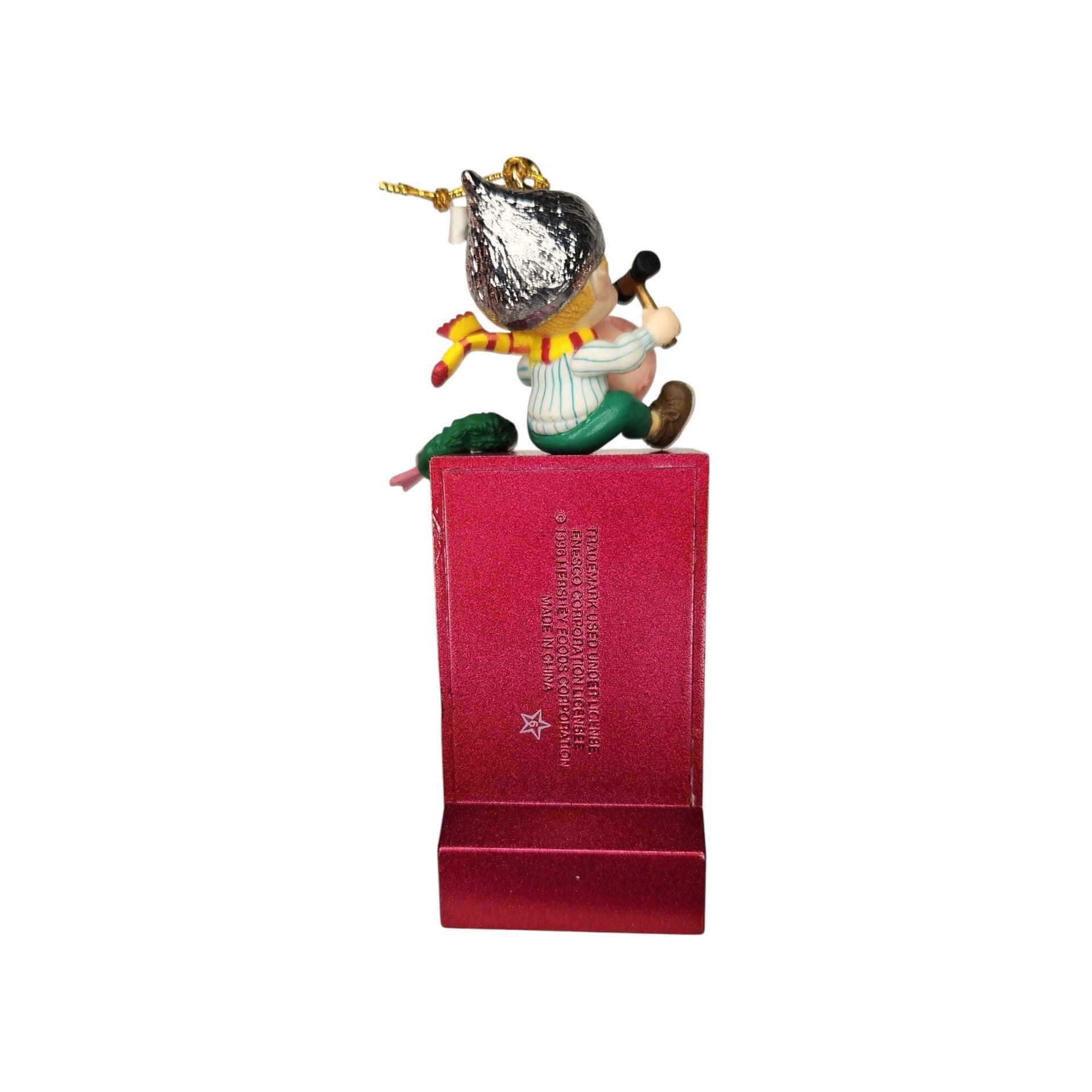 This delightful 1996 ornament from Enesco brings holiday cheer with a playful candy-brand twist. The piece features a whimsical elf operating a Hershey’s vending machine, complete with miniature candy bars and a cheerful pose—capturing the fun of seasonal indulgence. Crafted in durable molded plastic (ArtPlas-style) with hand-painted detail and vibrant holiday colours, it appeals to both ornament collectors and brand enthusiasts alike. With its licensed Hershey’s theme, nostalgic charm and collectible finish, it’s a standout piece for any holiday tree or themed display.