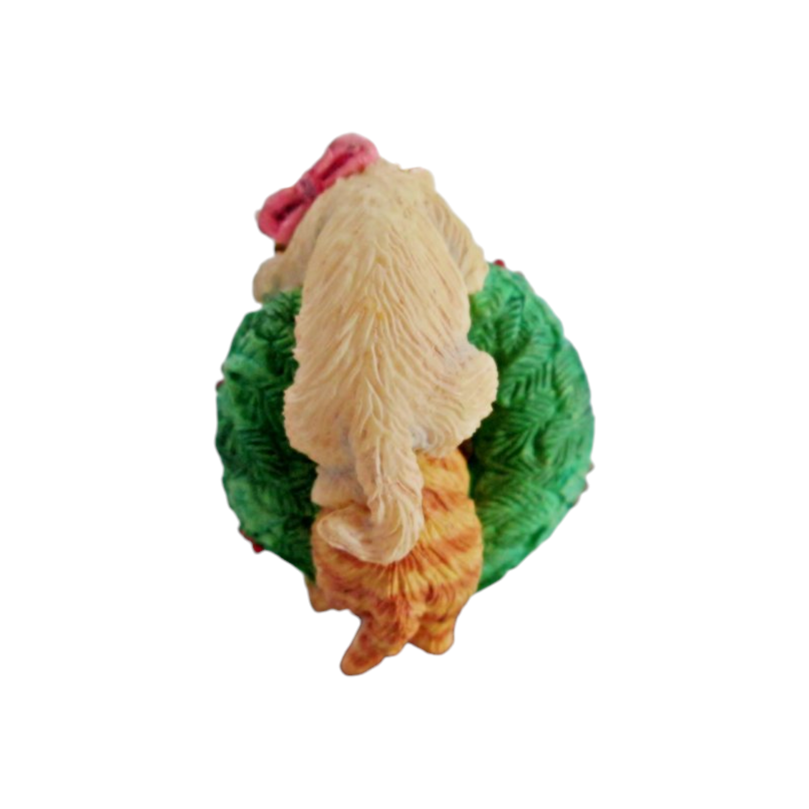 Delight in a dose of holiday mischief with the 1996 Merry Mischief‑Makers ornament by Carlton Cards, part of the beloved kittens-themed series. This playful design features Miss and Chiff—the mischievous kitten duo—nestled in a festive wreath, one peeking from behind while the other bats at ornaments. The set includes the original red Carlton Heirloom box with molded insert and hang tag.