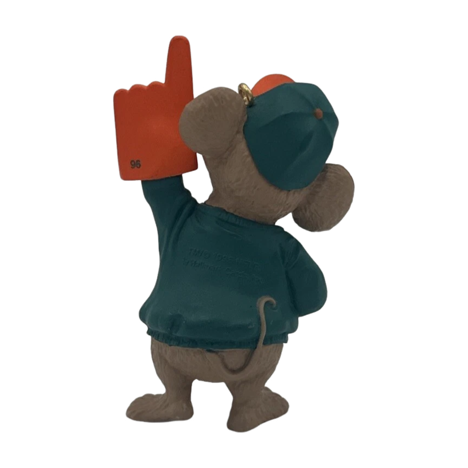 Celebrate your Dolphins fandom with this spirited 1996 ornament from Hallmark’s NFL Collection. The ornament features a little mouse dressed in full Miami Dolphins gear (jersey and hat), proudly holding a foam glove that reads “We’re #1”, showing team pride in a playful, charming way. It’s a dated 1996 piece.