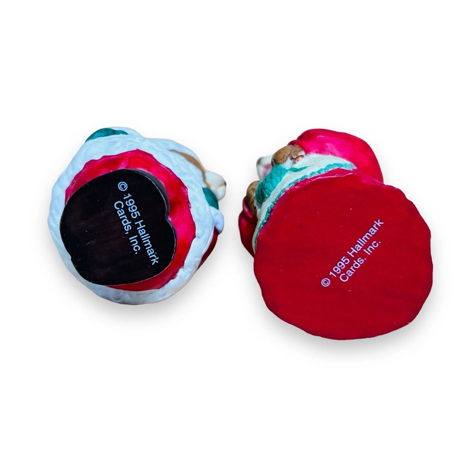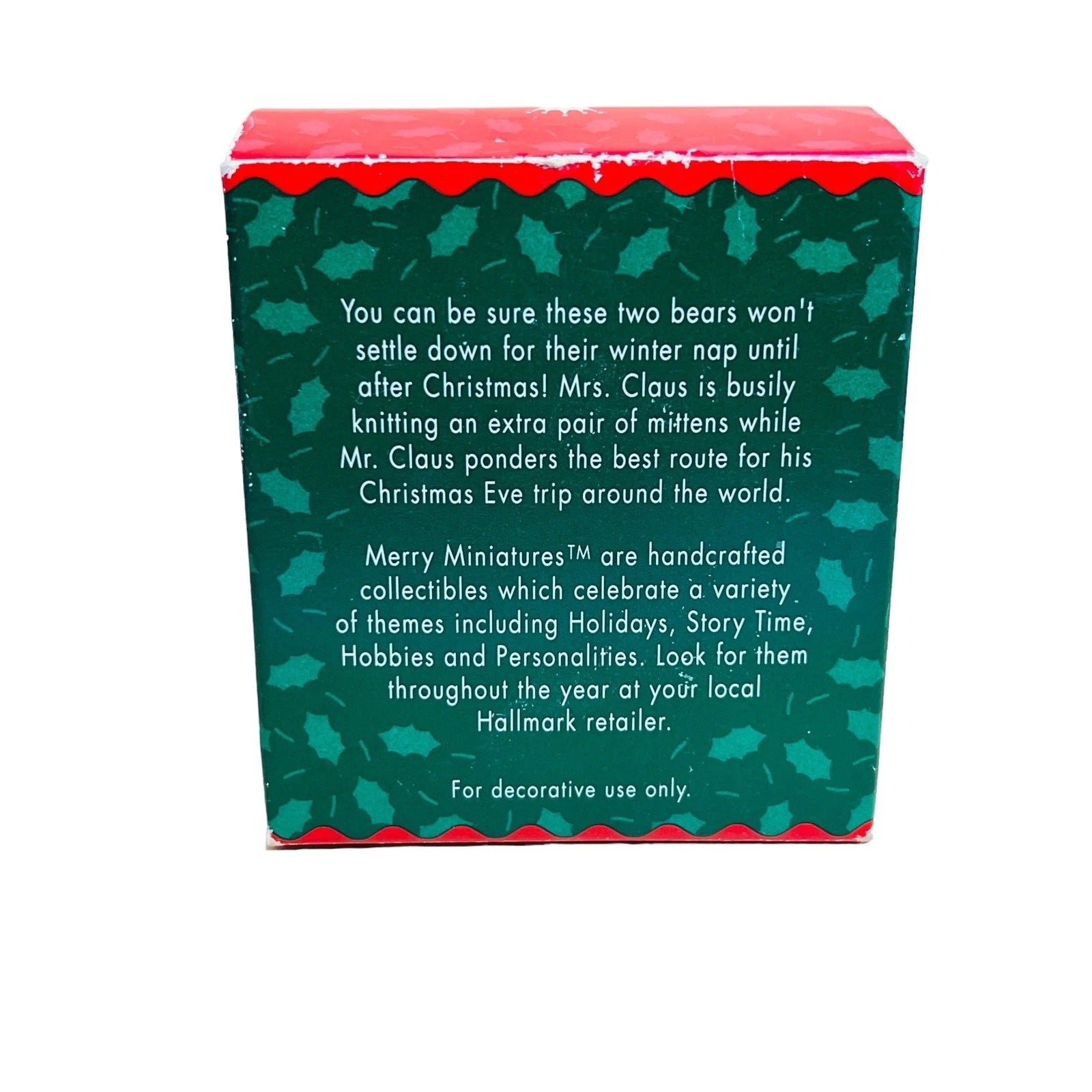 The 1996 “Mr. and Mrs. Claus” from the Hallmark Merry Miniatures line is a charming two-piece set featuring a miniature Mr. Claus and Mrs. Claus sculpted as bears in festive attire. The duo is rendered in rich holiday colours with Santa-style suits and cheerful expressions, capturing the warmth and tradition of Christmas. As part of the Merry Miniatures range, the figures are compact—ideal for display on a mantel, shelf, or as part of a miniature holiday village—and appeal to collectors of both Hallmark and seasonal décor items. A delightful addition for fans of Mr. & Mrs. Claus themes or vintage ’90s ornament sets.
