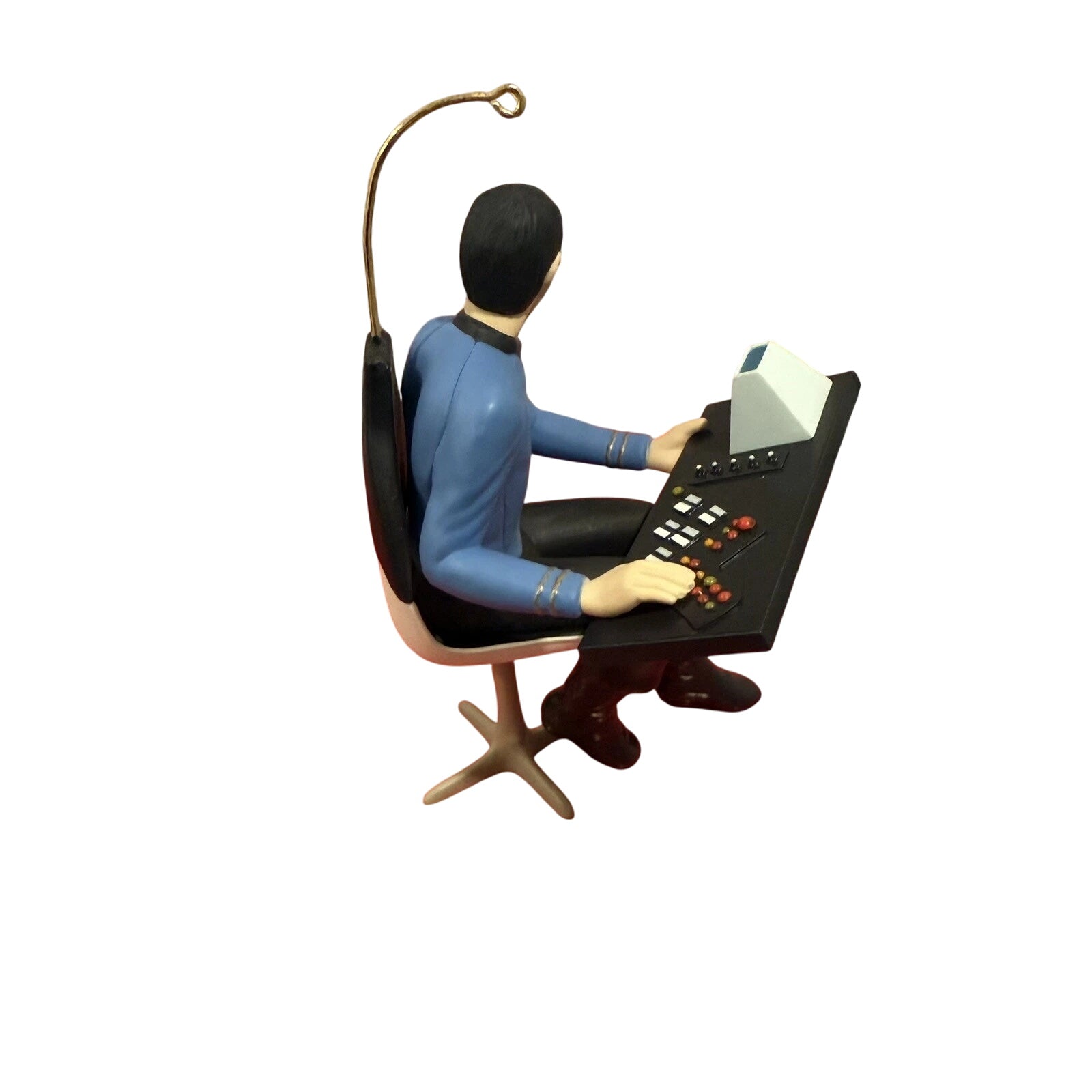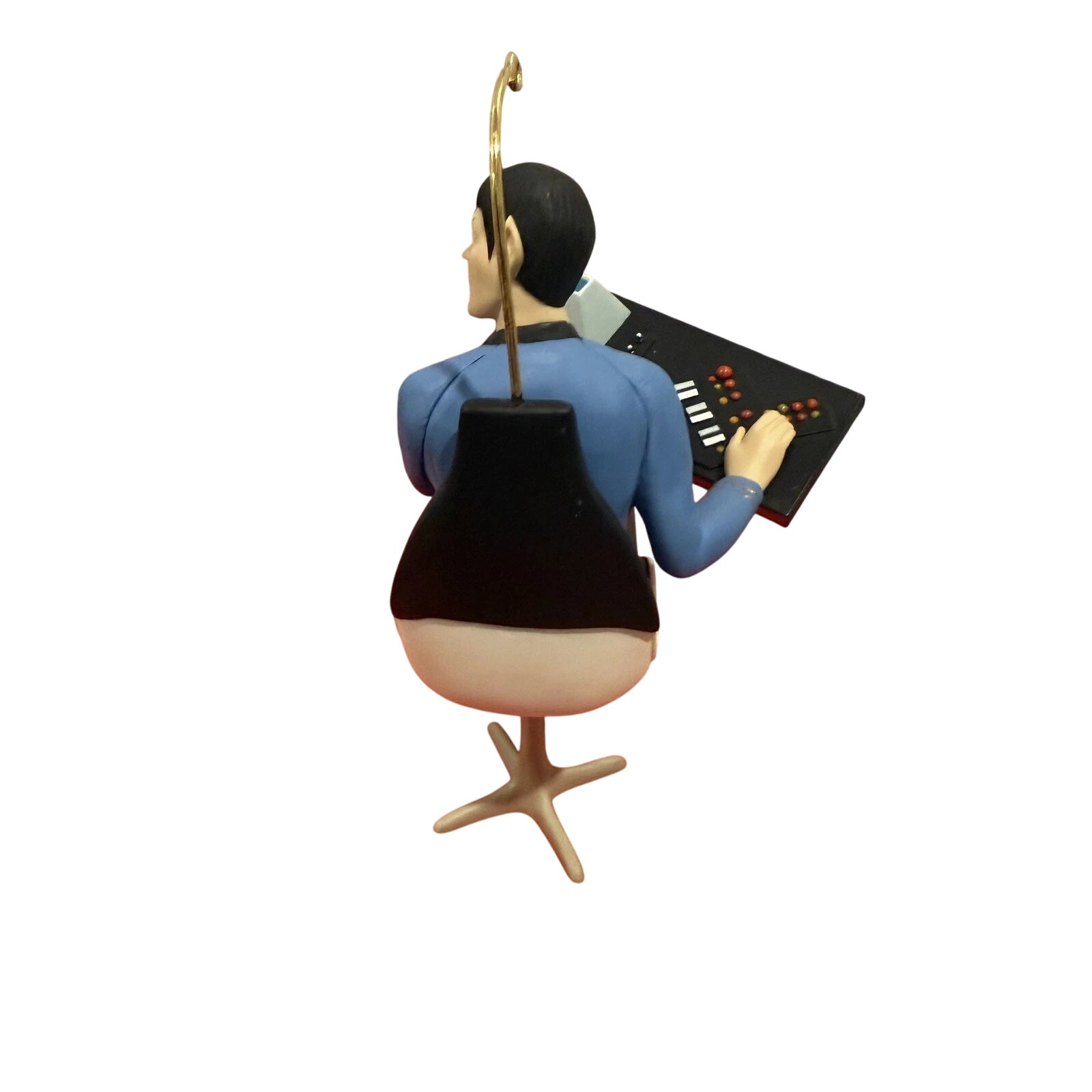 Bring Vulcan logic and sci-fi prestige to your holiday tree with this 1996 Mr. Spock ornament from Hallmark’s Star Trek Keepsake series. The ornament features Mr. Spock in his classic Starfleet uniform, manning the science station aboard the U.S.S. Enterprise, captured in painted resin with excellent likeness by artist Anita Marra Rogers. The statue-like posture shows his composed demeanor as the science officer and first officer.