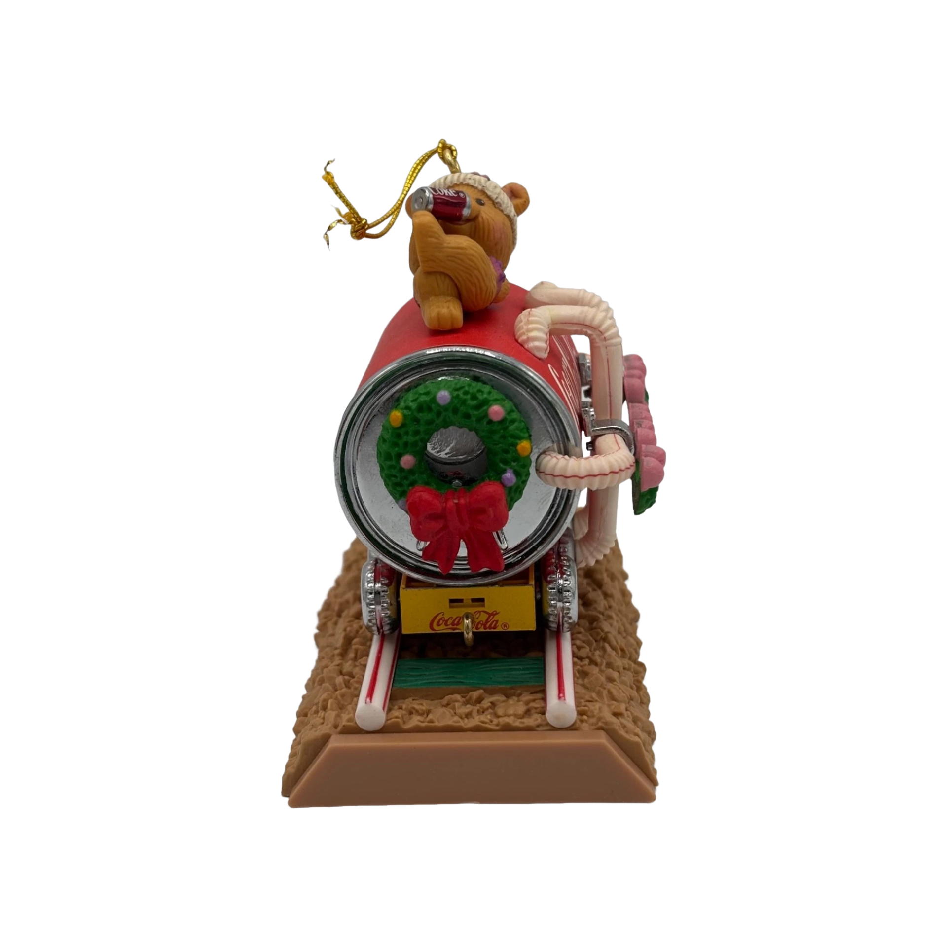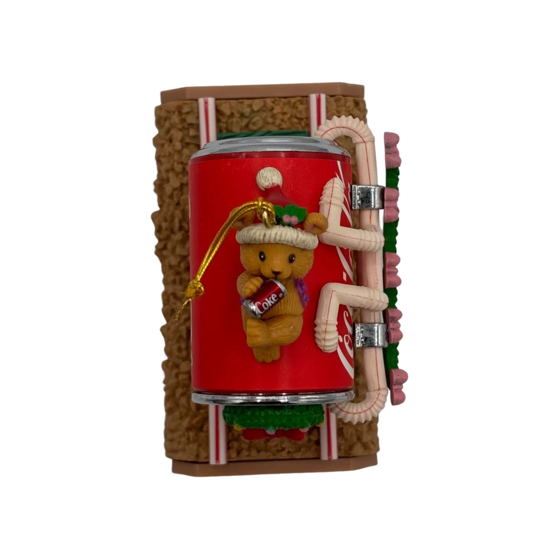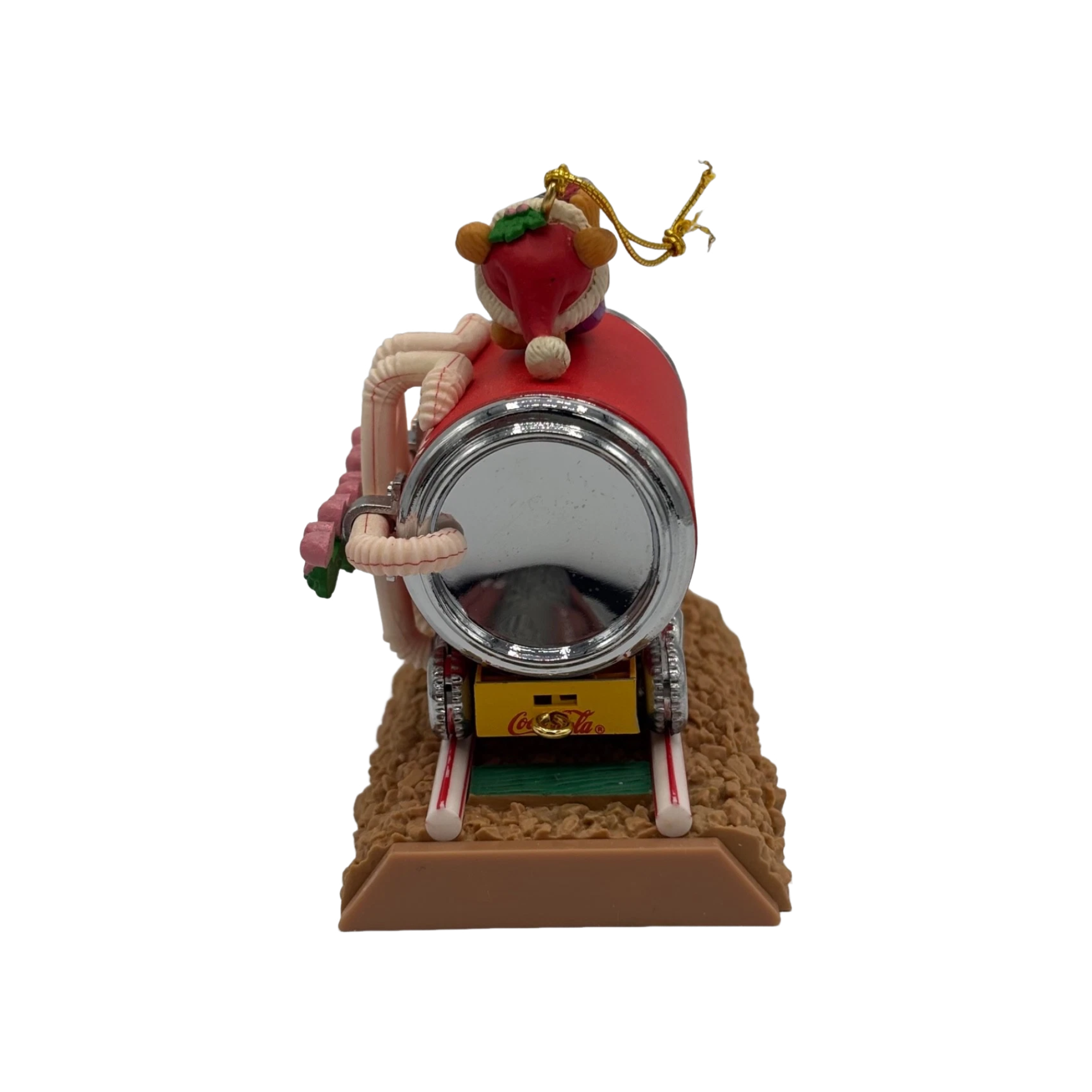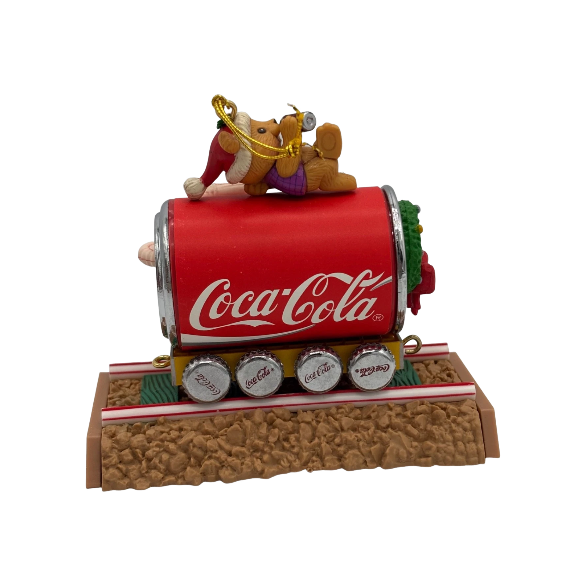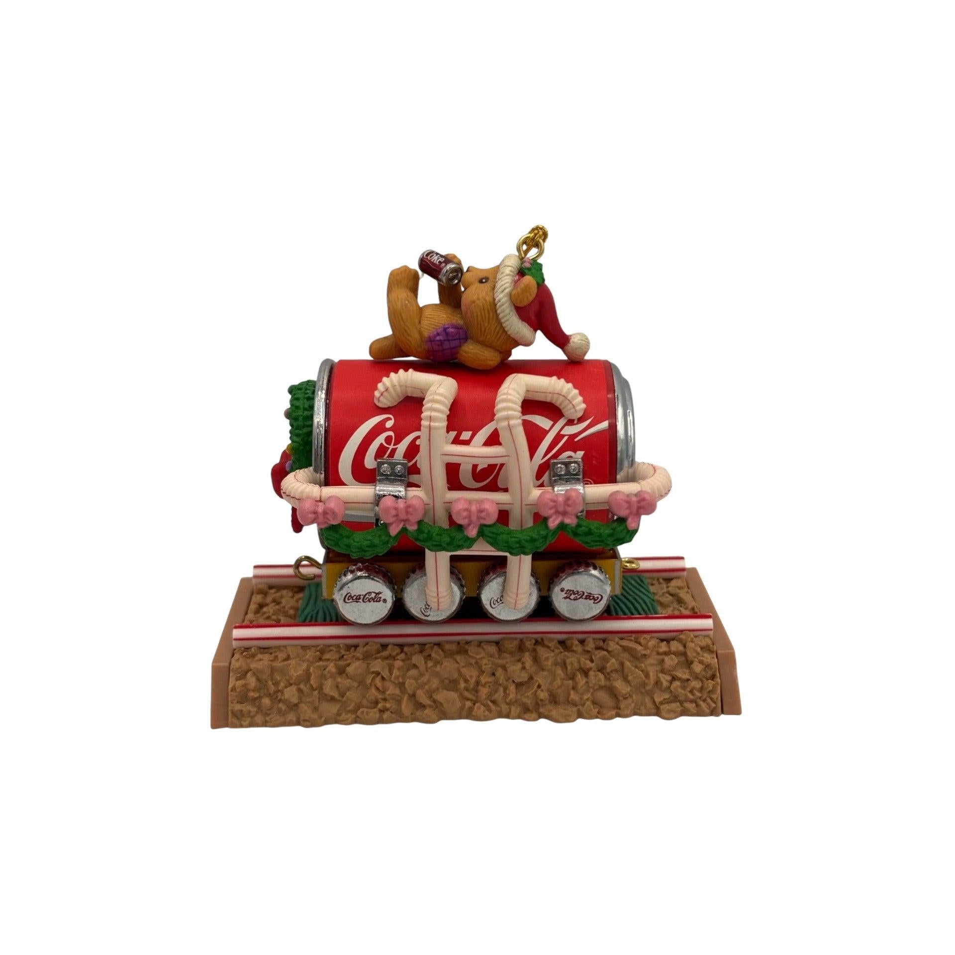 All aboard the holiday express with the 1996 Enesco “On Track with Coke” ornament! This festive collectible features Santa Claus riding a vintage red Coca-Cola train car loaded with gifts and the iconic Coke bottles. Hand-painted in rich holiday tones with classic Coca-Cola branding, it perfectly captures the nostalgic charm of Santa and Coke’s timeless Christmas partnership. A must-have for Coca-Cola memorabilia fans and Enesco collectors, this ornament brings color, craftsmanship, and classic cheer to any Christmas display.