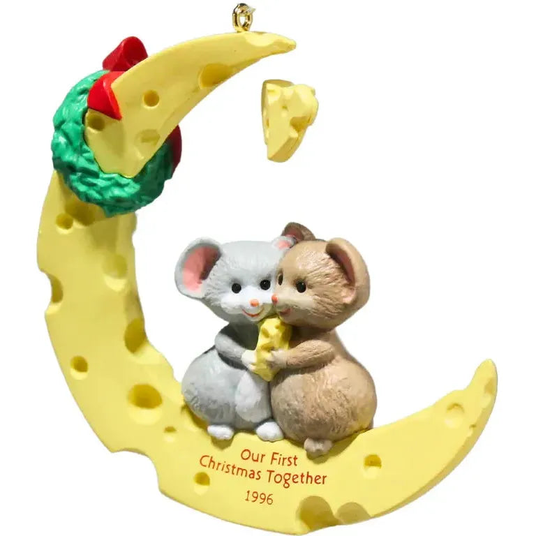 Celebrate a cherished holiday milestone with the 1996 Our First Christmas Together ornament. Crafted from translucent acrylic, this dated heart-shaped keepsake features a tender scene of two mice nestled under a crescent moon, beautifully capturing the magic of a couple’s inaugural Christmas together. Designed by LaDene Votruba, it arrives mint in box and is ready to hang—no batteries or extra accessories needed.