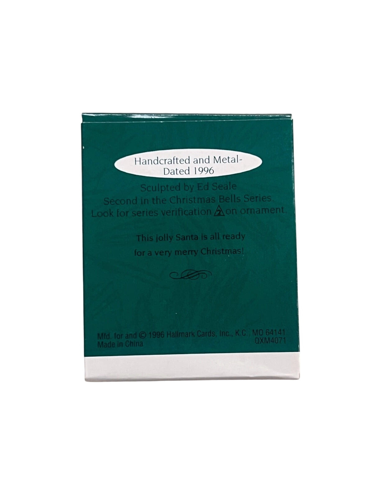 Ring in the nostalgia with the Santa miniature ornament, the second piece in Hallmark’s beloved Christmas Bells series. Released in 1996, this charming keepsake features a jolly Santa Claus perched atop a rustic metal bell, capturing the spirit of a classic Christmas. Crafted by artist Ed Seale, this petite beauty stands approximately 1" tall, arrives mint-in-box, and adds a whisper of festive tradition to any tree—no power required.