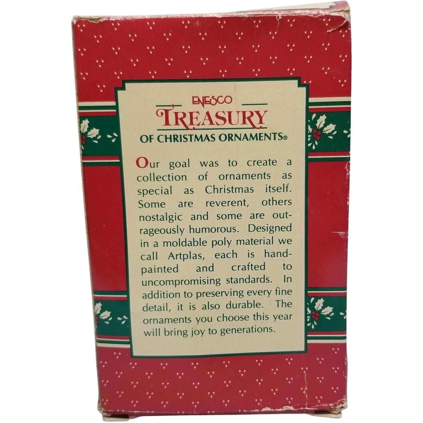 Materials: Mixed media / molded plastic with hand-painted finishes – typical of Enesco “Treasury of Christmas” ornaments of the era.