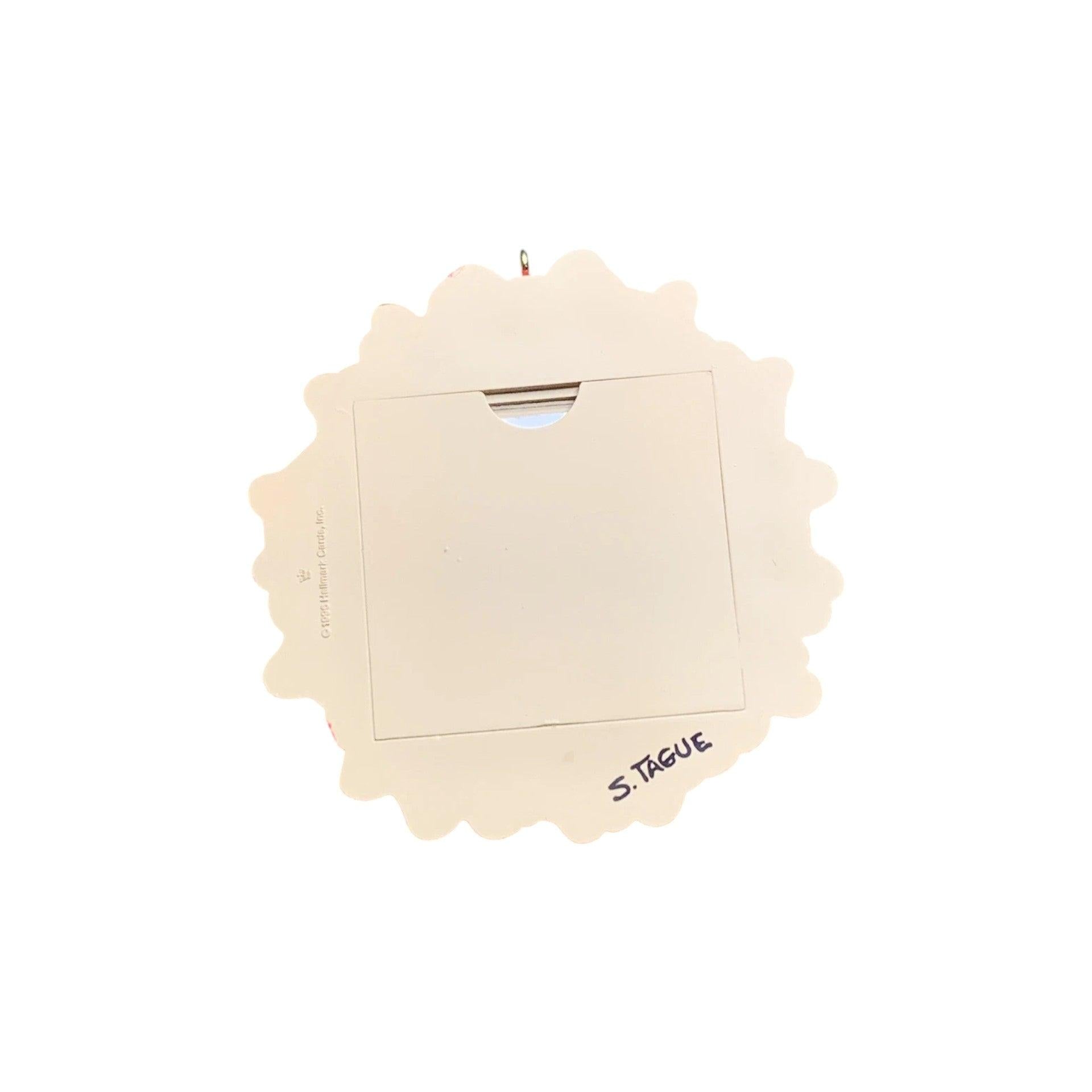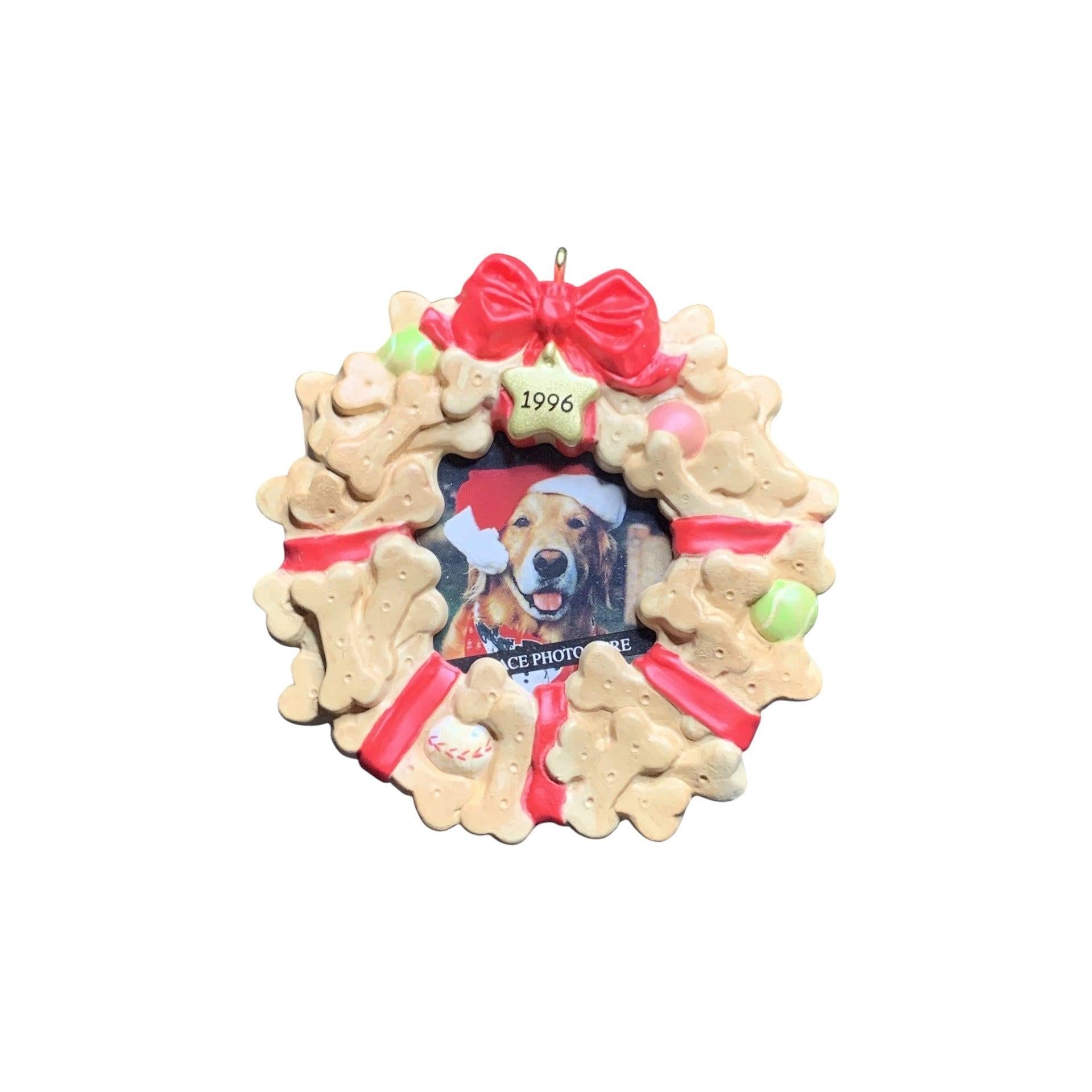 This charming ornament from the Hallmark Keepsake collection features a happy dog character nestled inside a star-shaped photo-holder frame, complete with the year “1996” displayed prominently. The design allows a small photo to be inserted in the center, making it a meaningful keepsake especially for dog-lovers or pet-memory themes. Rendered in a mixed-media format, the piece blends playful detail with sentimental value. As a dated 1996 model with the SKU QX5864, it holds appeal for both pet-themed gift giving and vintage ornament collectors.